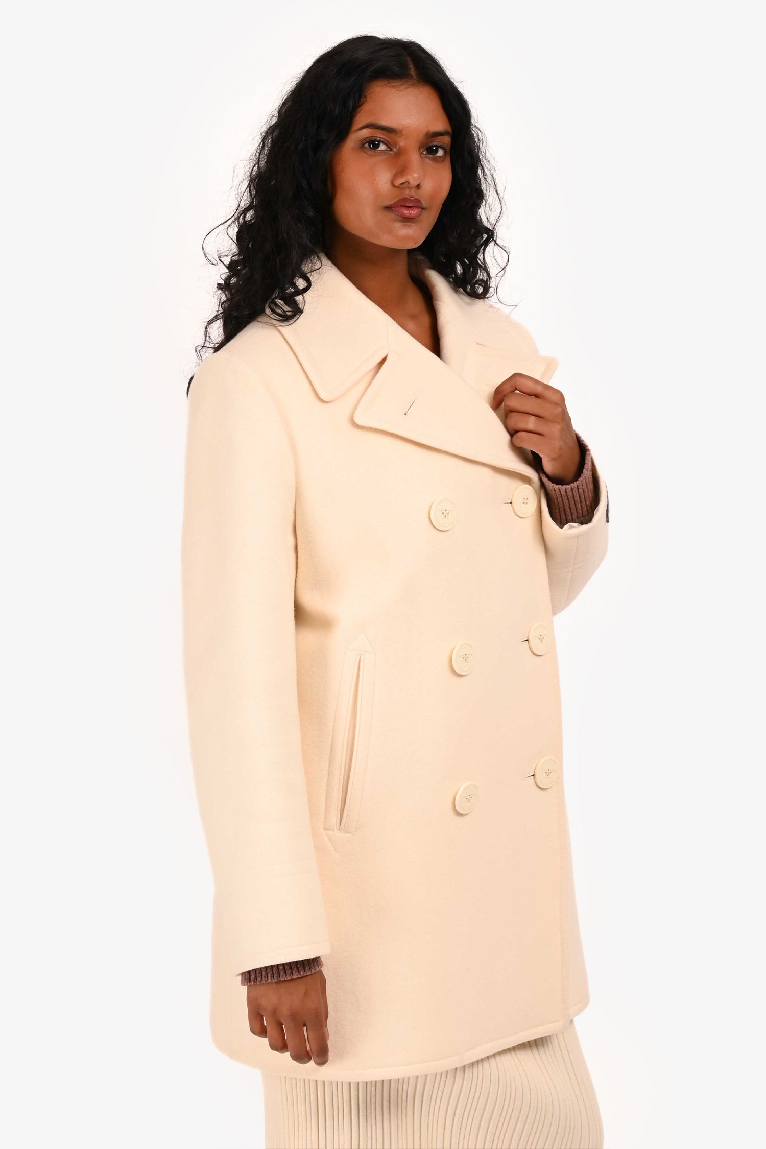 Prada 2023 Cream Wool Double Breasted Coat Size 38