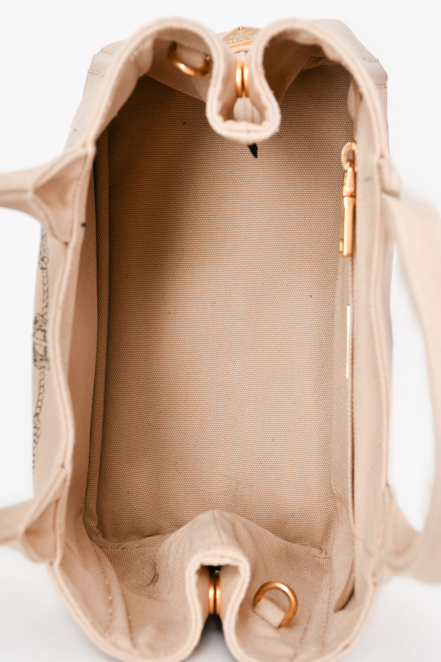 Prada Beige/Black Canvas Small Canapa Top Handle Bag with Strap