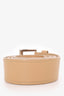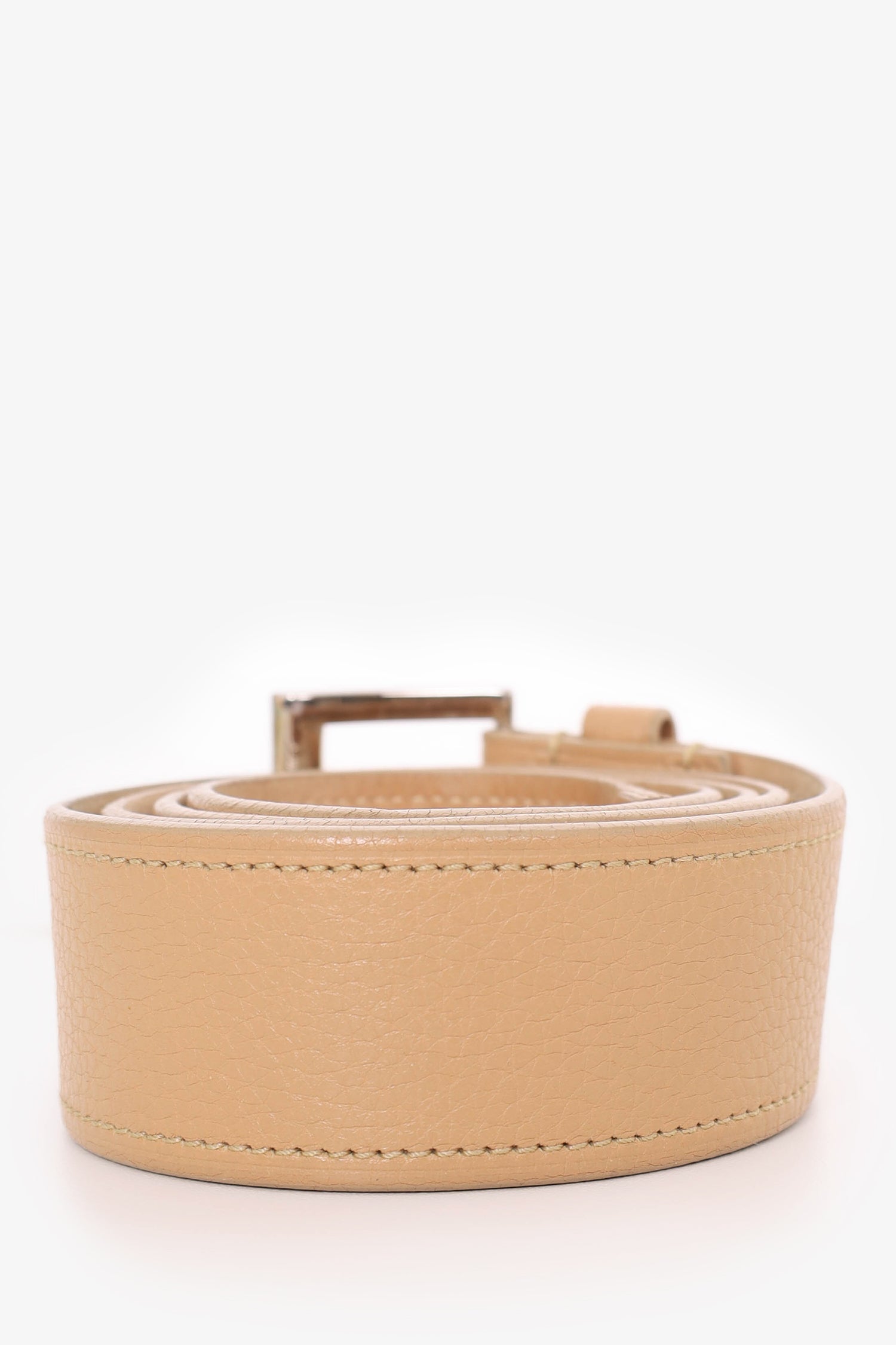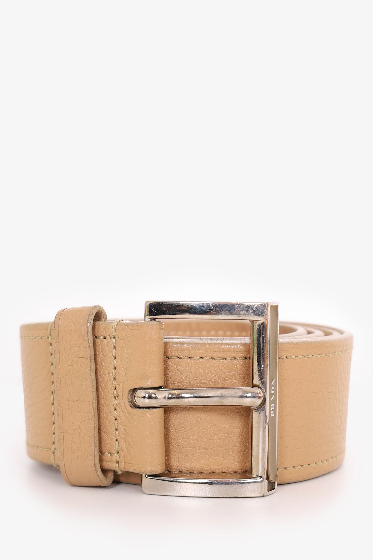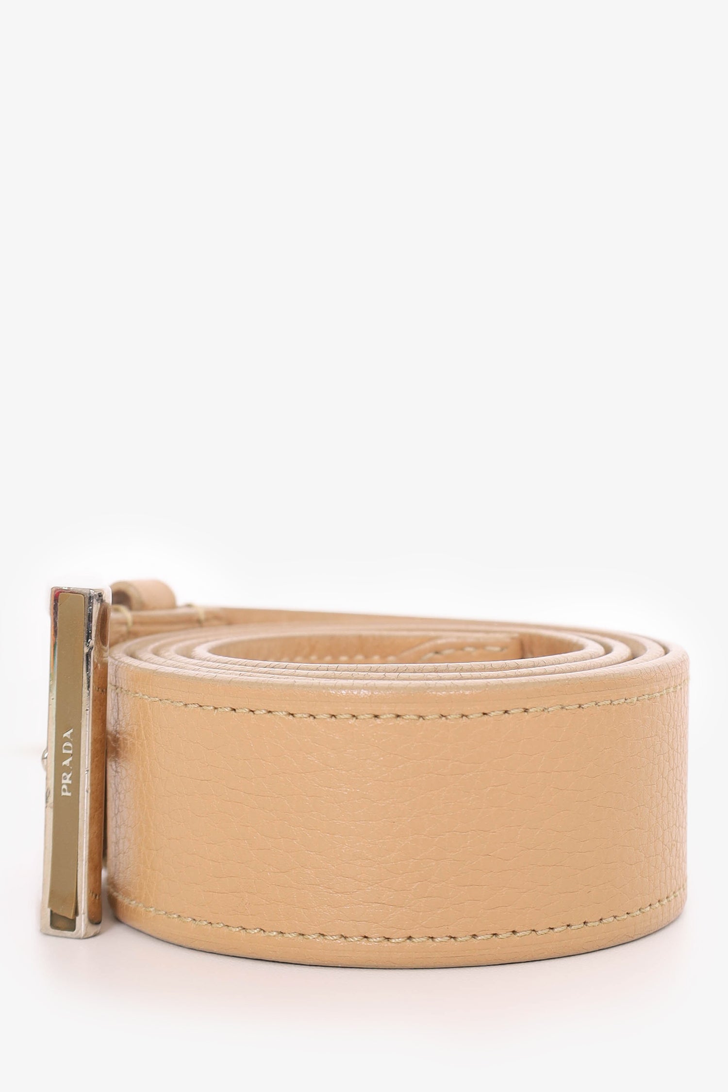 Refresh availabilityPrada Beige Leather Belt. Adjustable pull-through buckle closure. Tonal stitching. Silver-tone hardware.