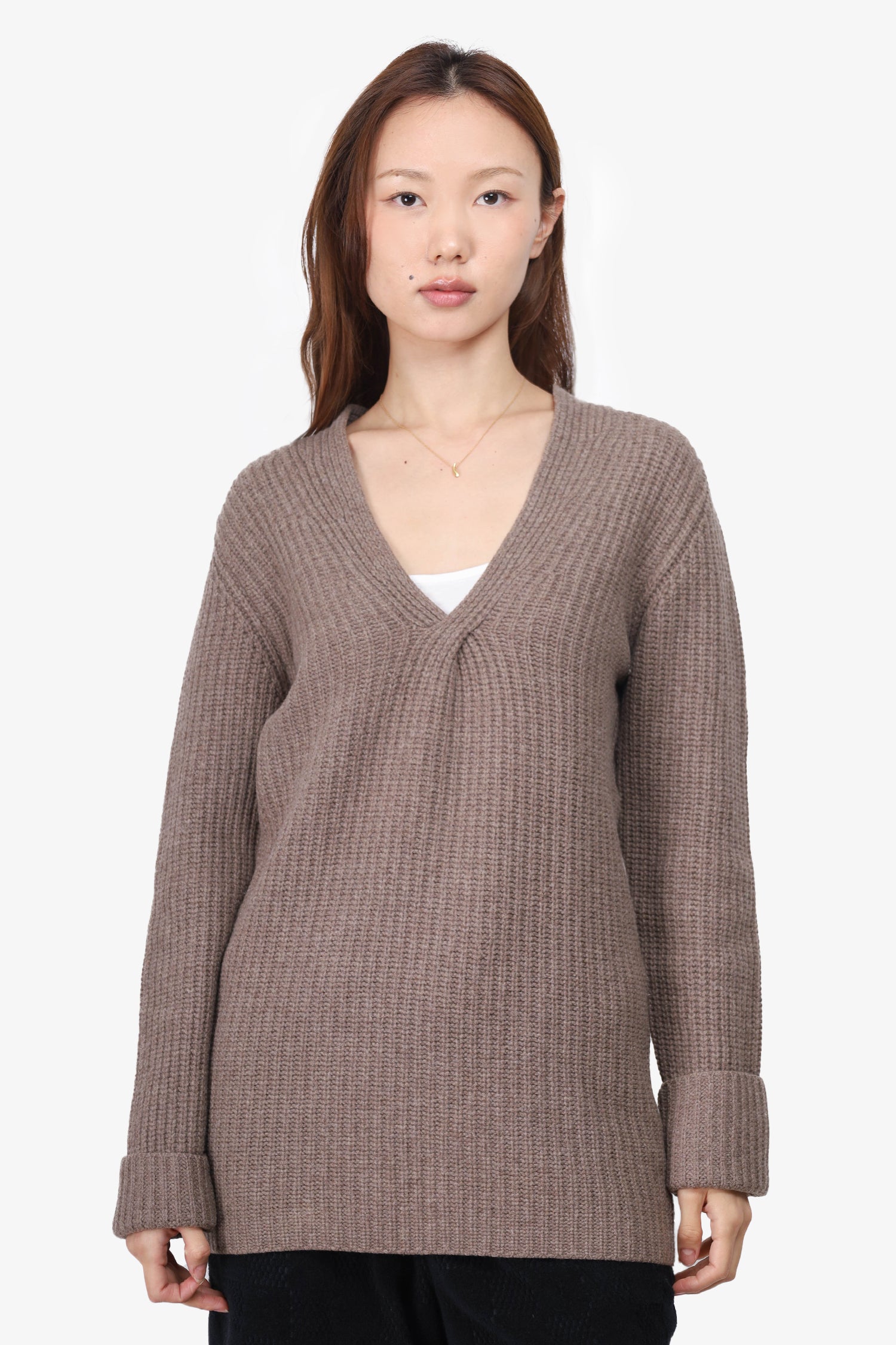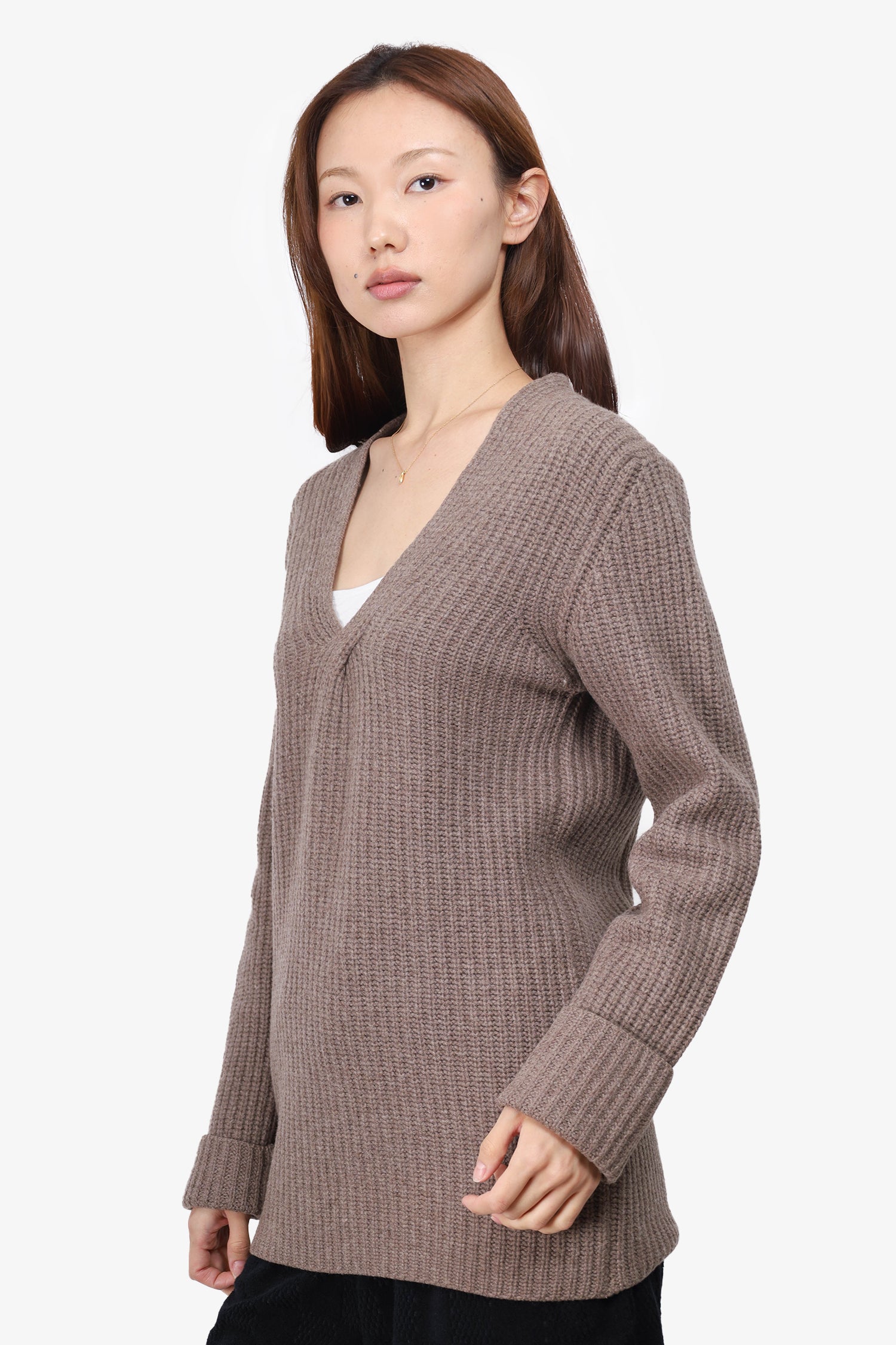 Refresh availabilityPrada Biege Wool V-Neck Sweater. V-neckline. Long-sleeve. Pull-on. Tonal stitching.