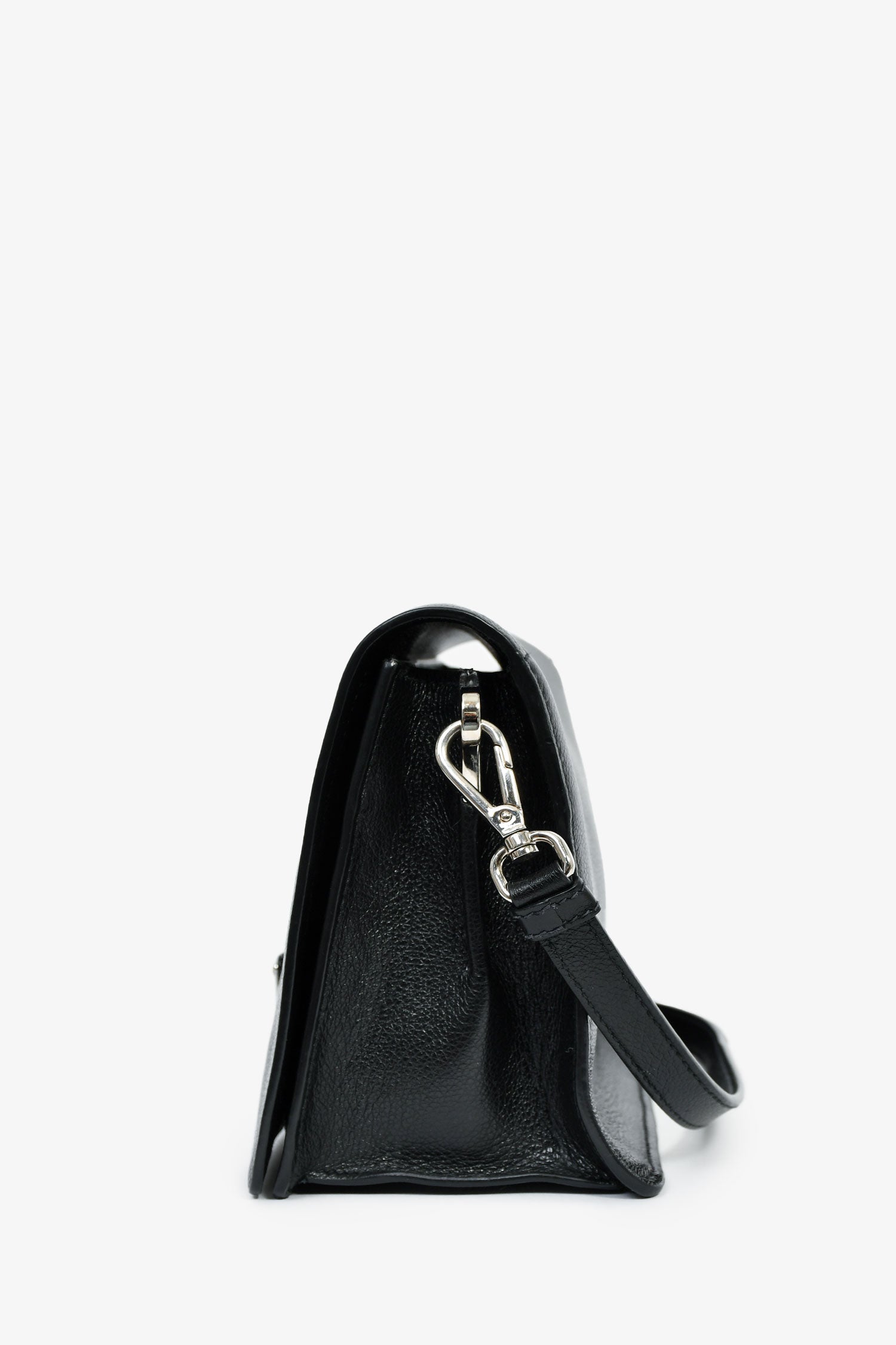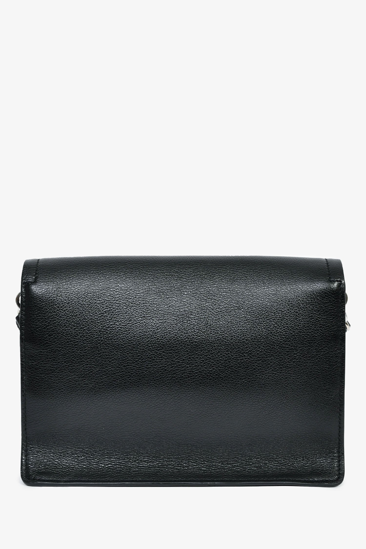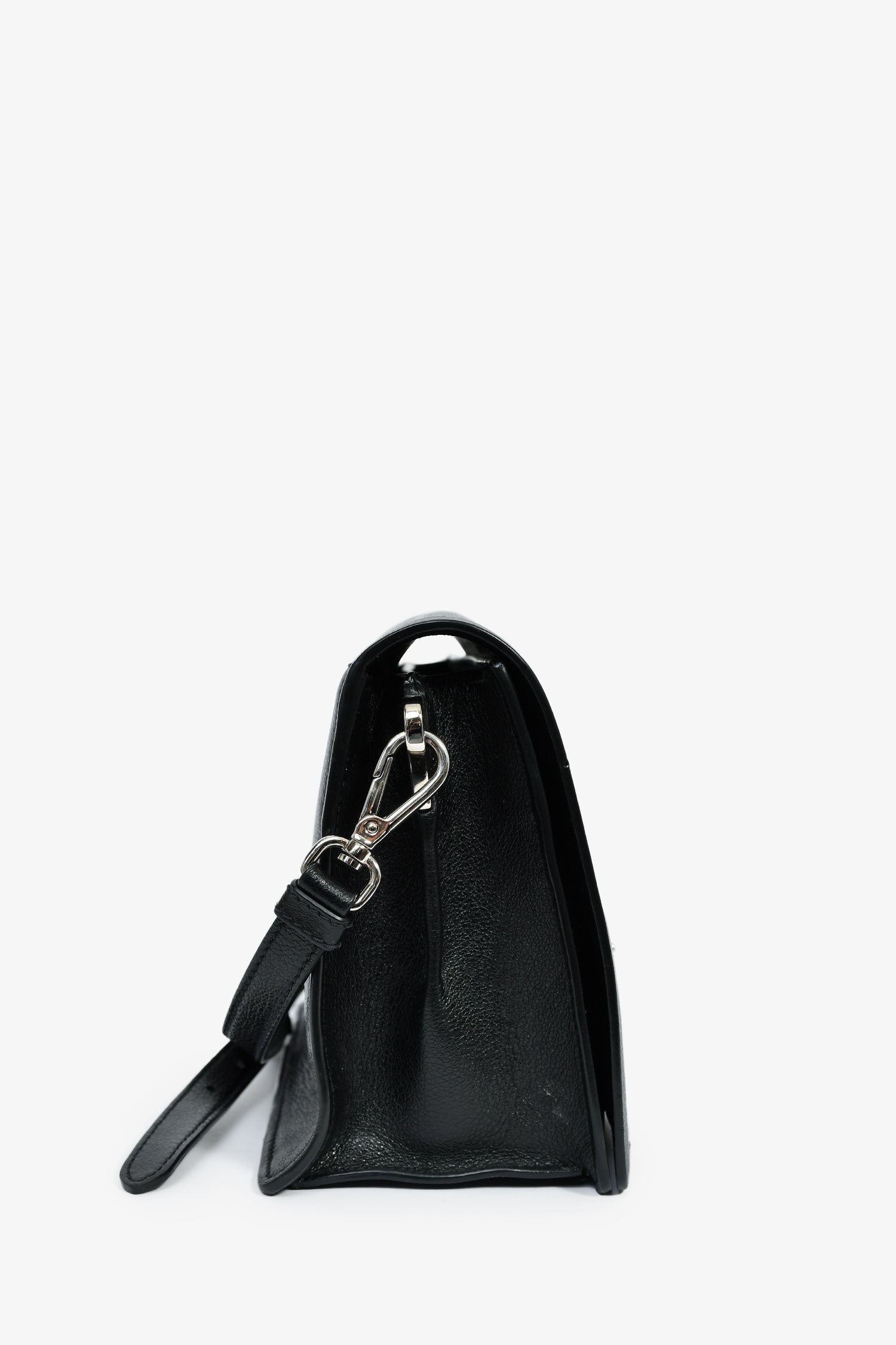 Refresh availabilityPrada Black Calf Leather 'Glace' Messenger Bag. Fold-over flap with magnetic closure. Detachable crossbody strap. Lined interior with 2 compartments and 1 wall pocket. Silver-tone hardware. Tonal stitching.