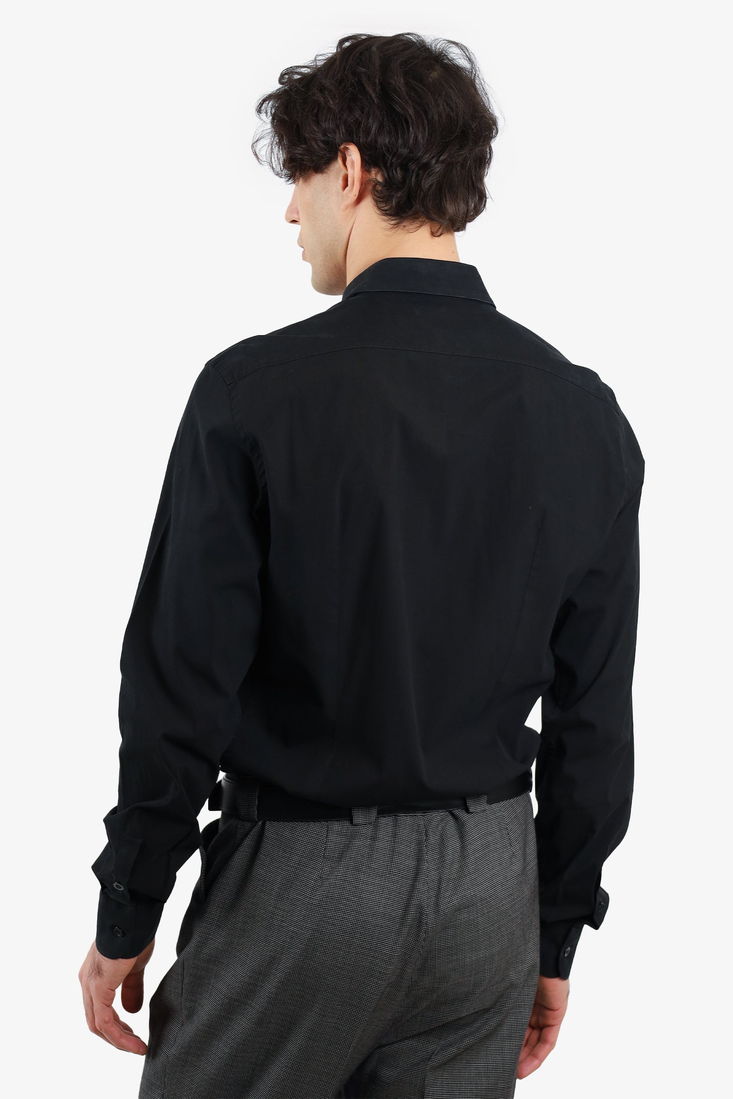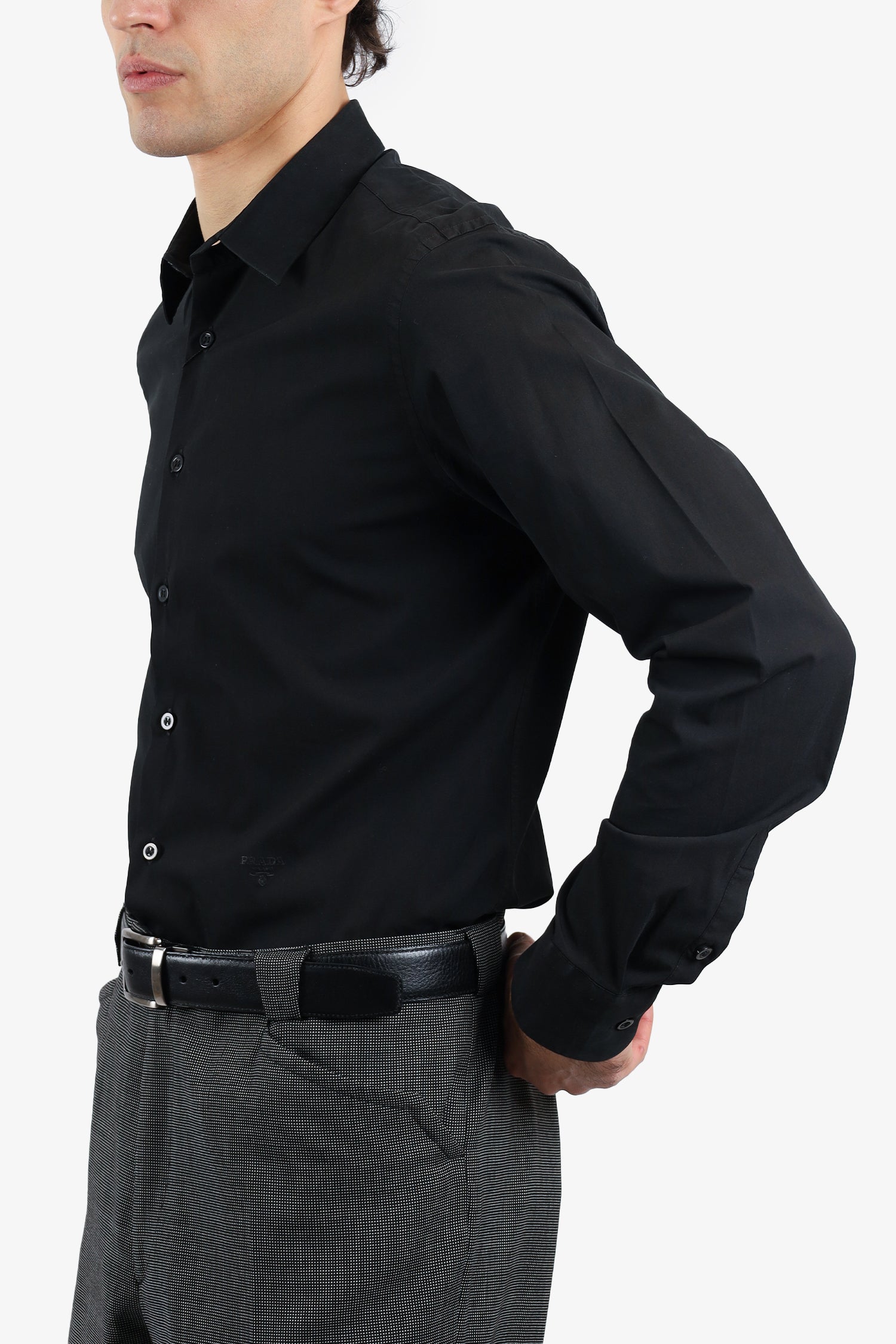 Refresh availabilityPrada Black Cotton Long Sleeve Shirt. Collared neckline. Front button closure. Tonal stitching.