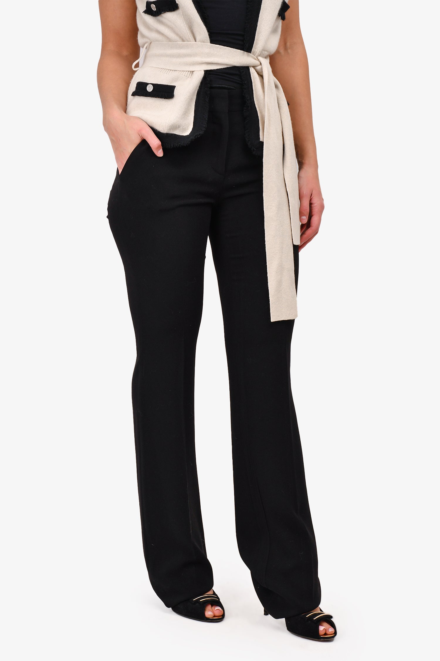Refresh availabilityPrada Black Flare Trousers. Front zip and hook closure. Front pockets.