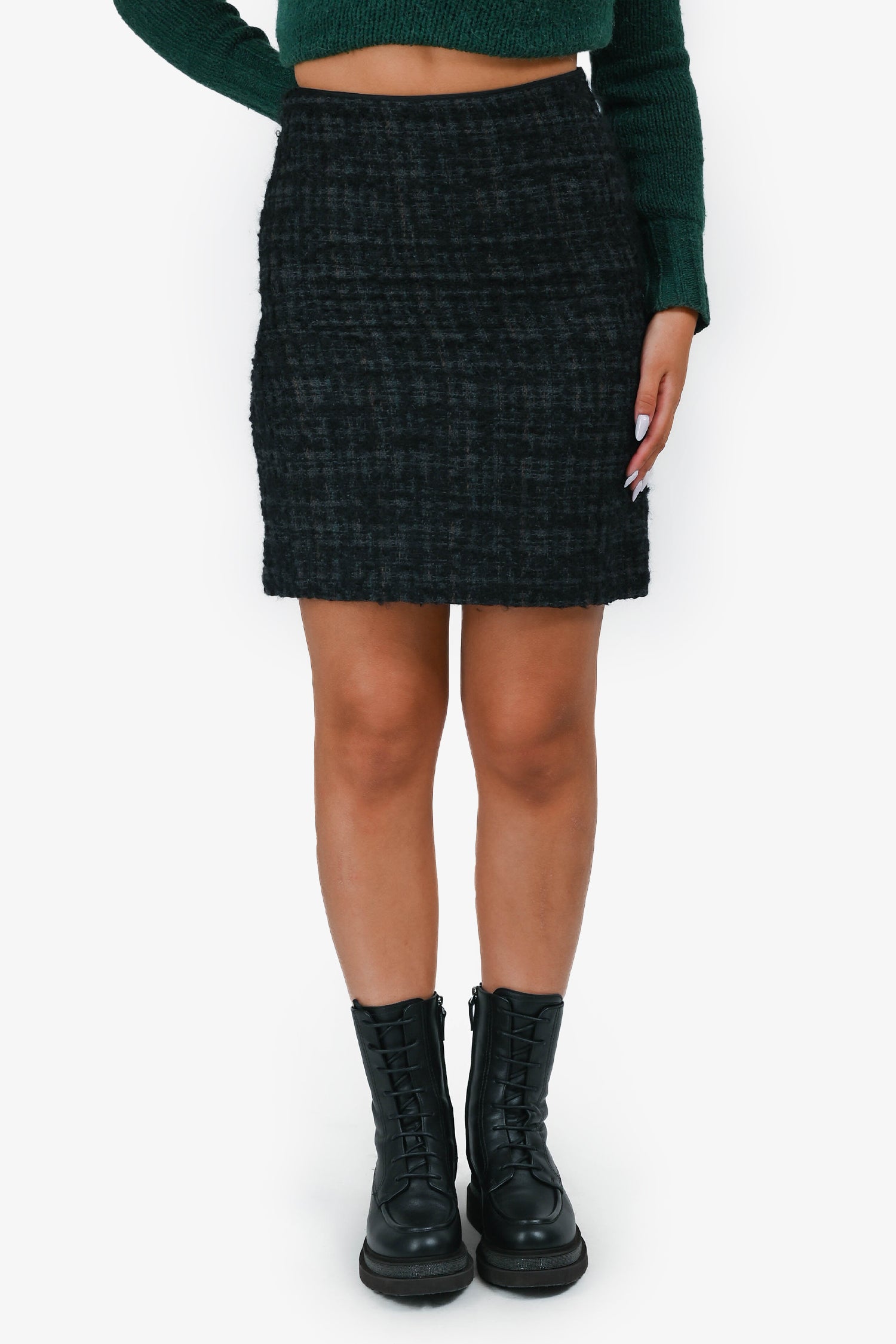 Prada Black/Green Wool/Mohair Tweed Skirt Size 38
