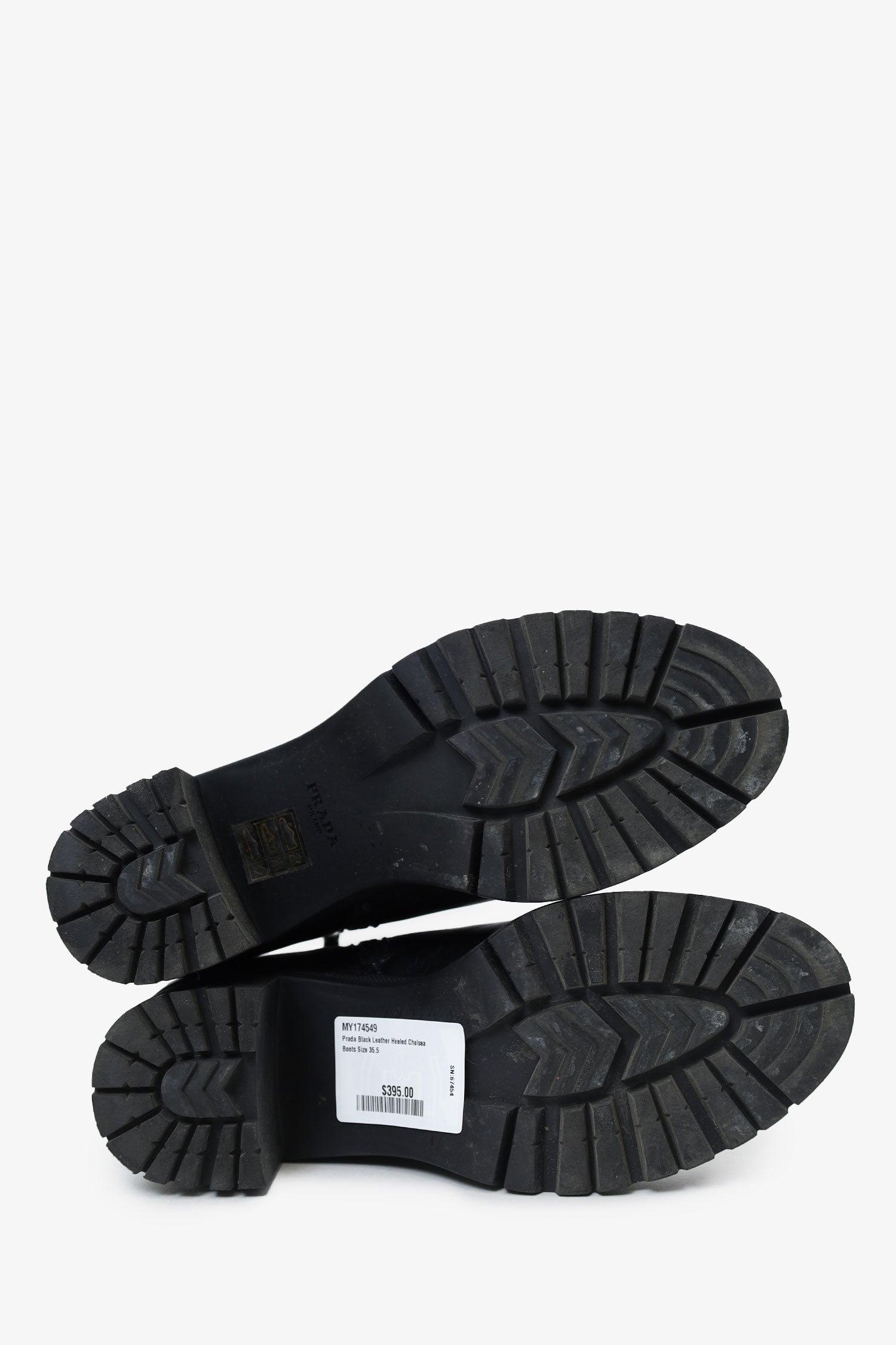 Prada Black Leather Heeled Chelsea Boots Size 35.5