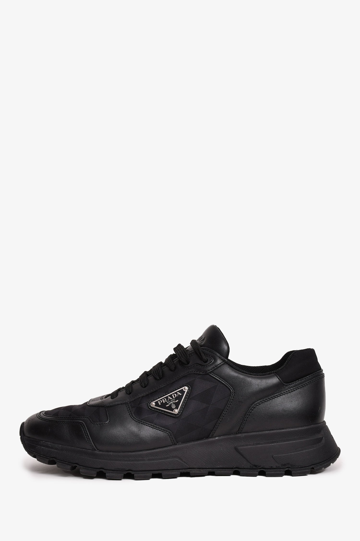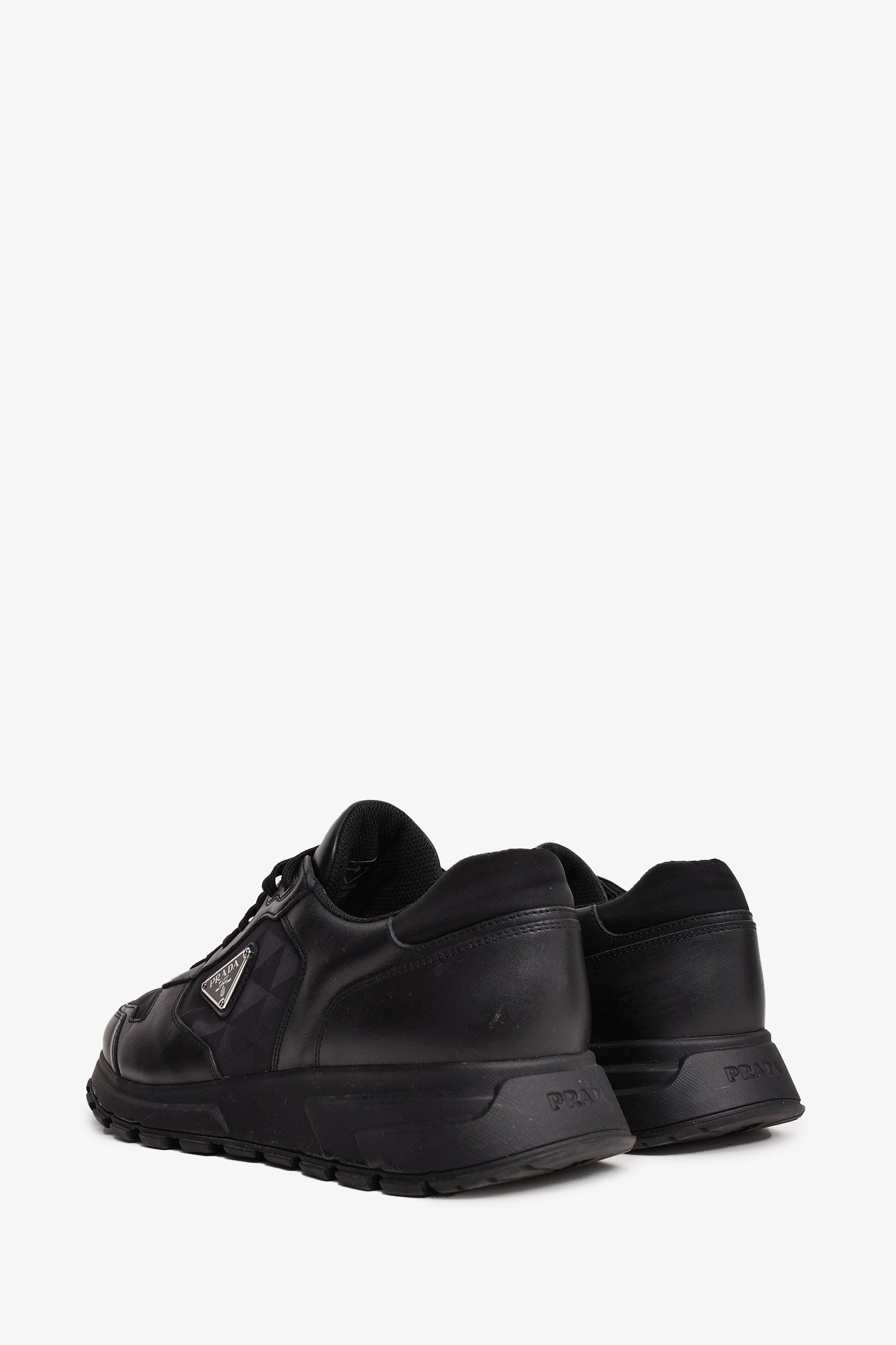 Prada Black Leather/Nylon Triangle Logo 'Prax' Sneakers Size 10 Mens