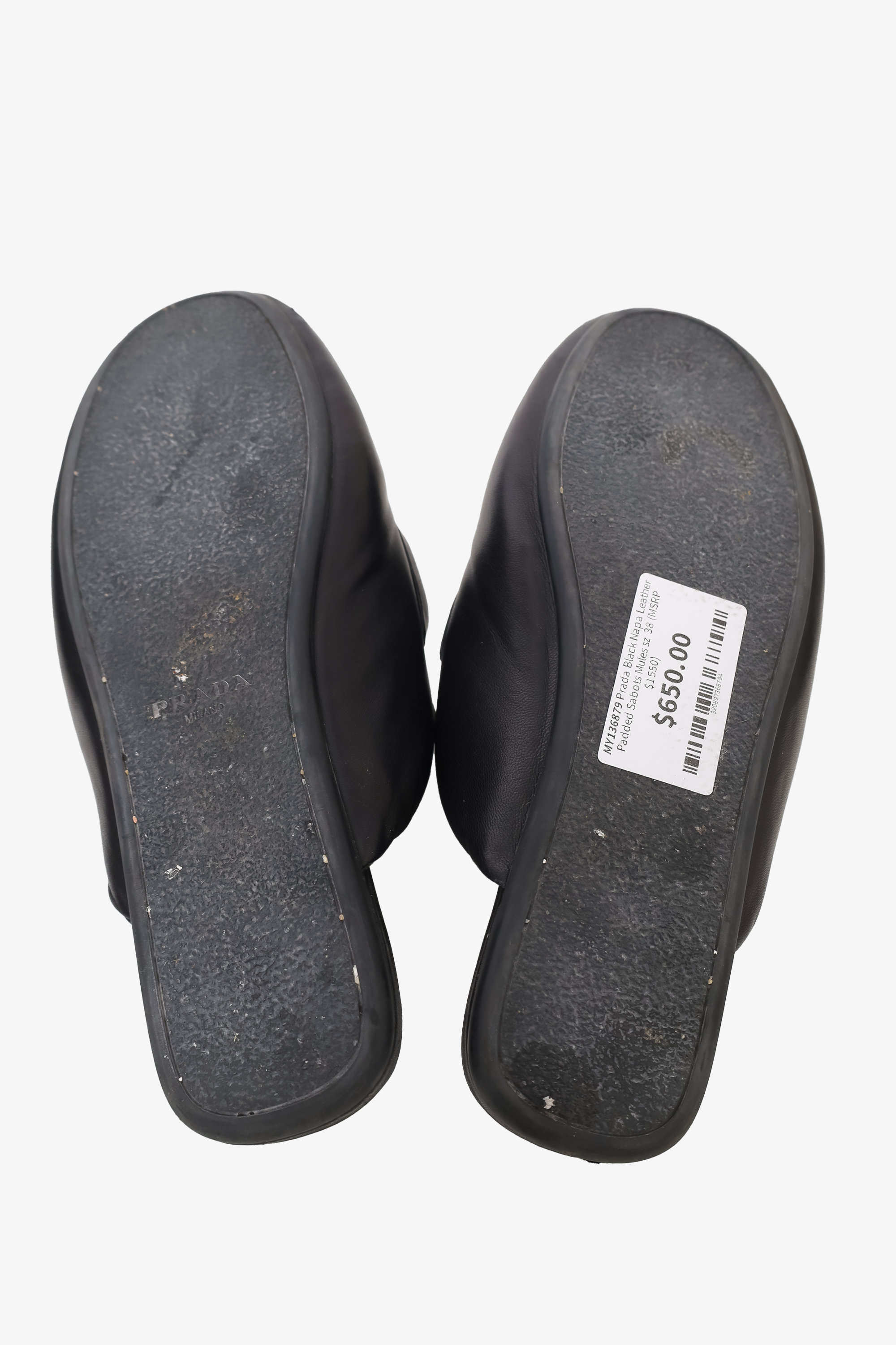 Prada Black Napa Leather Padded Sabots Mules Size 38