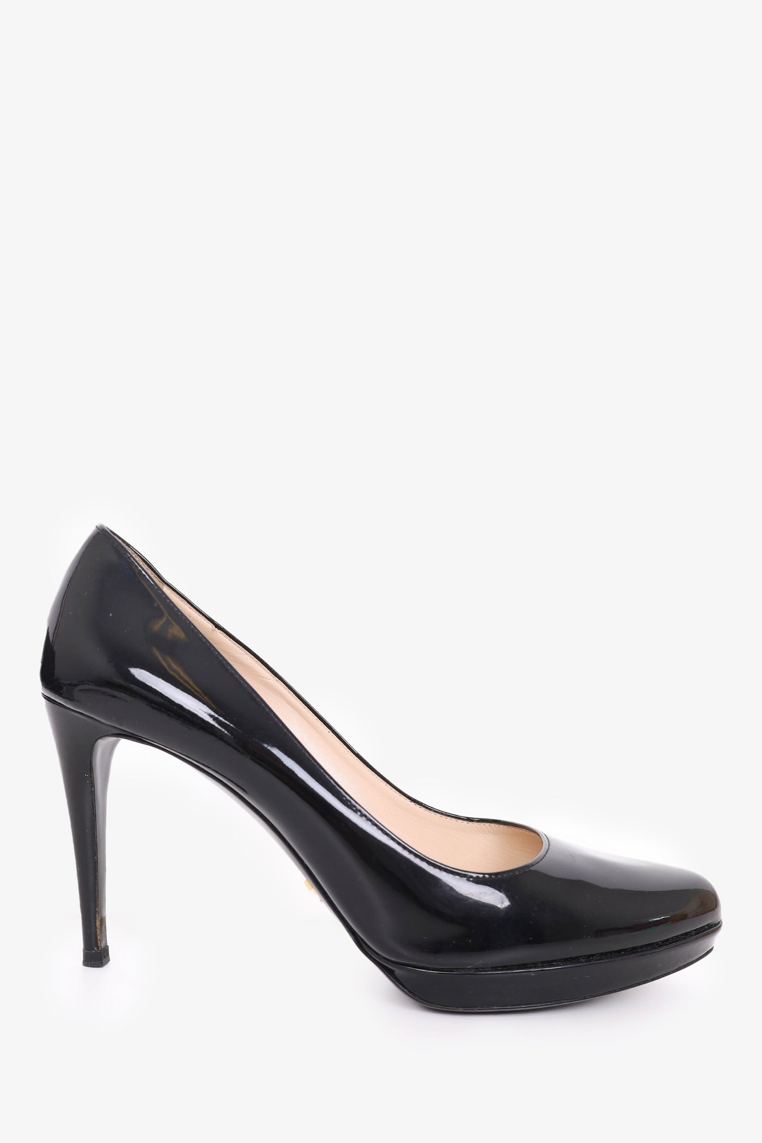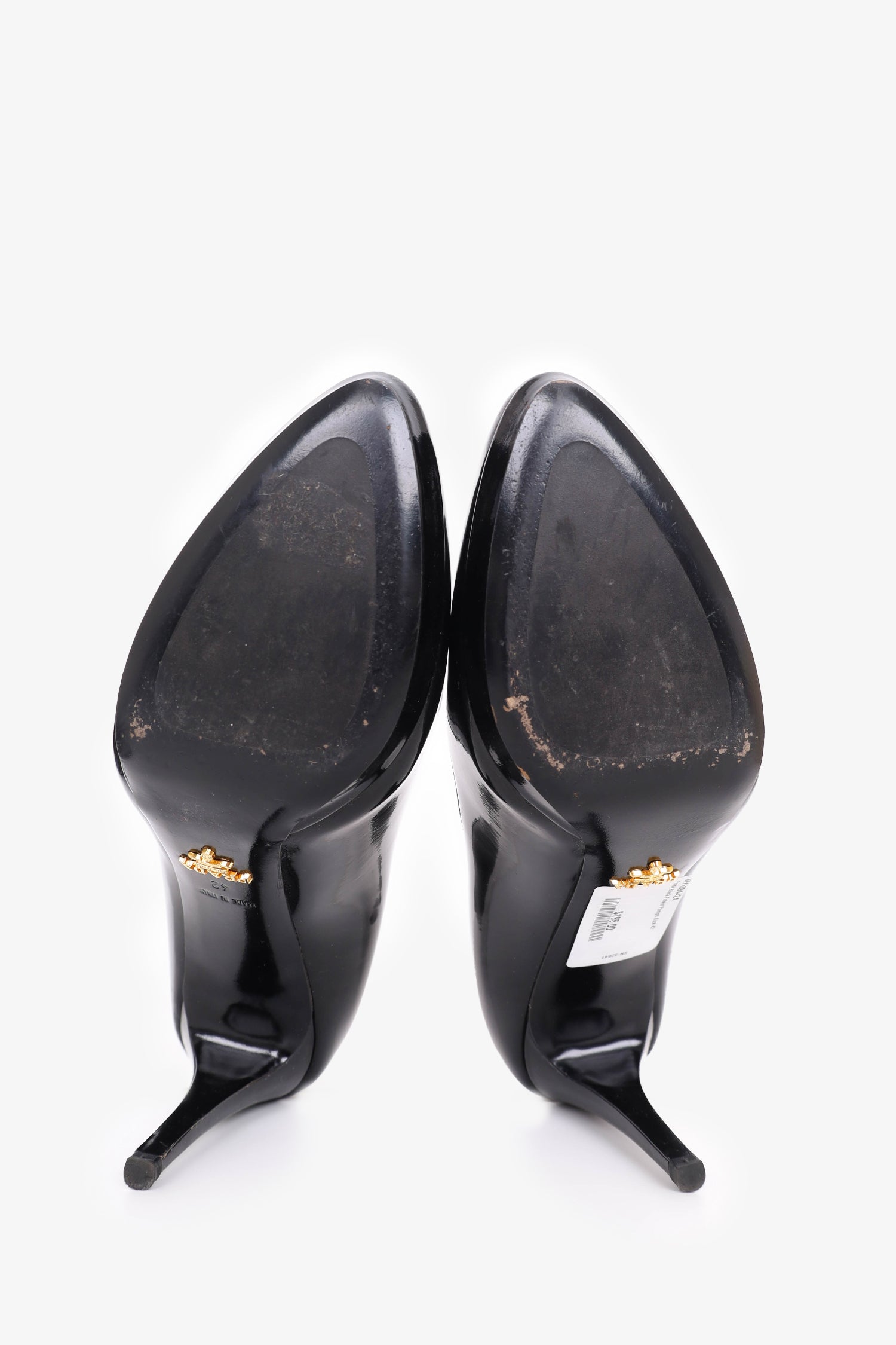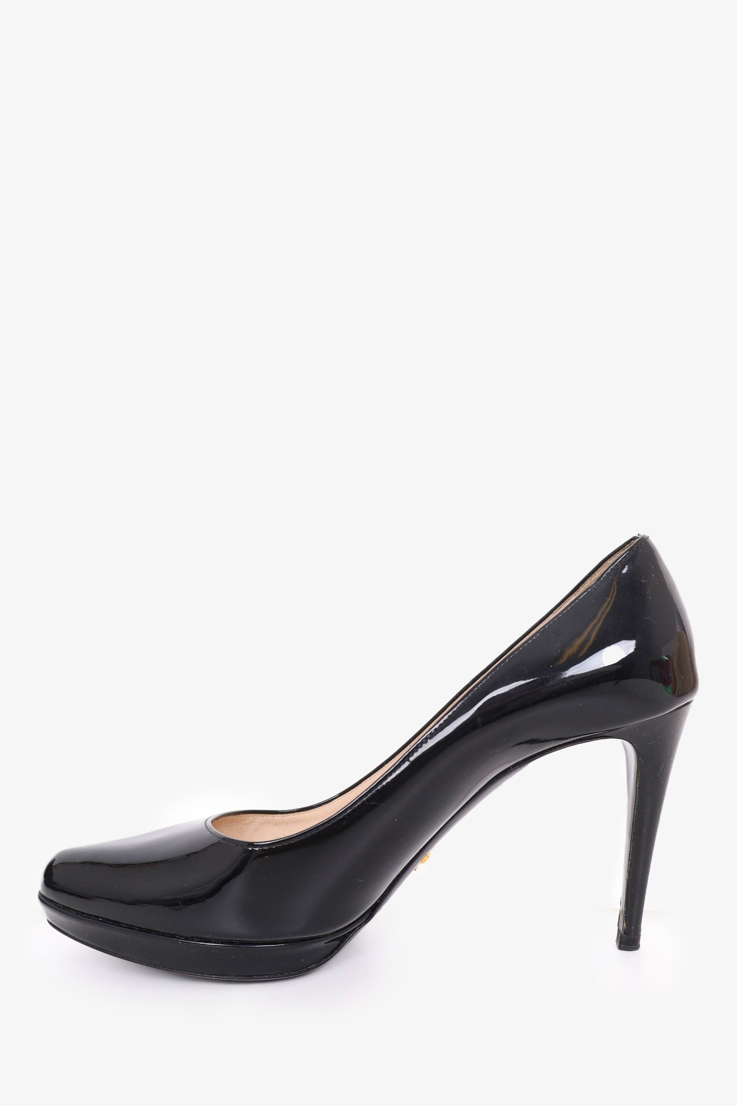 Refresh availabilityPrada Black Patent Pumps. Almond toe. Slip-on. Tonal stitching.