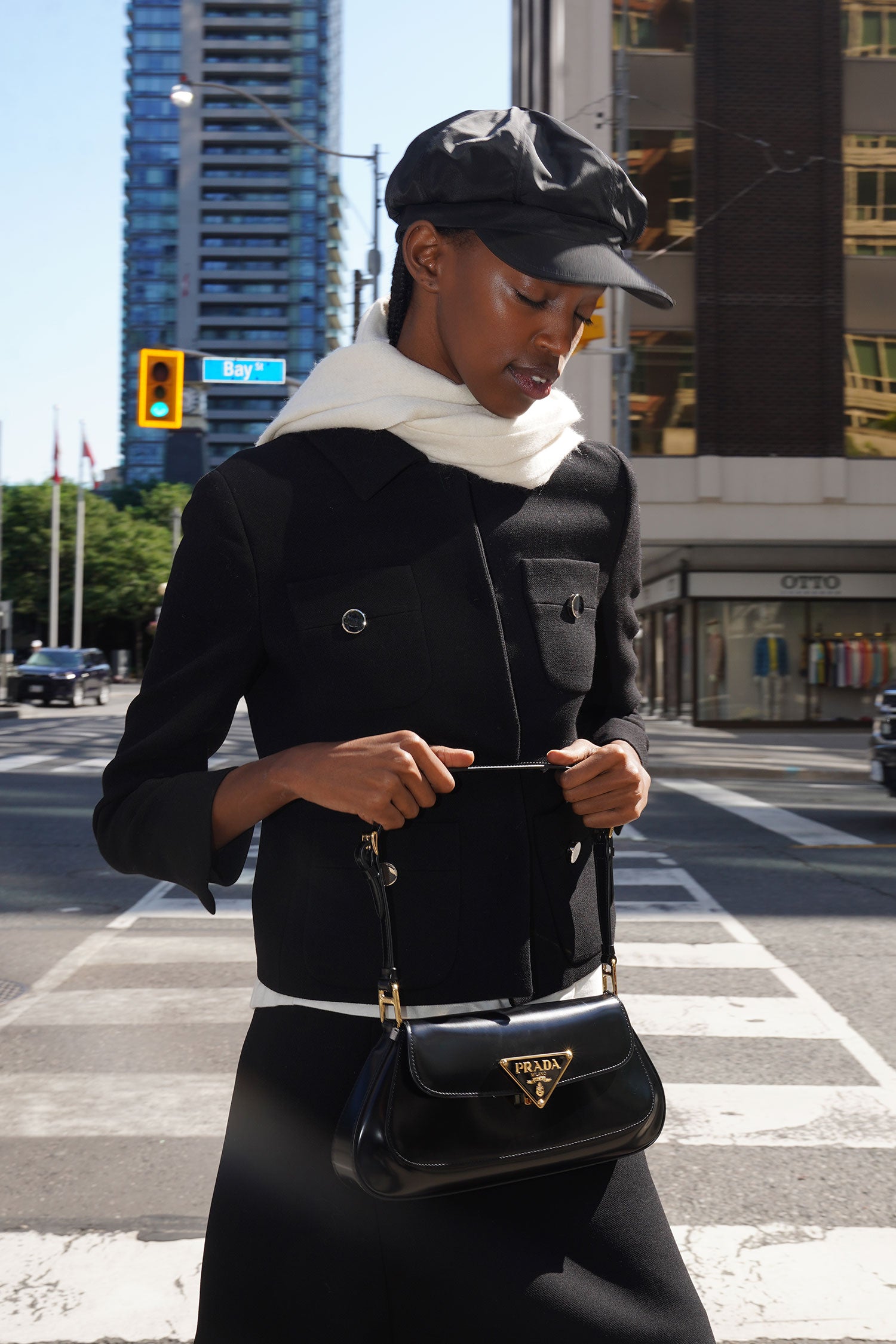 Refresh availabilityPrada Black Re-Nylon Newsboy Cap. Firm brim. Logo on back. Tonal stitching. Lined.