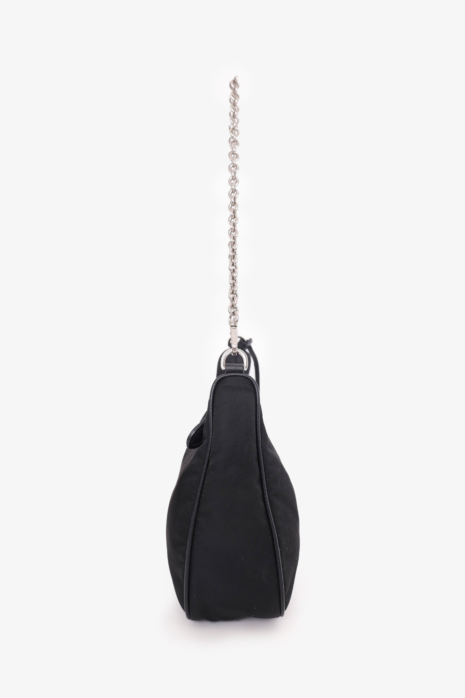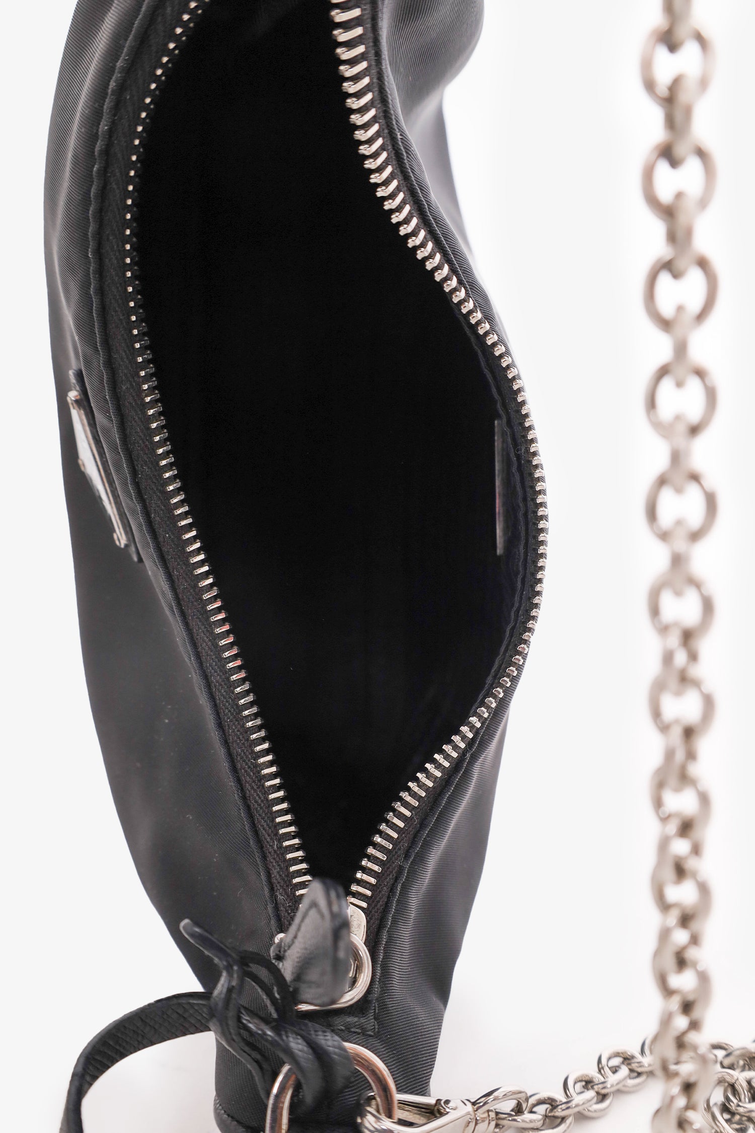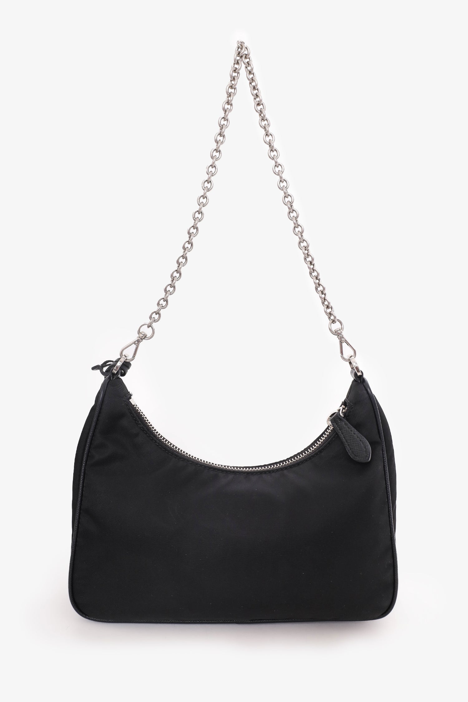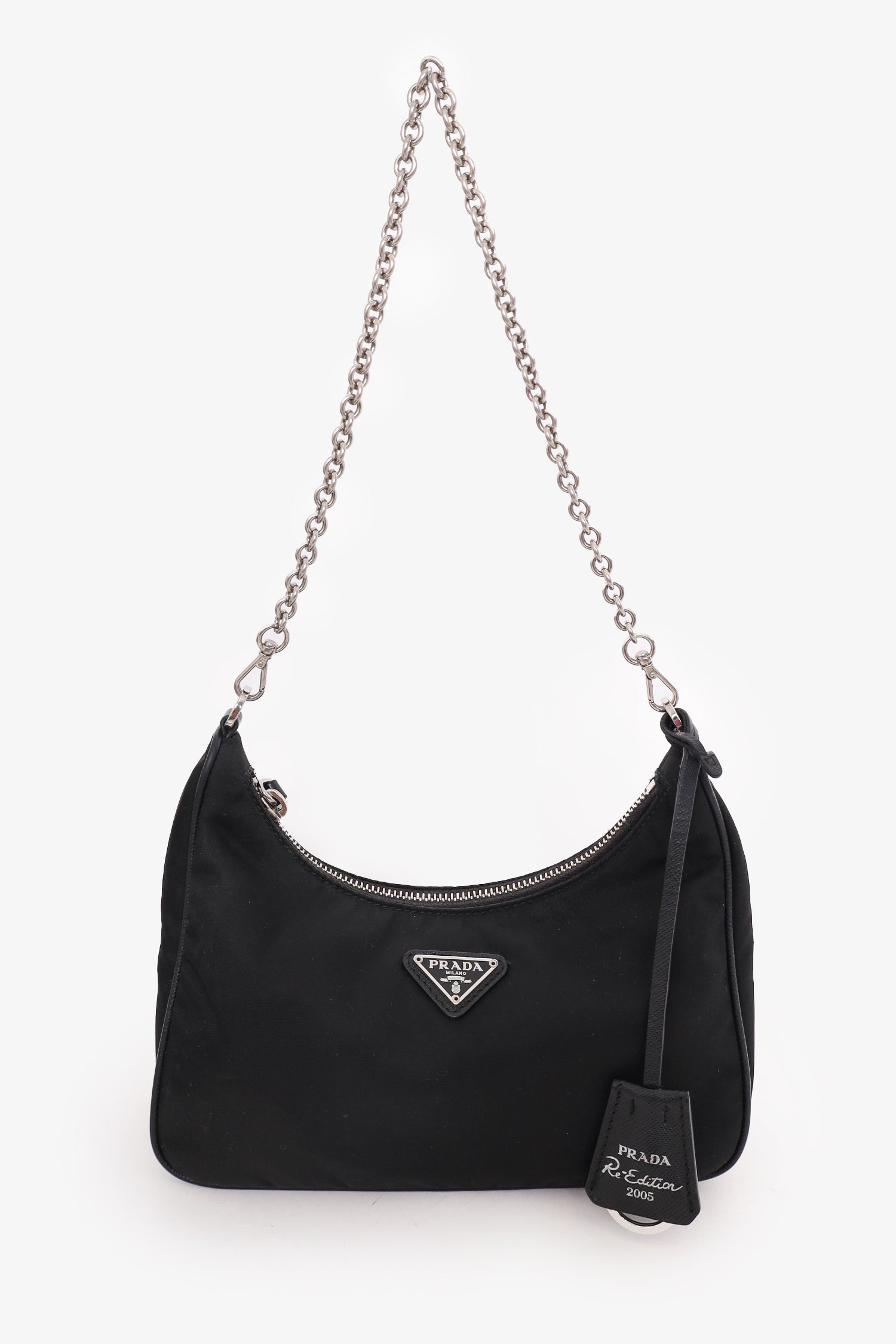Refresh availabilityPrada Black Re-Nylon Re-Edition 2005 Crossbody Bag. Top zipper closure. Silver-tone hardware. Removable shoulder and crossbody strap. Coin pouch. Tonal stitching.