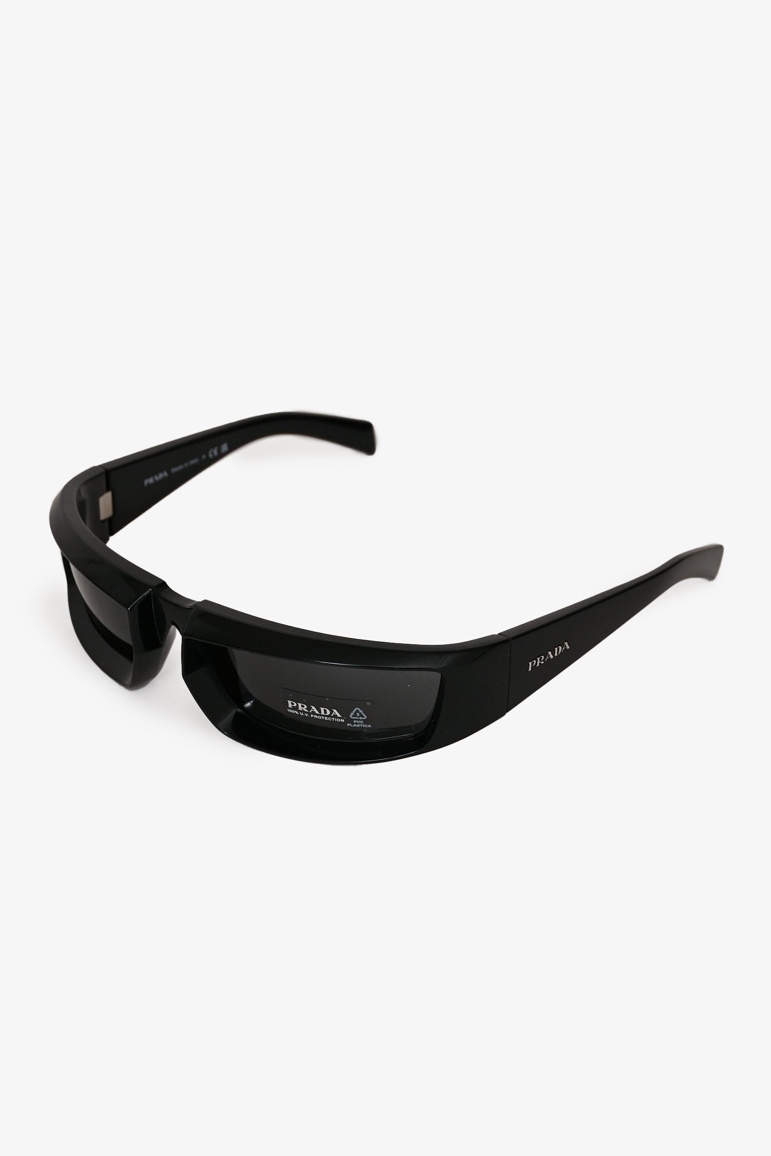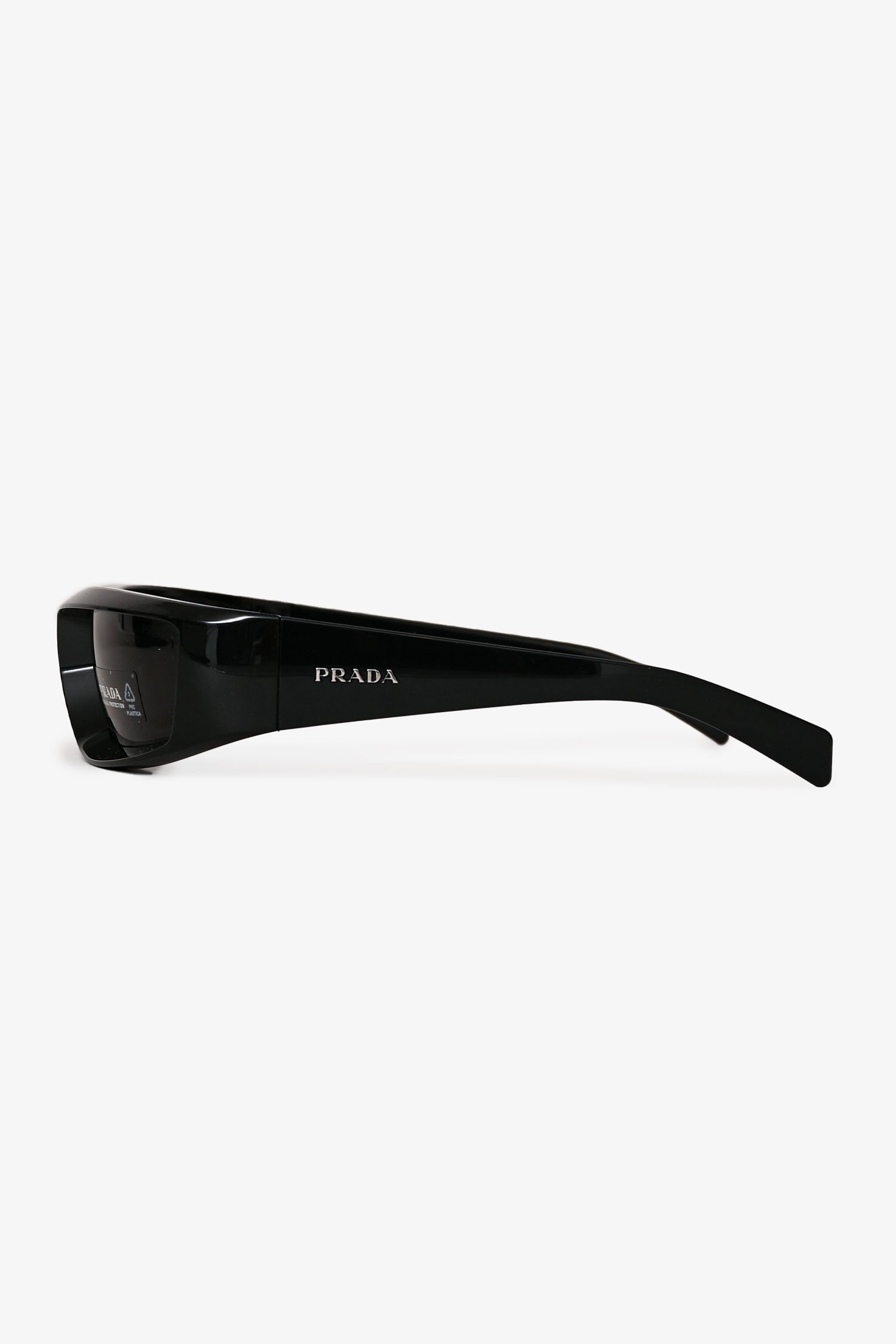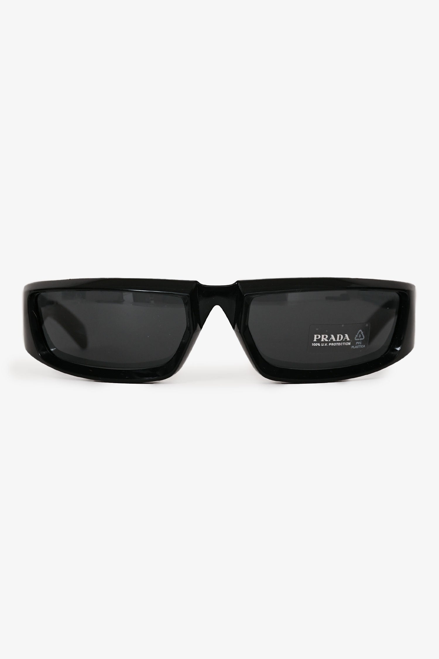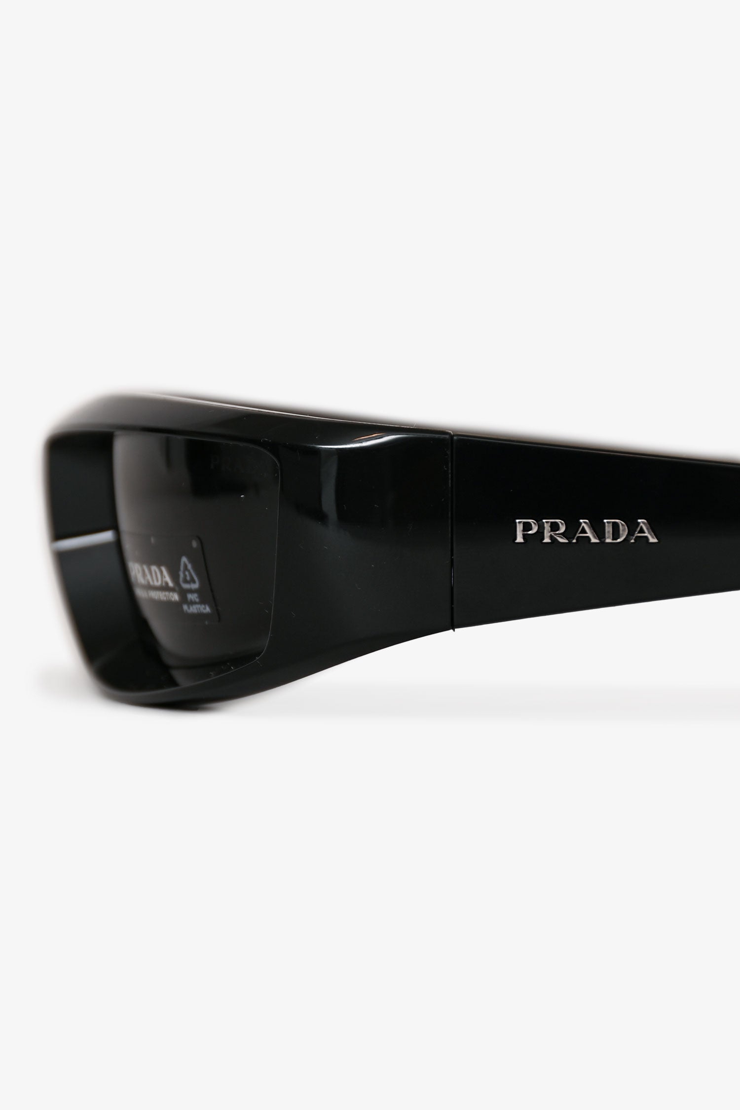 Refresh availabilityPrada Black Rectangular Sunglasses. Tinted lenses. Frame nose pads. Silver-tone hardware.