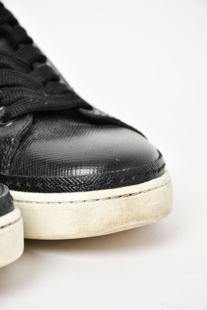 Prada Black Saffiano Leather Low Top Sneakers Size 8 Mens