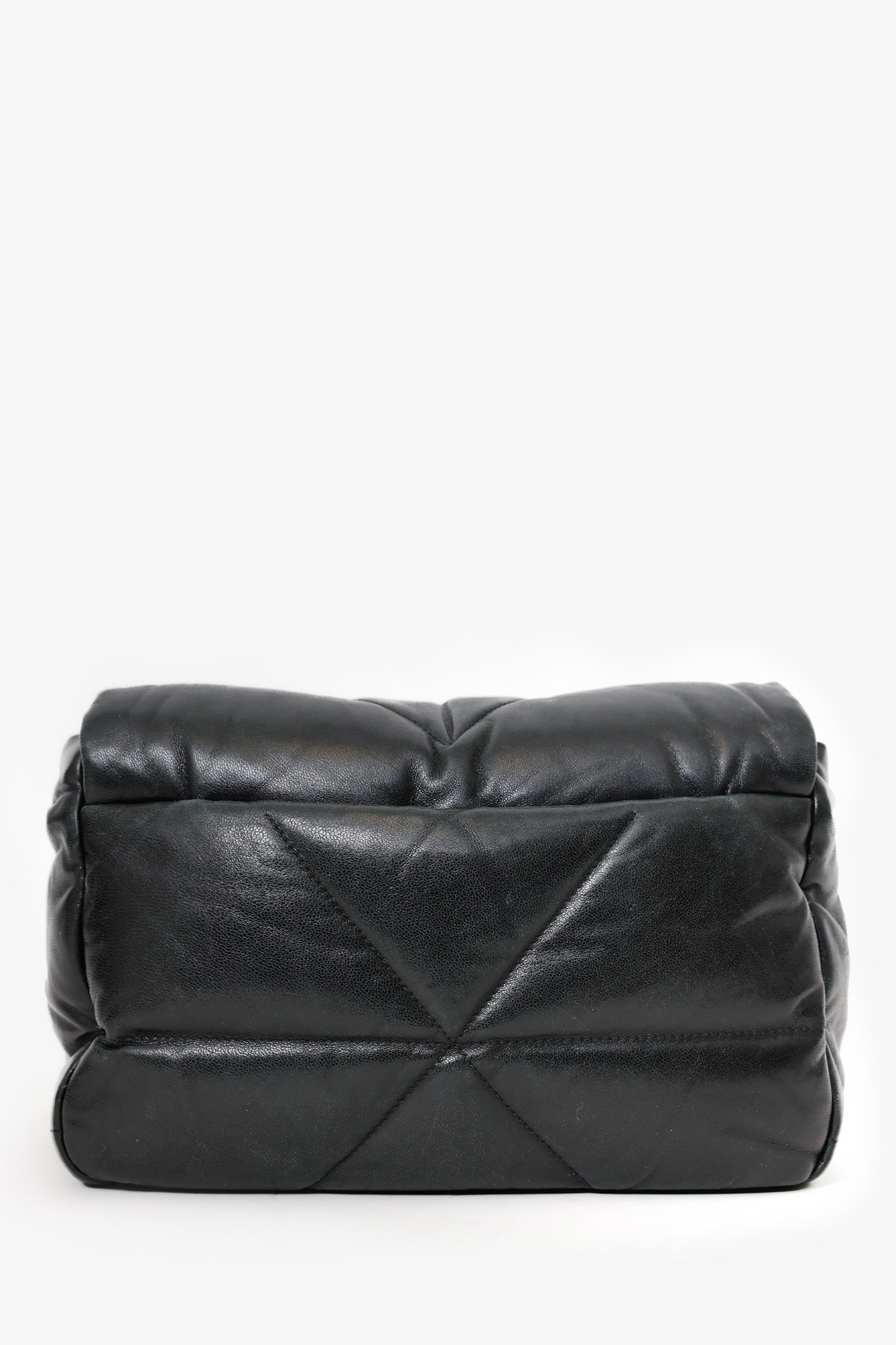 Prada Black Soft Quilted Padded Leather Medium Patchwork System Flap Shoulder Bag