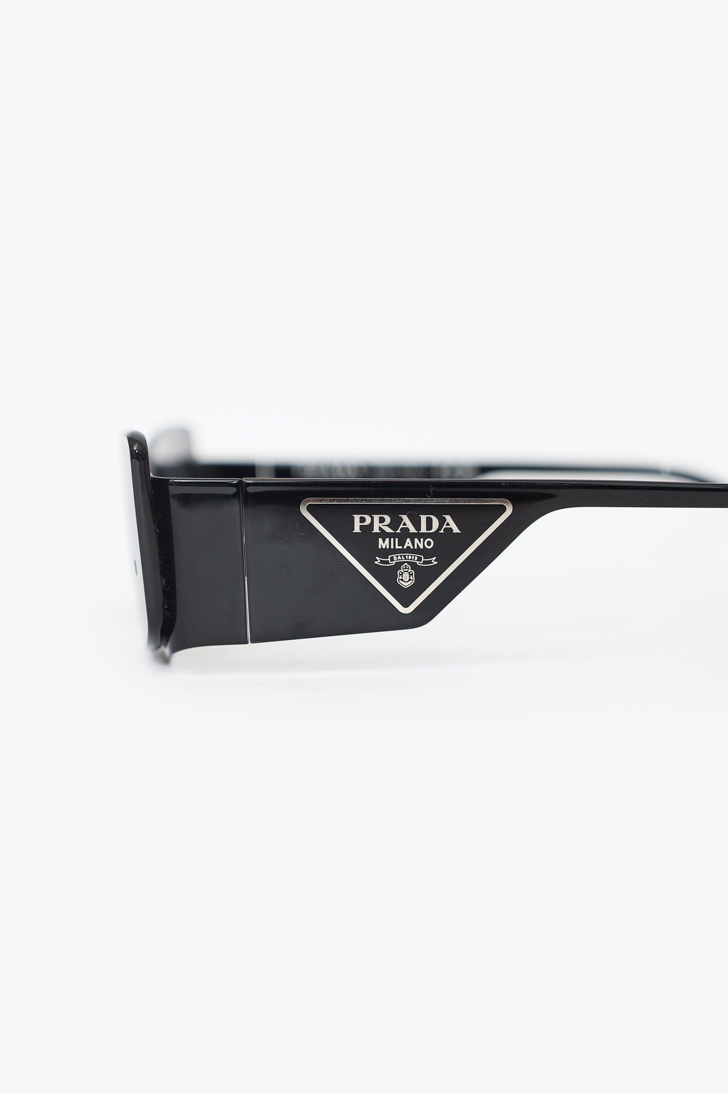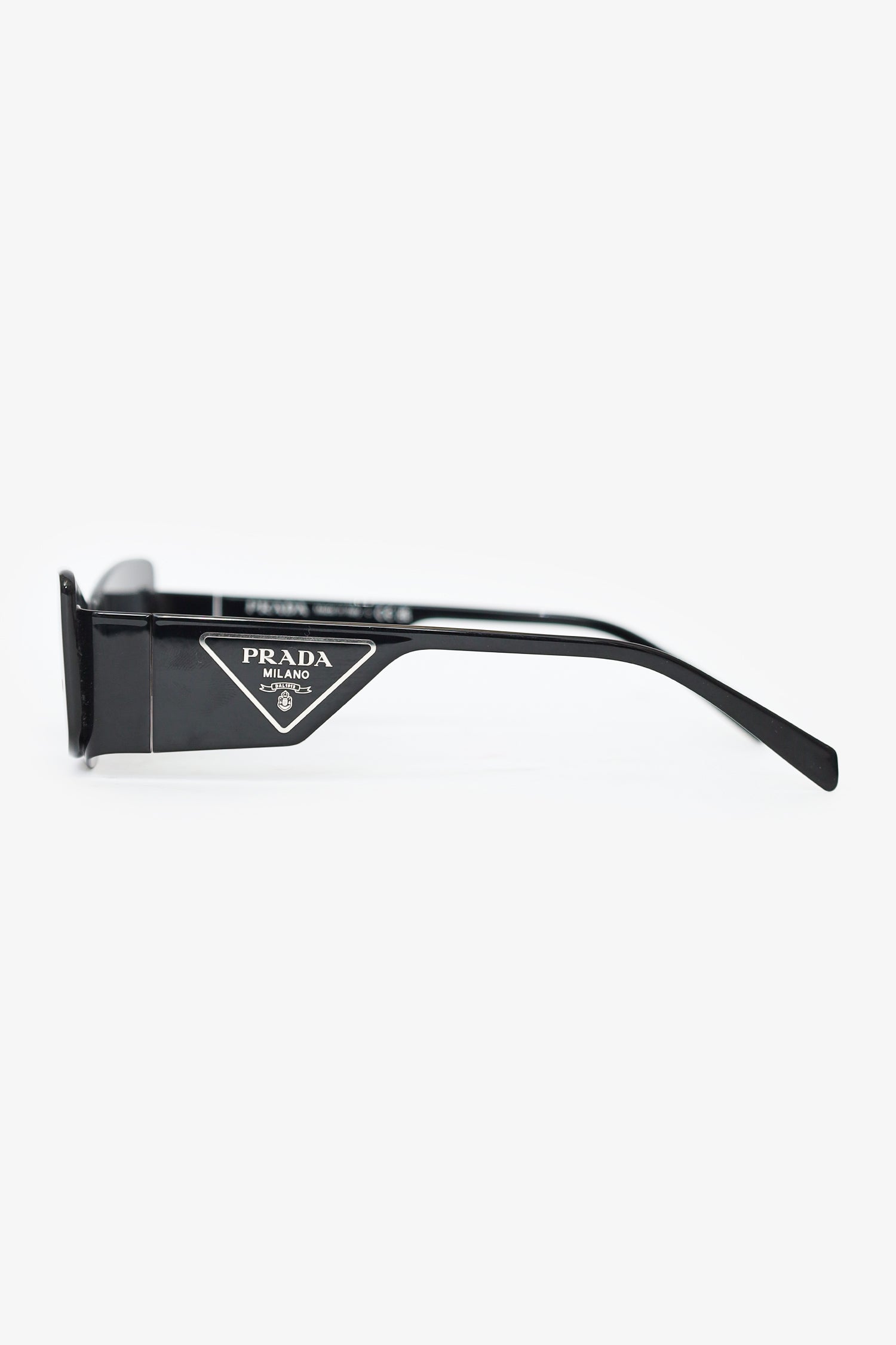 Refresh availabilityPrada Black SPR 59Z Runaway Shield Sunglasses. Adjustable nose pads. Silver-tone hardware.