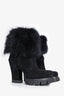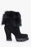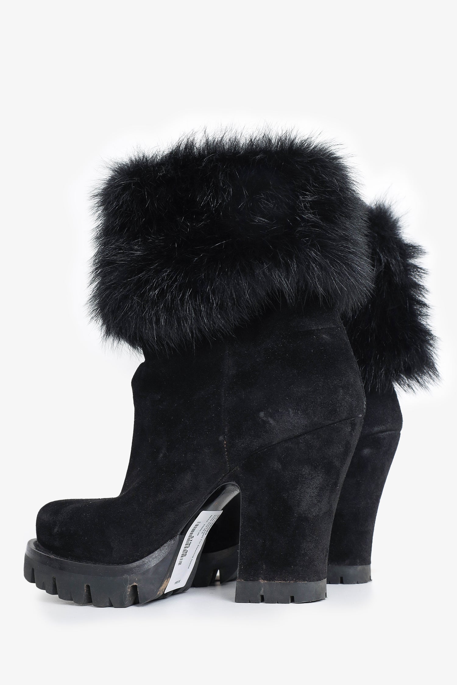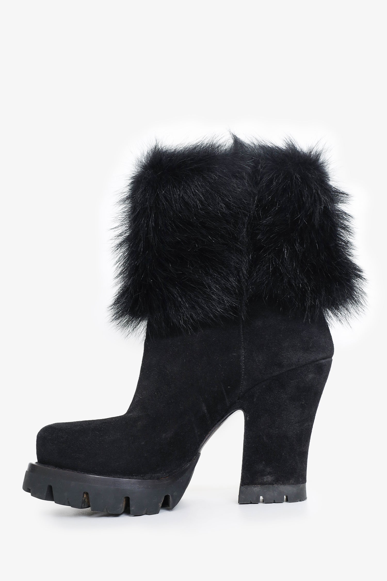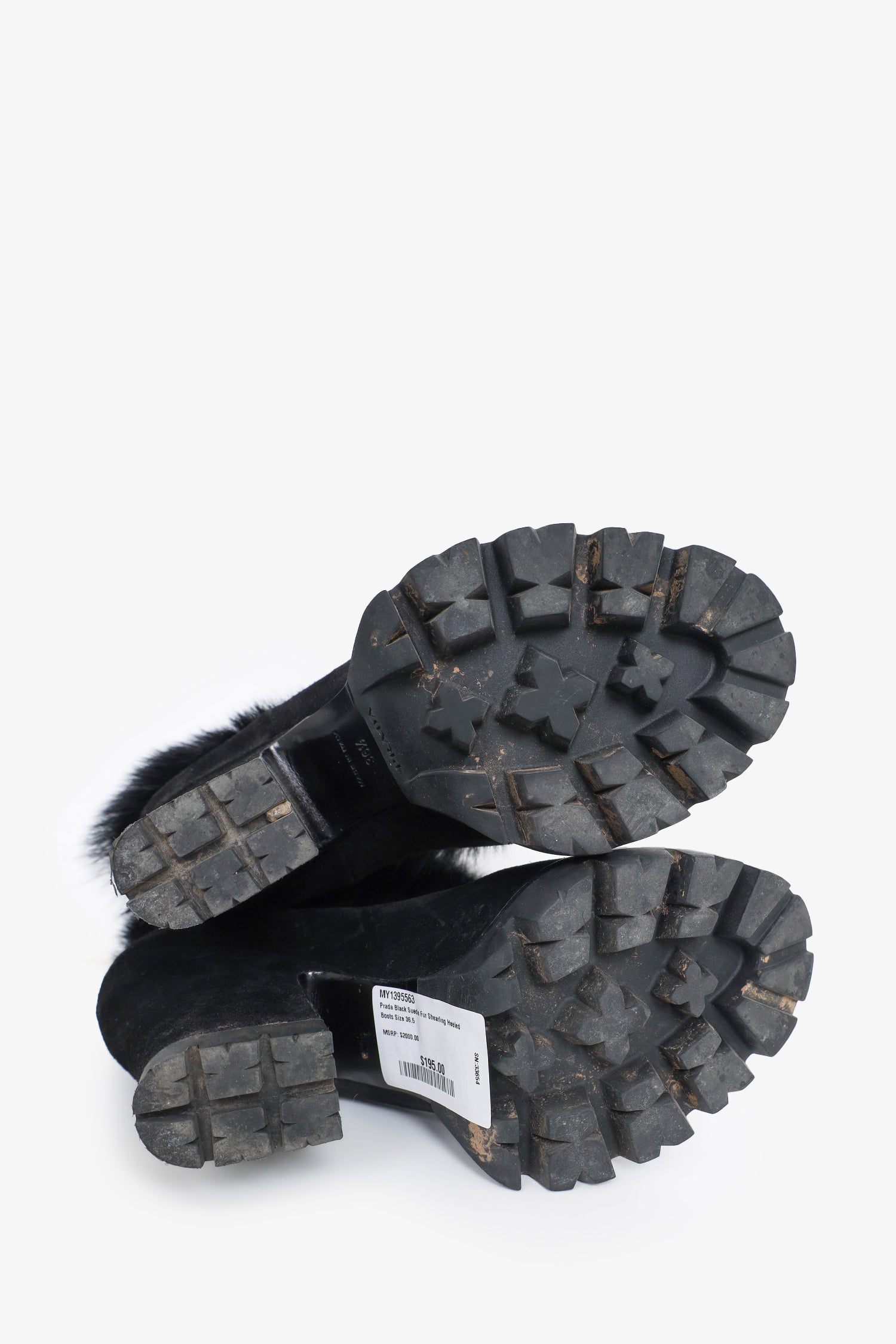 Prada Black Suede Fur Shearling Heeled Boots Size 36.5