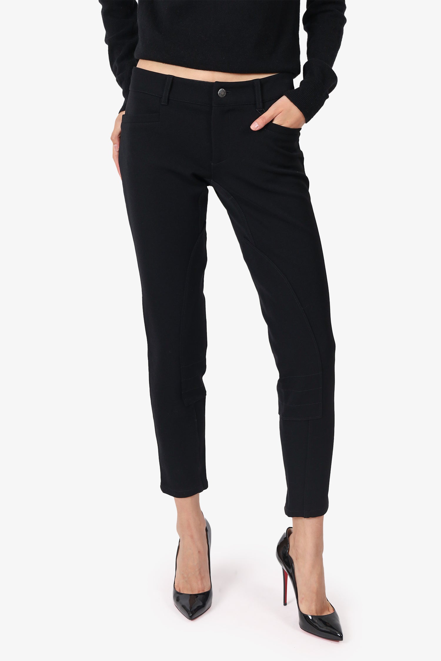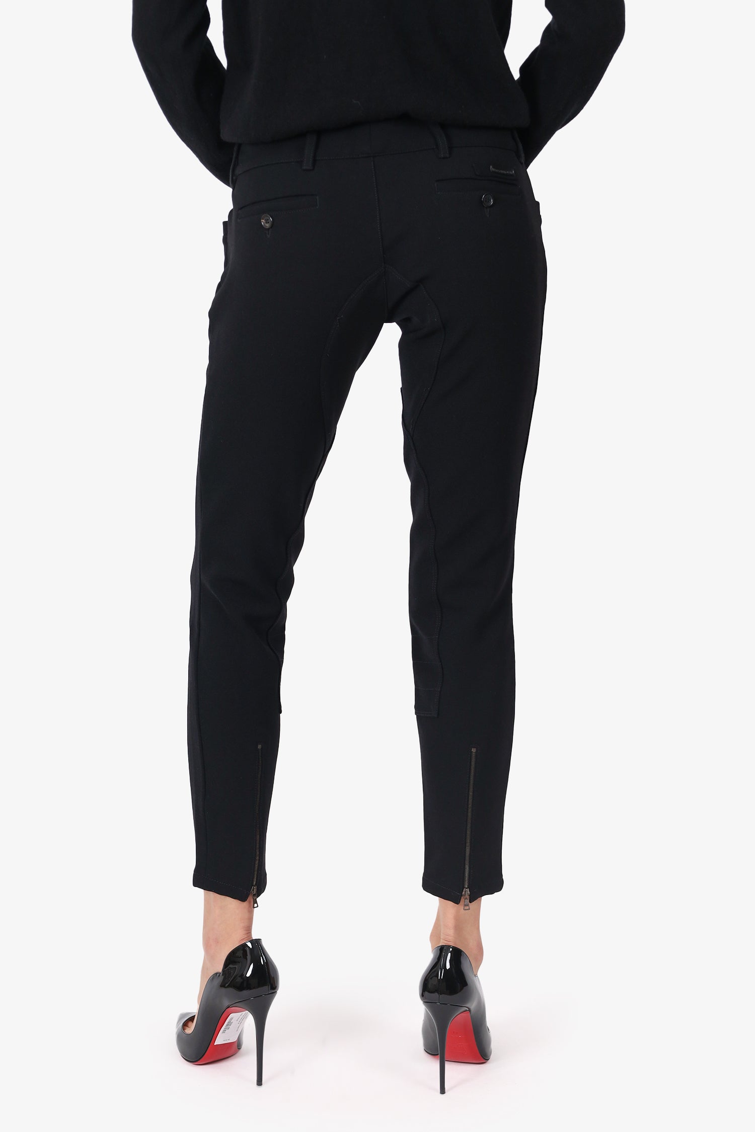 Refresh availabilityPrada Black Zip-up Pants. Slip on. Front zip with button-up closure. Waistband belt-loops. 4 exterior pockets; 2 front slip, and 2 rear button-up. Zipper to rear ankle cuffs. Gunmetal-tone hardware. Tonal stitching.