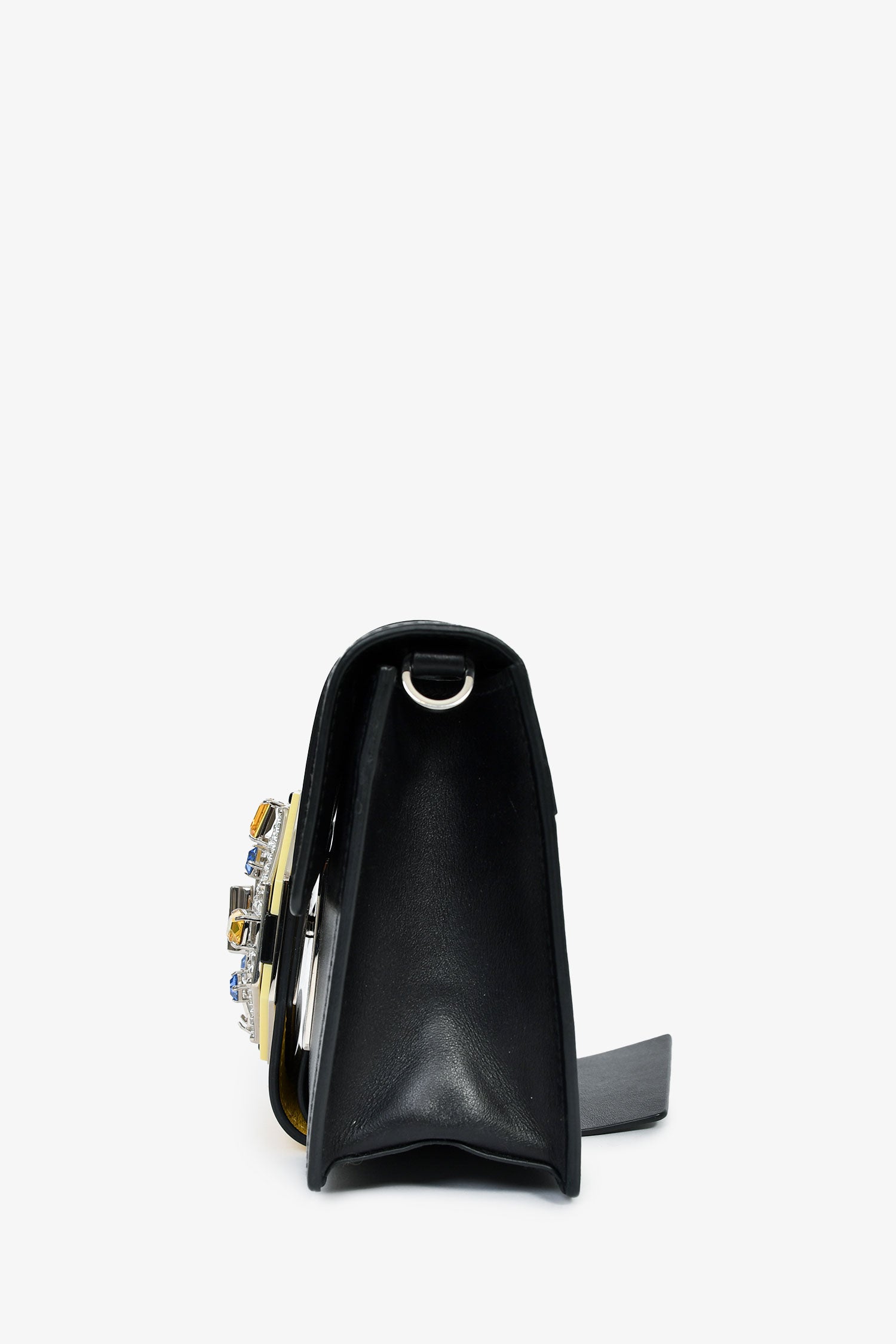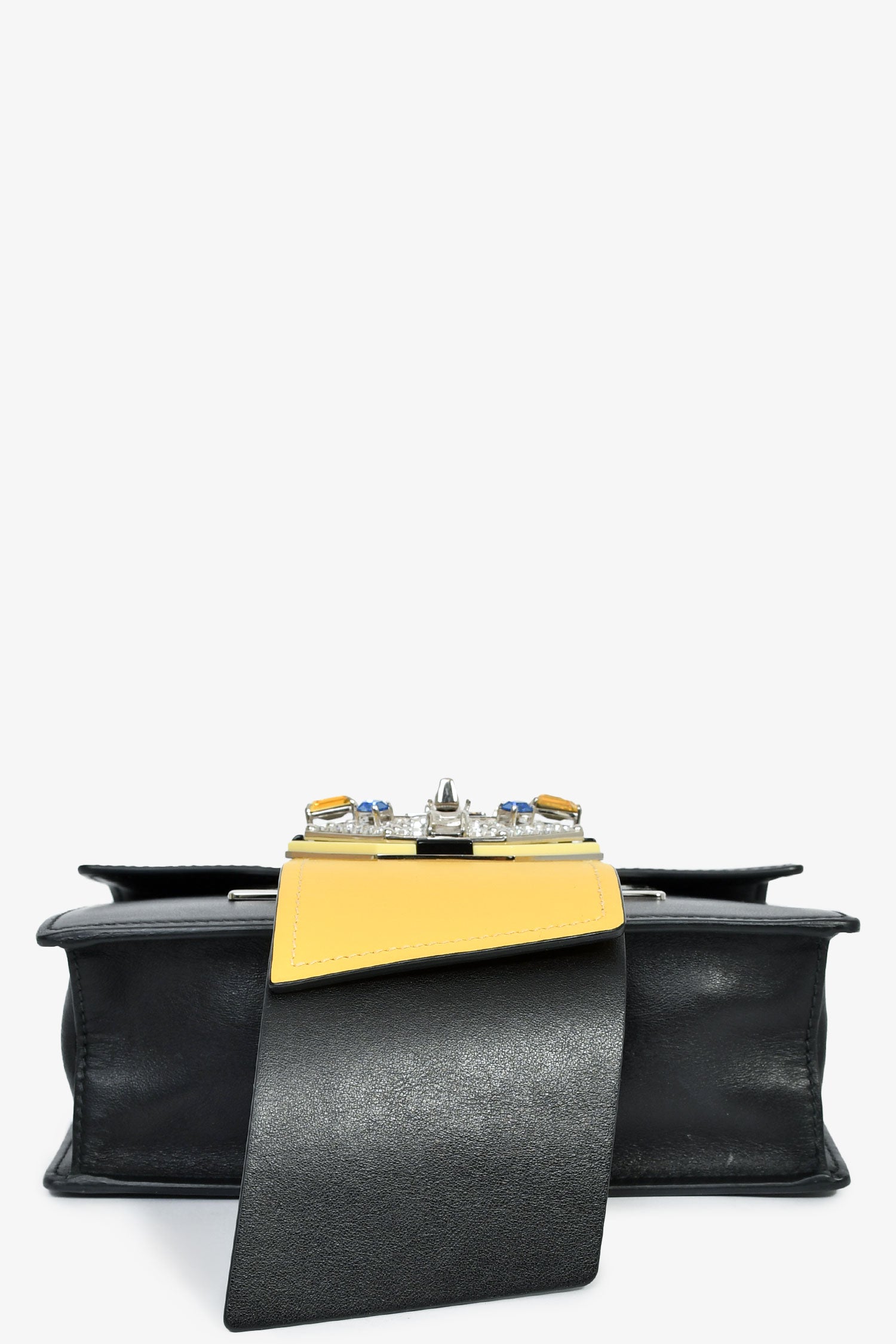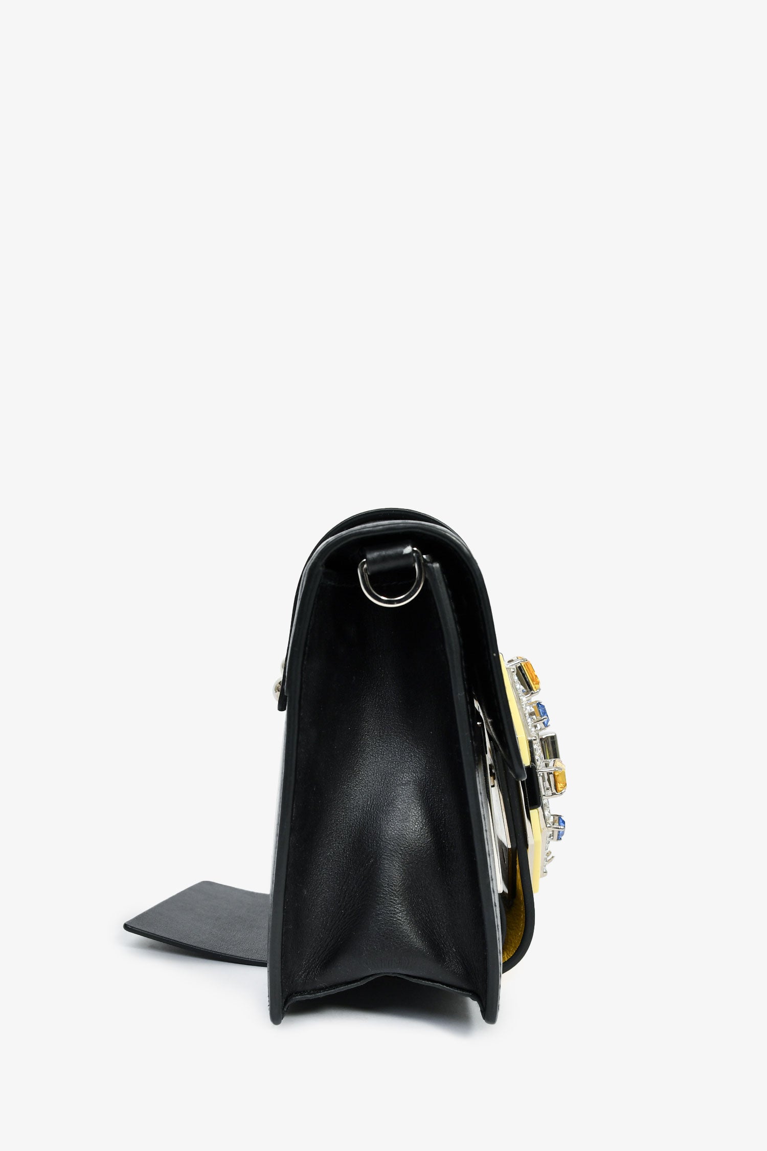 Prada Black/Yellow Leather City Calf Embellished Ribbon Chain Bag