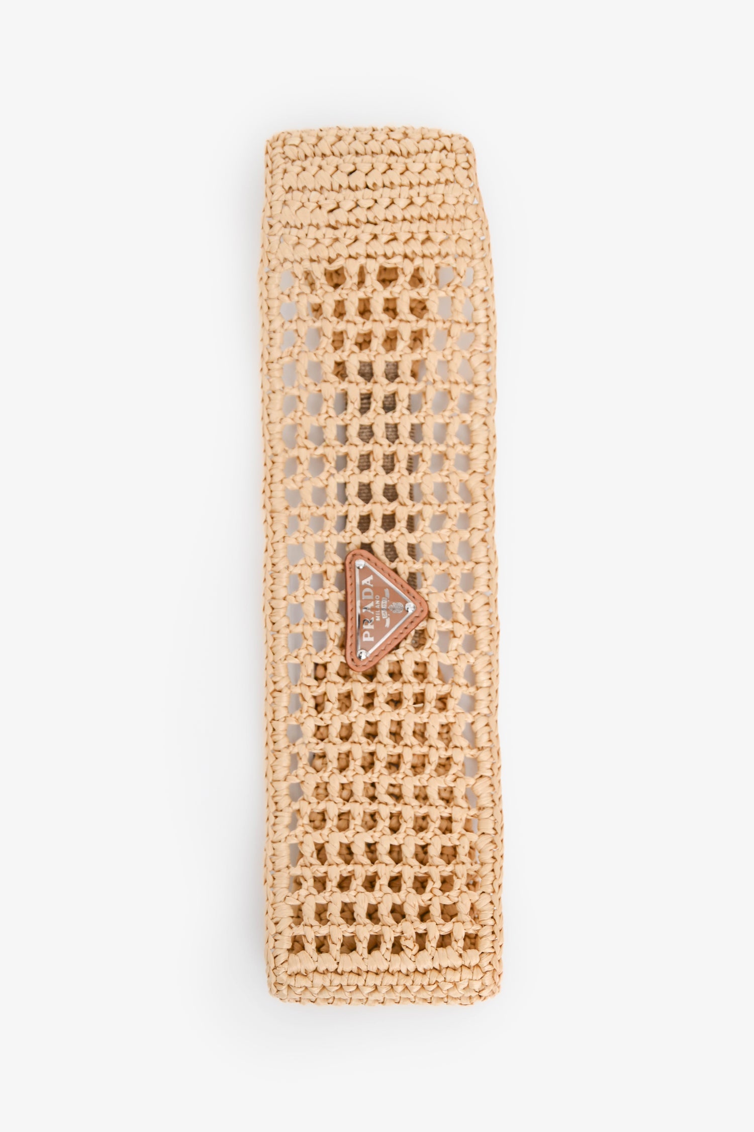 Refresh availabilityPrada Brown Raffia Logo Patch Head Band. Pull-on. Elasticated rear. Silver-tone hardware. Tonal stitching.