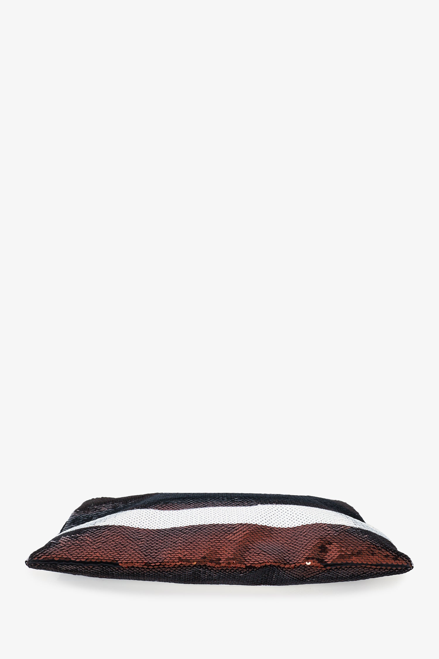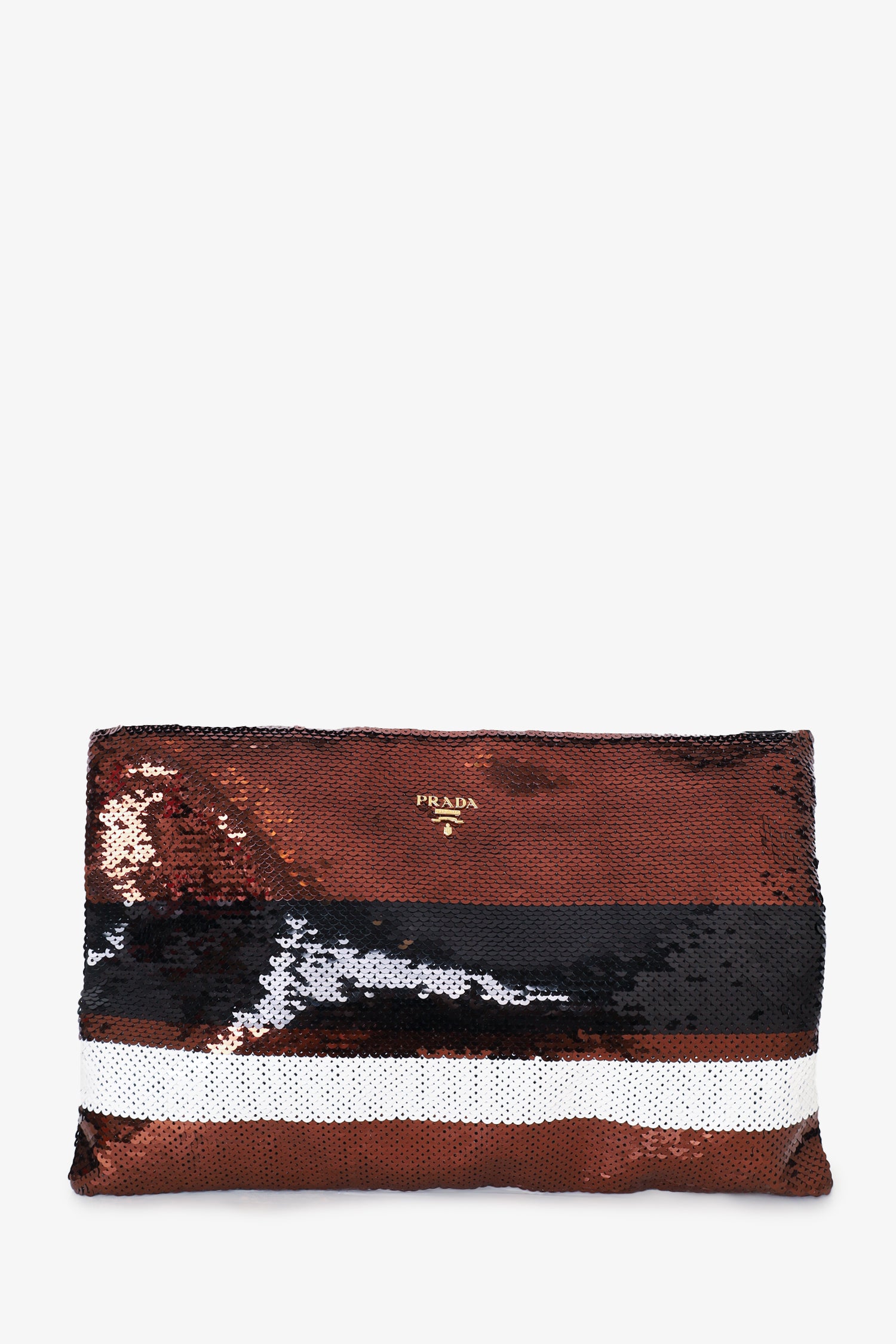 Refresh availabilityPrada Brown/White Sequin Large Zip Clutch. Top zip closure. Interior zip pocket. Tonal stitching.