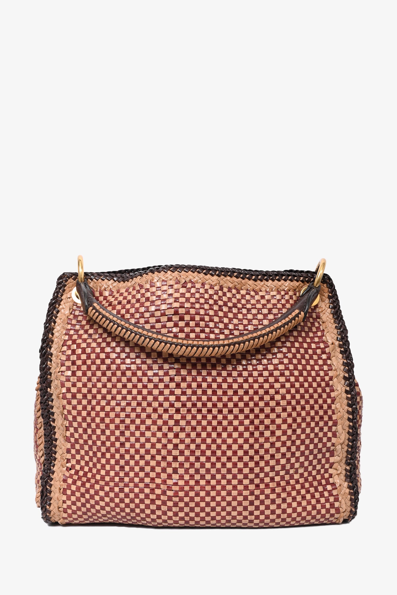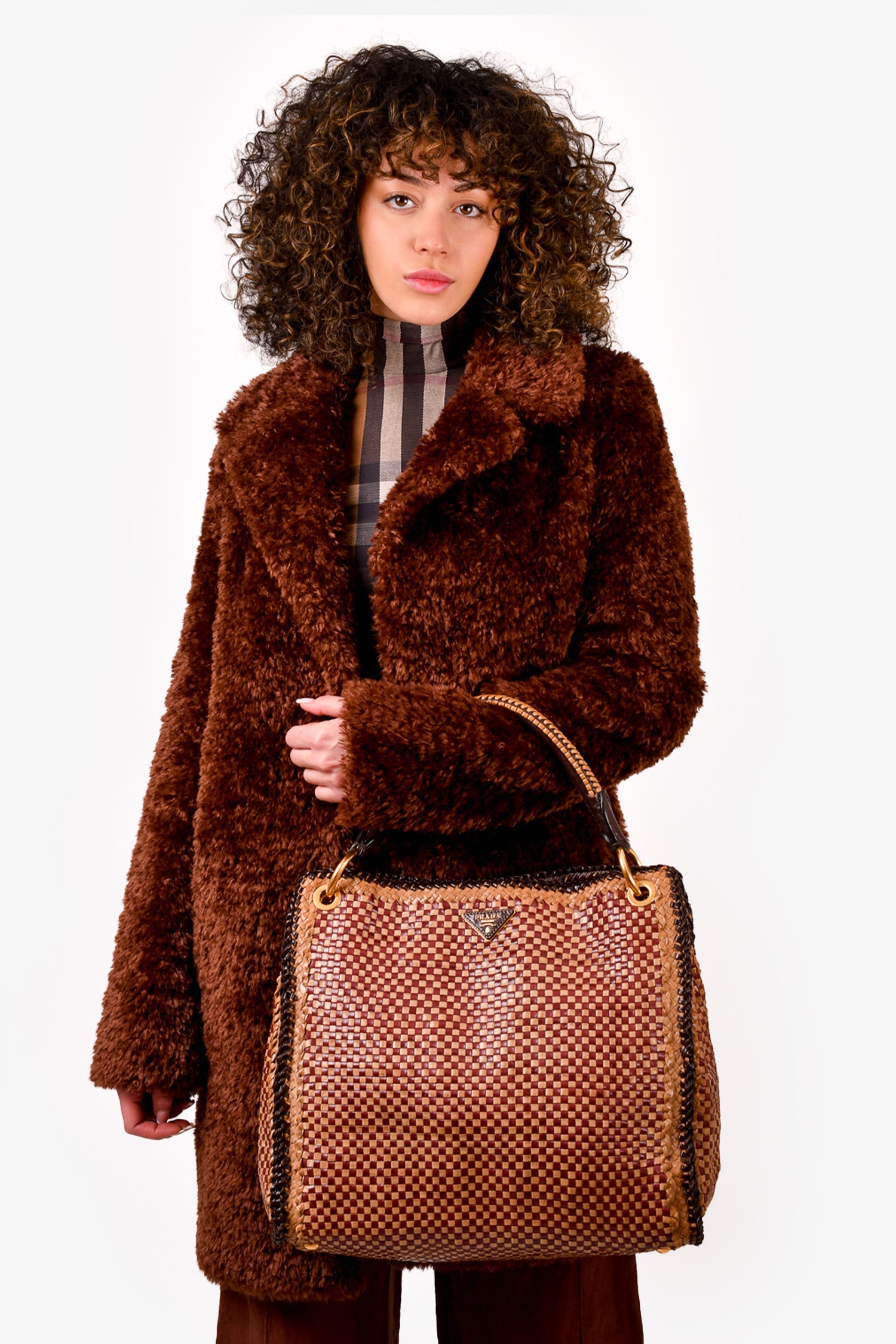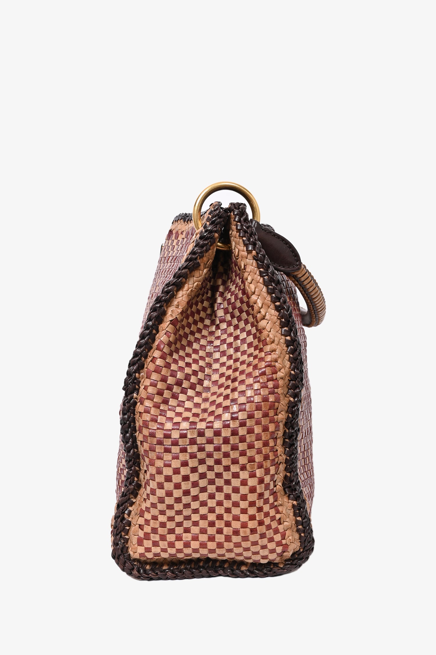 Refresh availabilityPrada Brown Woven Madras Hobo Bag. Lined. Gold-tone hardware. 3 interior slip pockets. 1 interior zip pocket. Button closure. Tonal and contrast stitching.