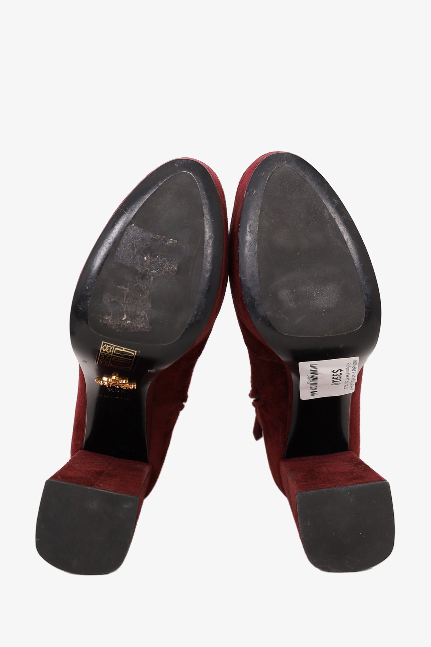 Prada Burgundy Suede Platform Heeled Boots Size 36.5
