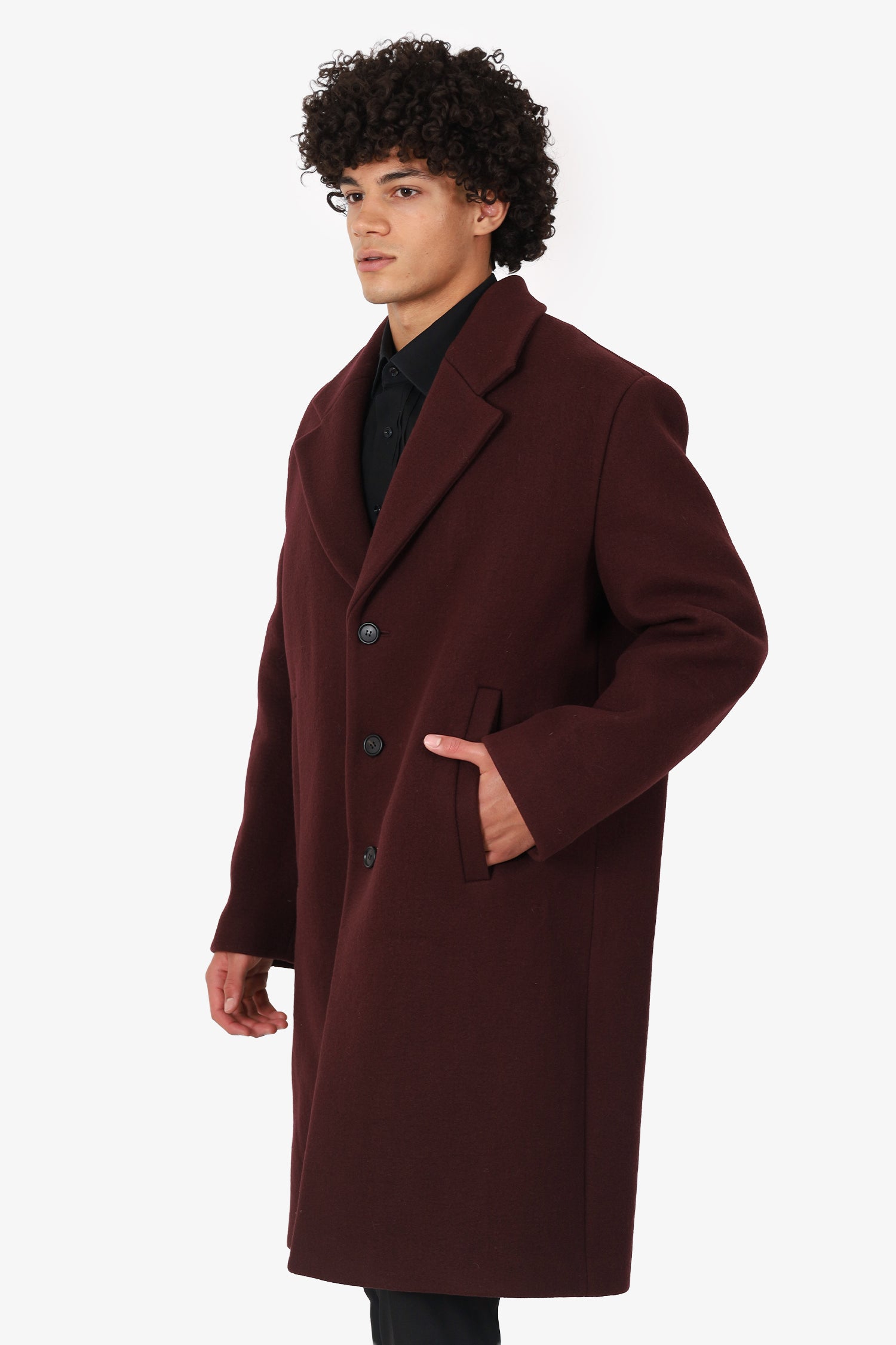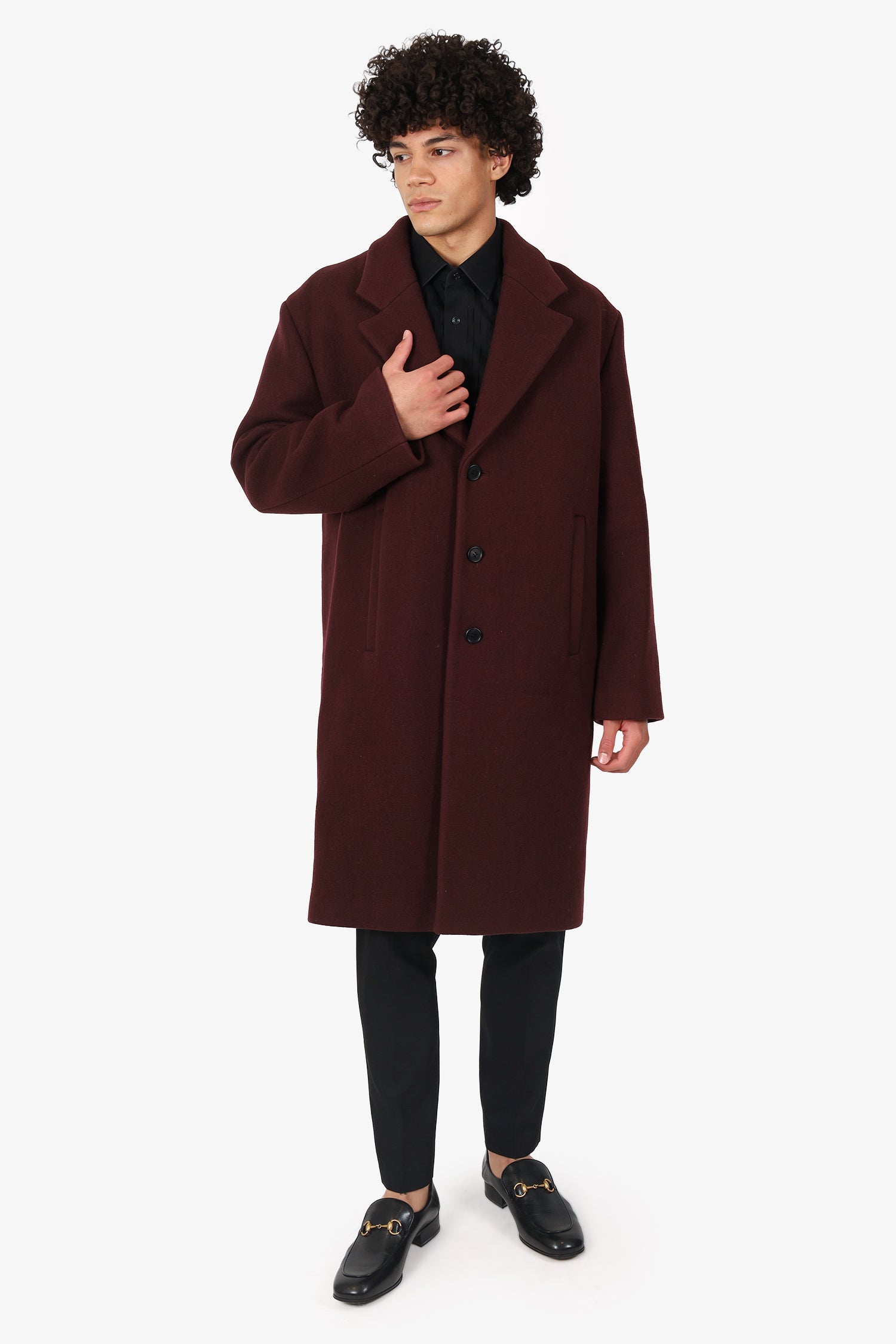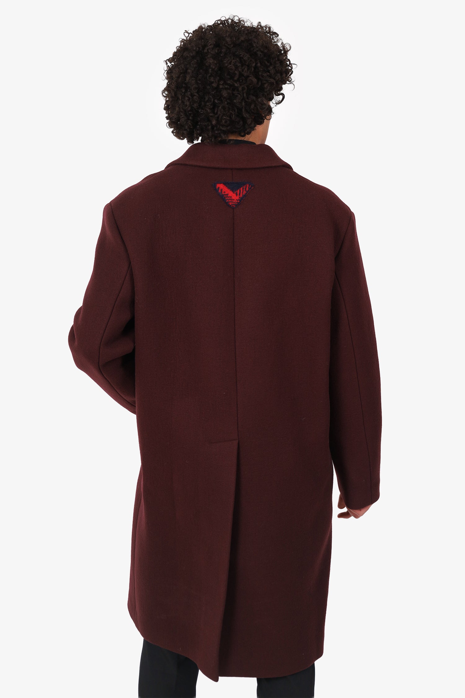 Prada Burgundy Wool Triangle Logo Coat Size 48