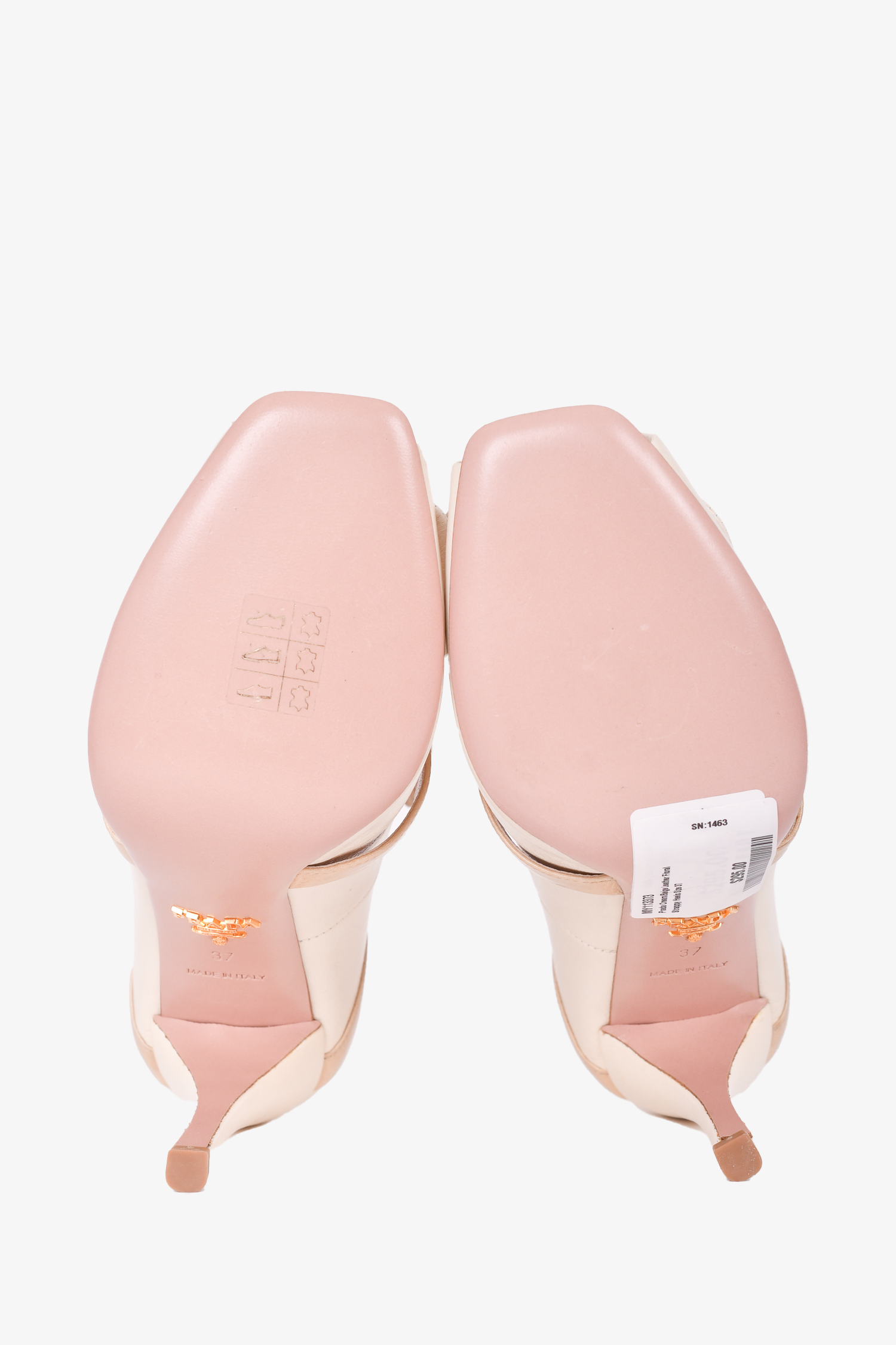 Prada Cream/Beige Leather Floral Strappy Heels Size 37