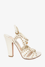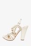 Prada Cream Leather Gold Studded Heeled Sandals Size 41