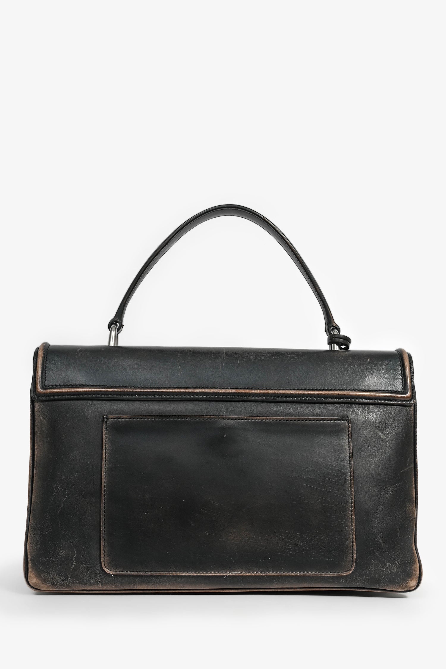 Prada Distressed Brown Vitello Daino Flap Top Handle