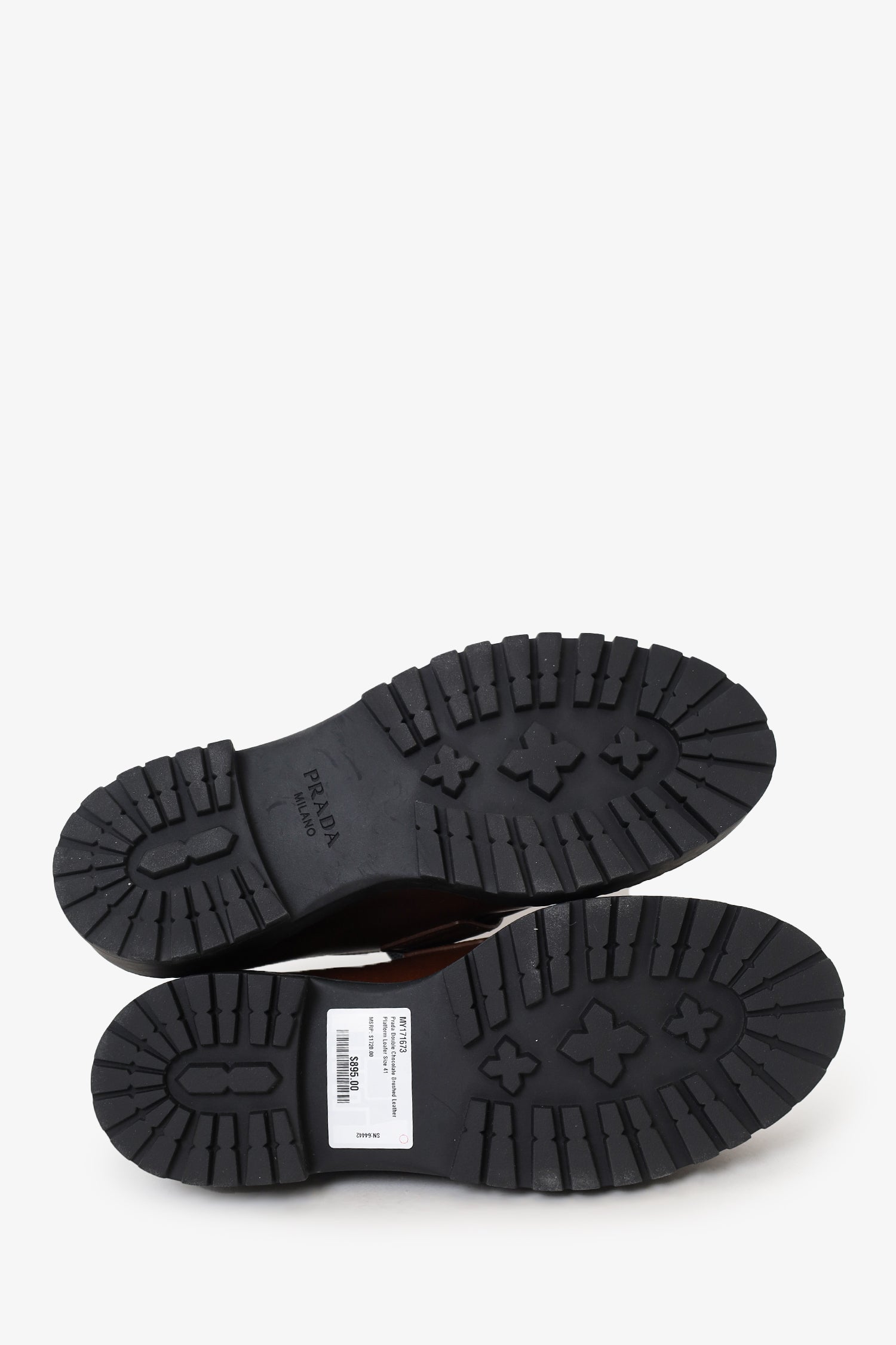 Prada Double Chocolate Brushed Leather Platform Loafer Size 41