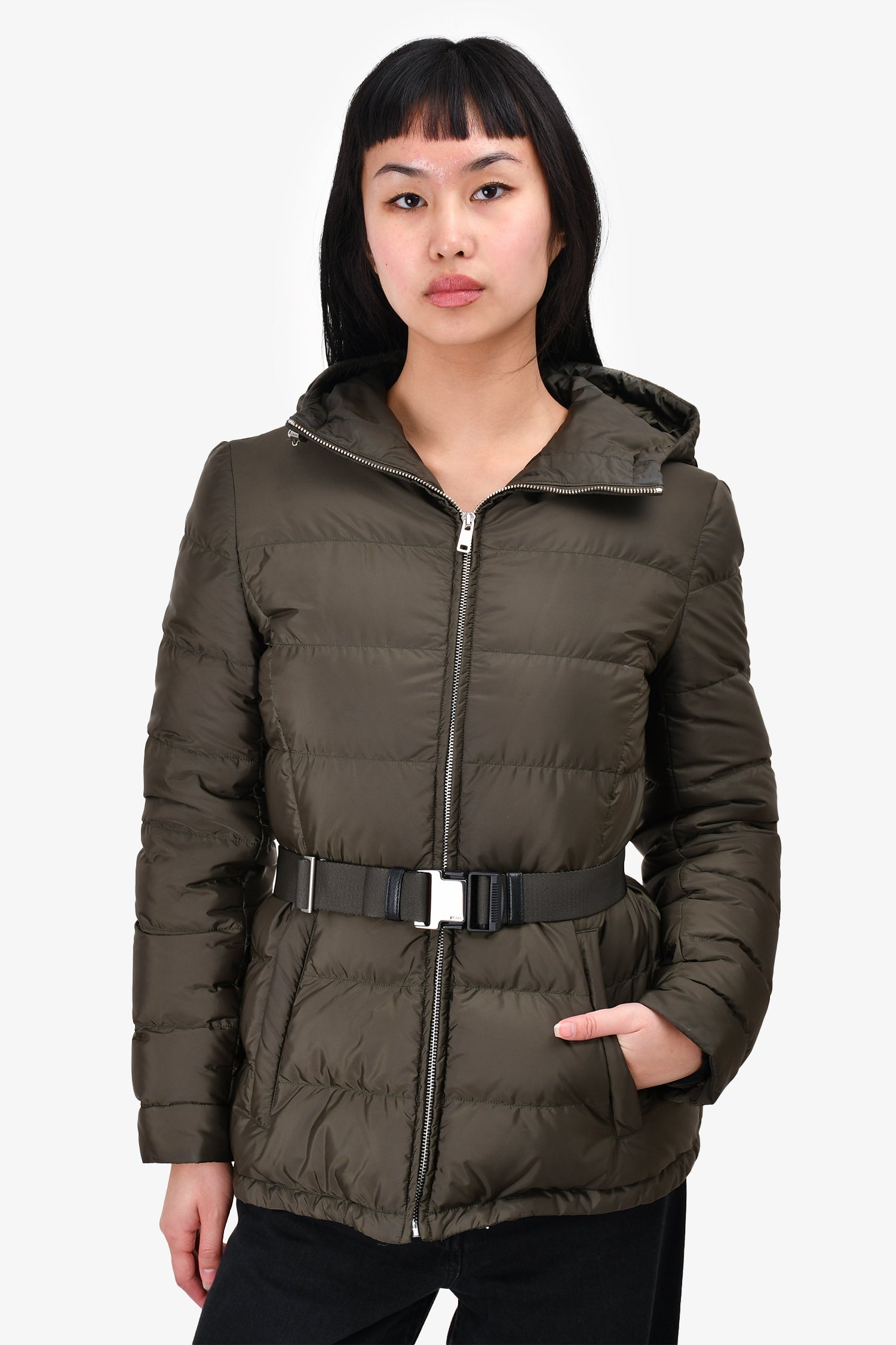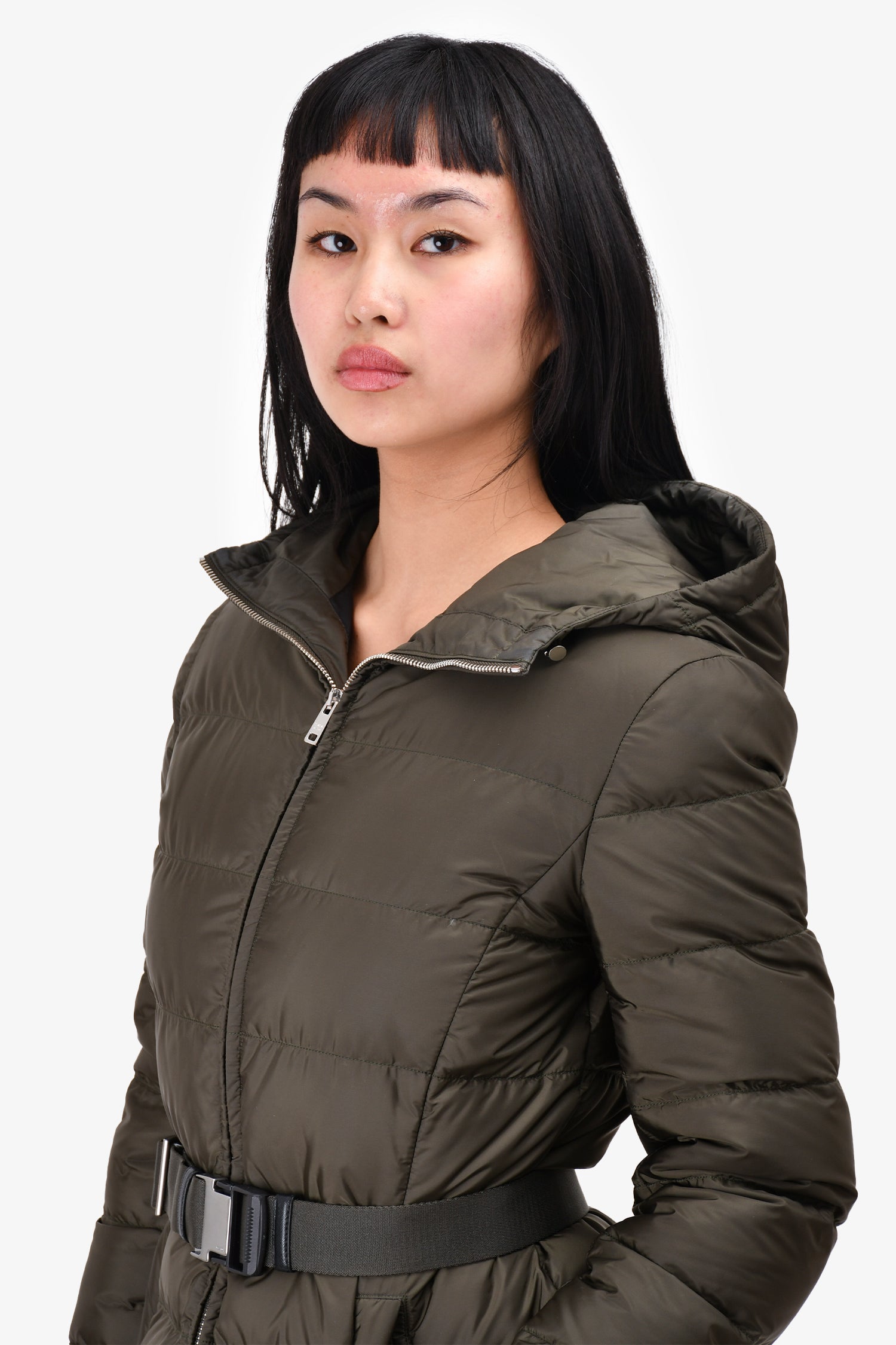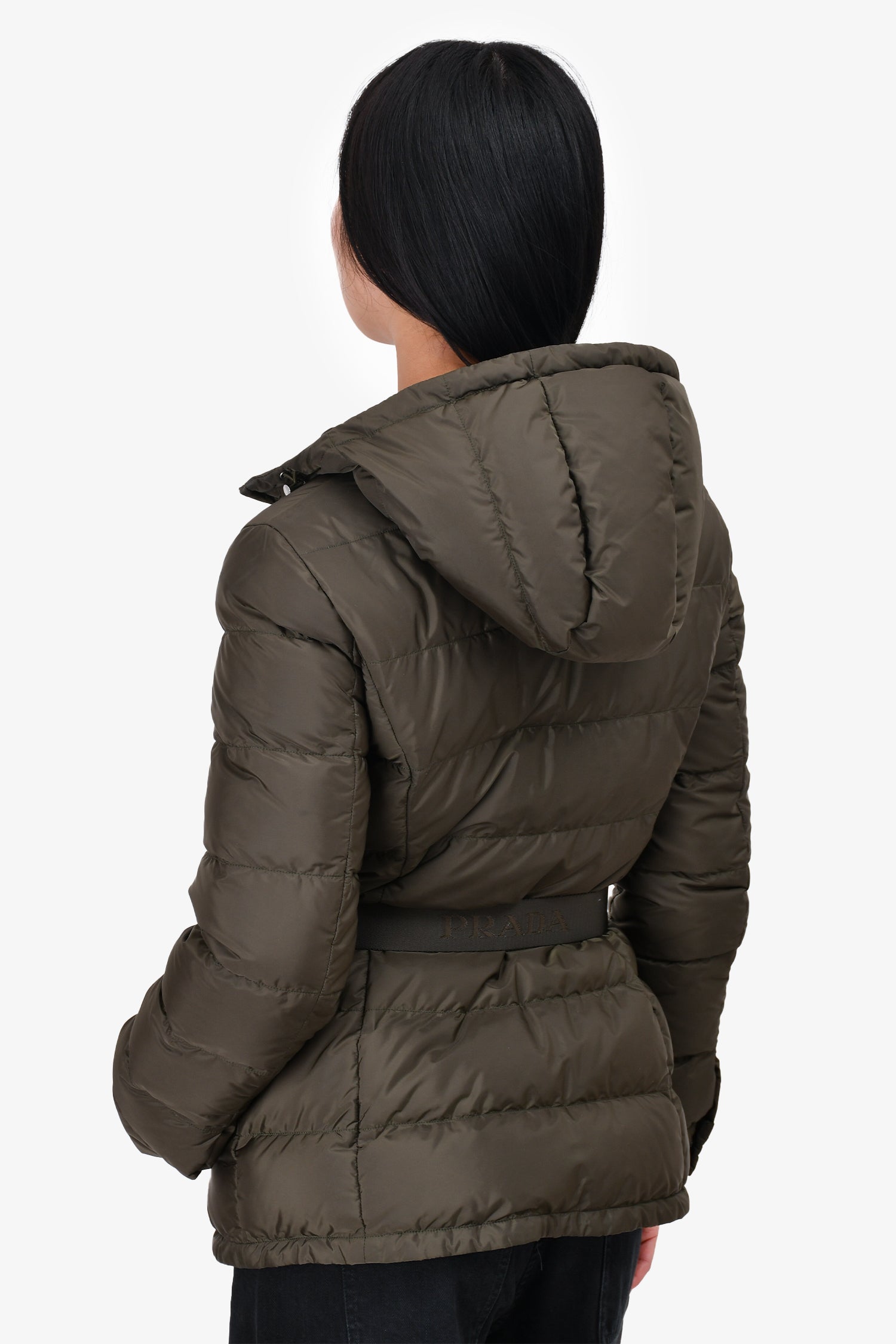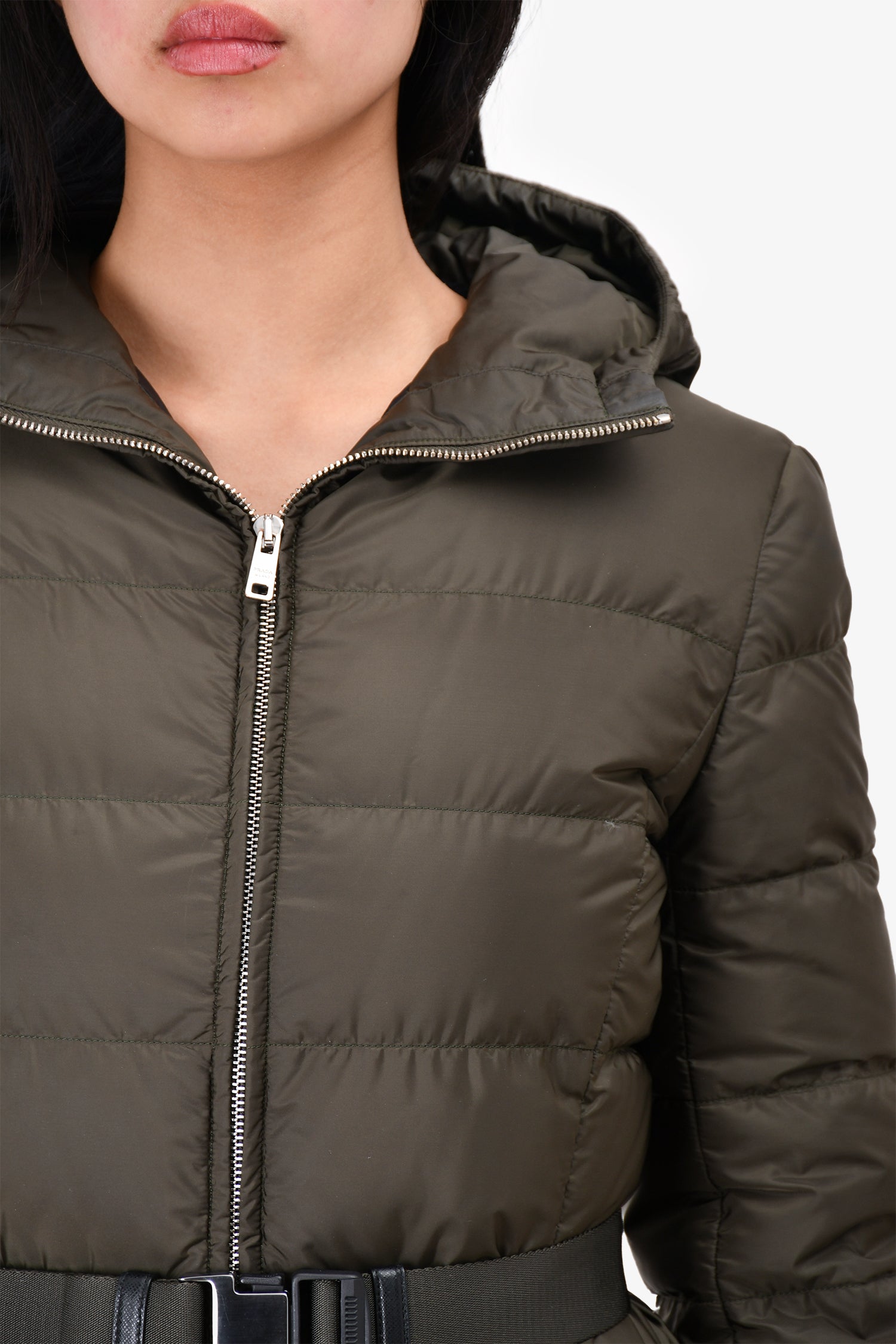 Prada Green Nylon Hooded Puffer Jacket with Belt Size 40