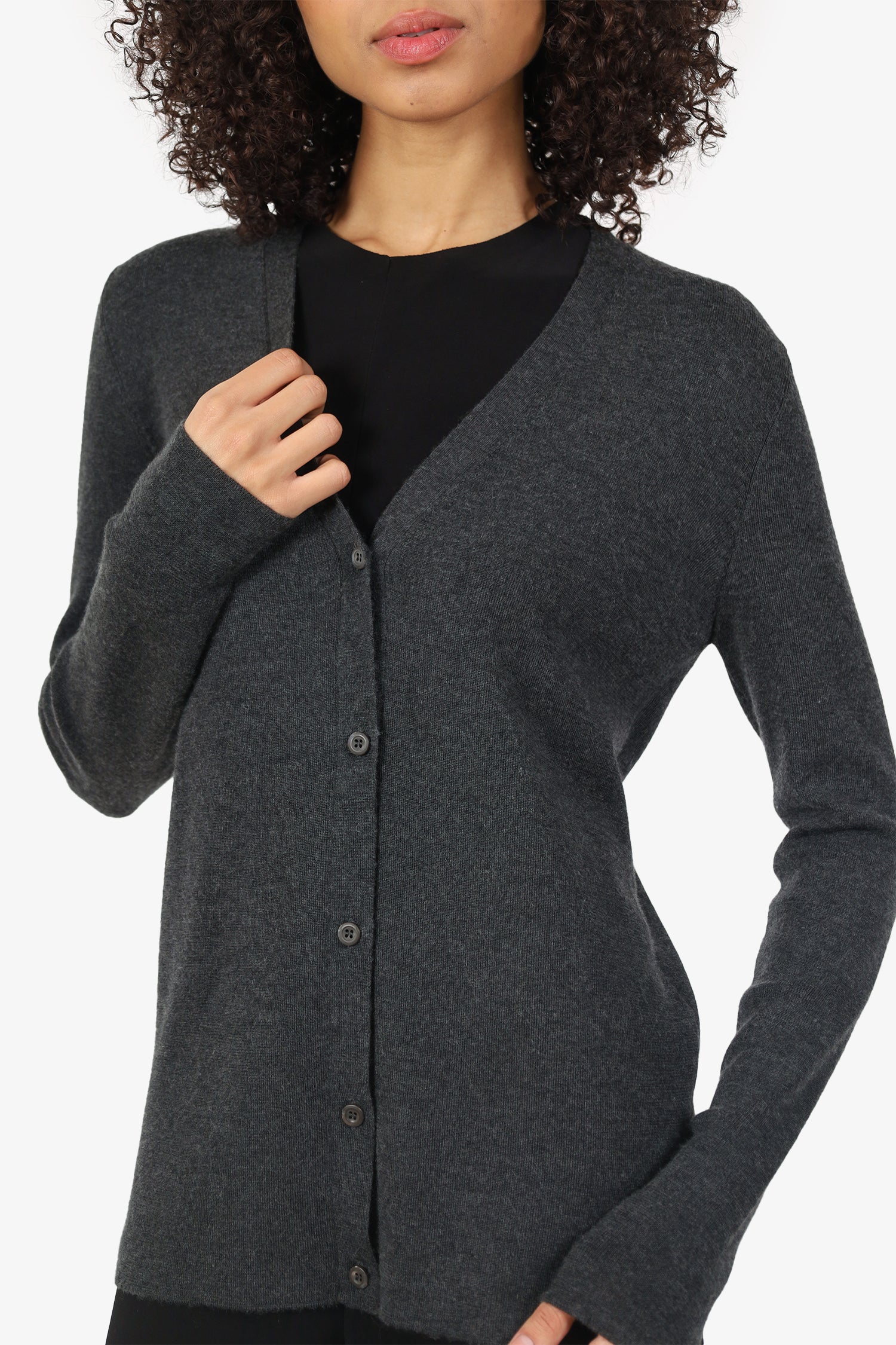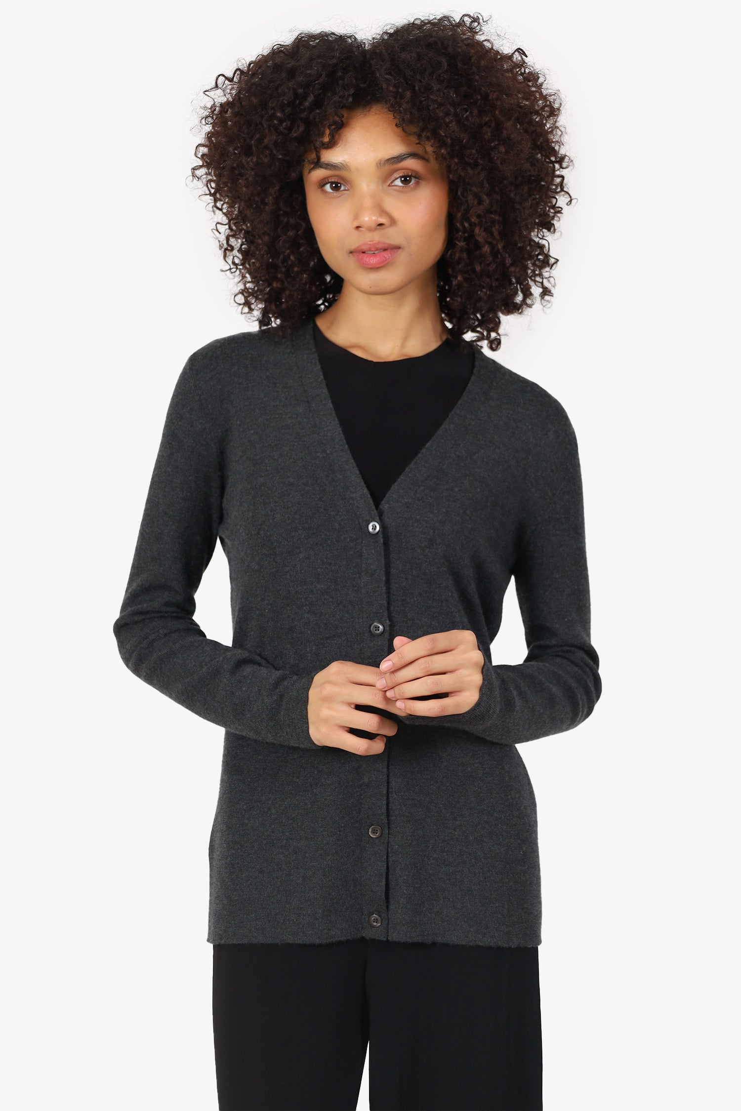 Refresh availabilityPrada Grey Cashmere/Silk Knit Cardigan. Pull-on. V-neckline. Front button-up closure. Tonal stitching.