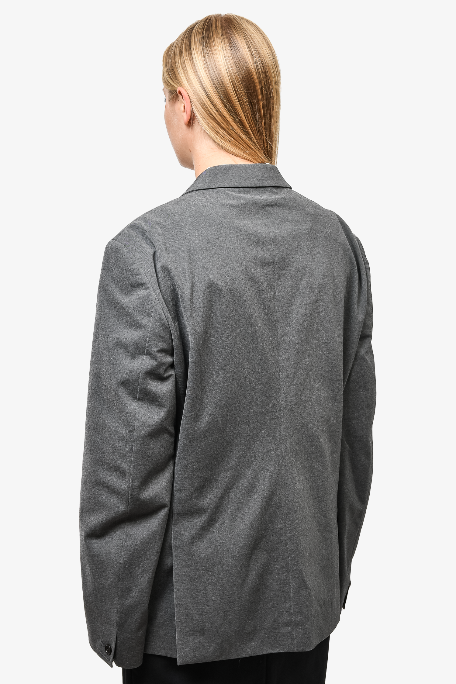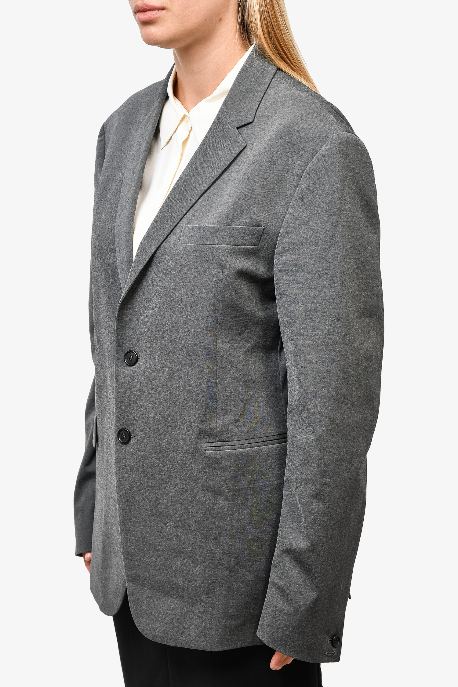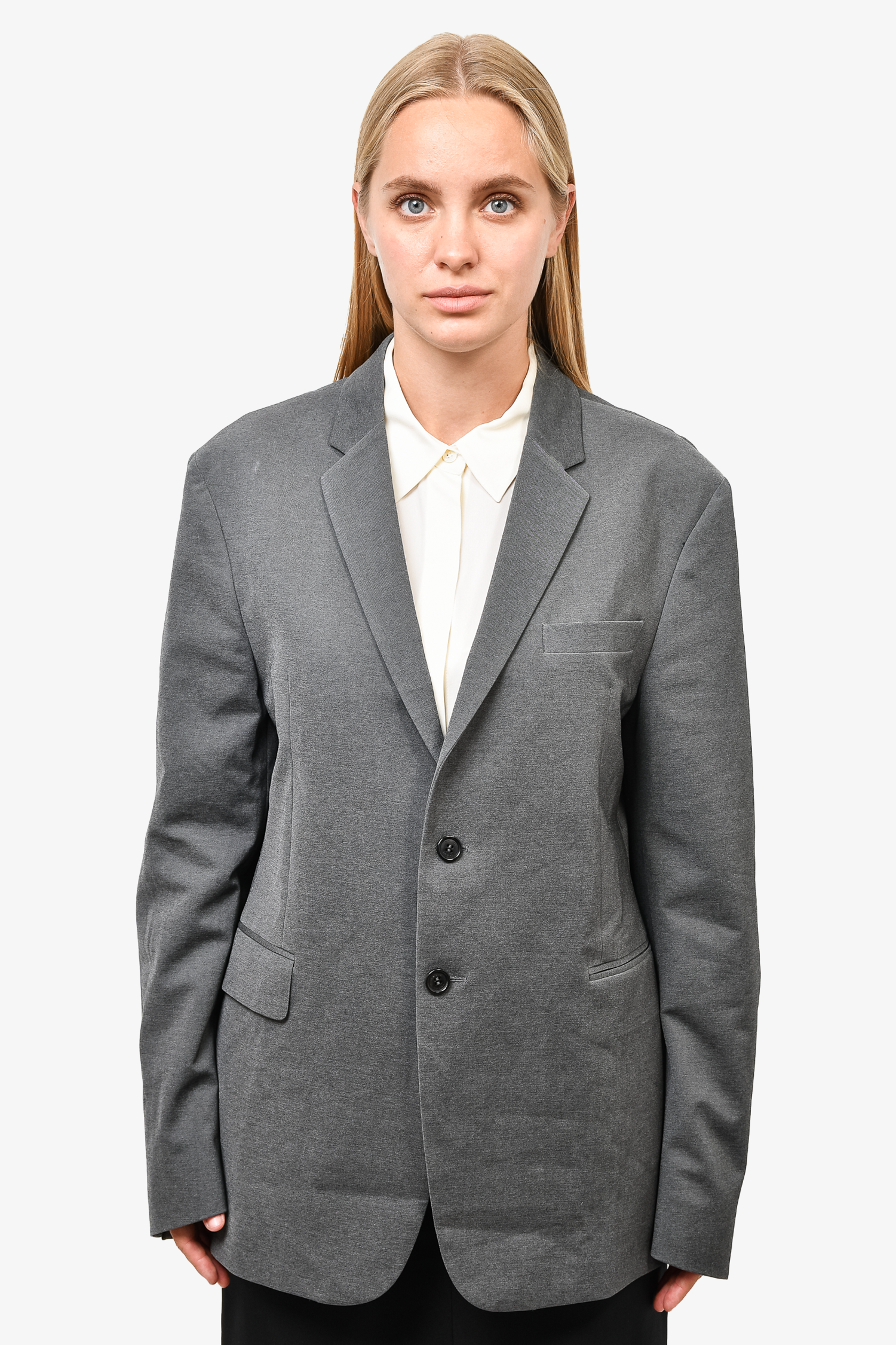 Refresh availabilityPrada Grey Cotton Blend Blazer. Front button-up closure. Front pockets. Lined. Tonal stitching.
