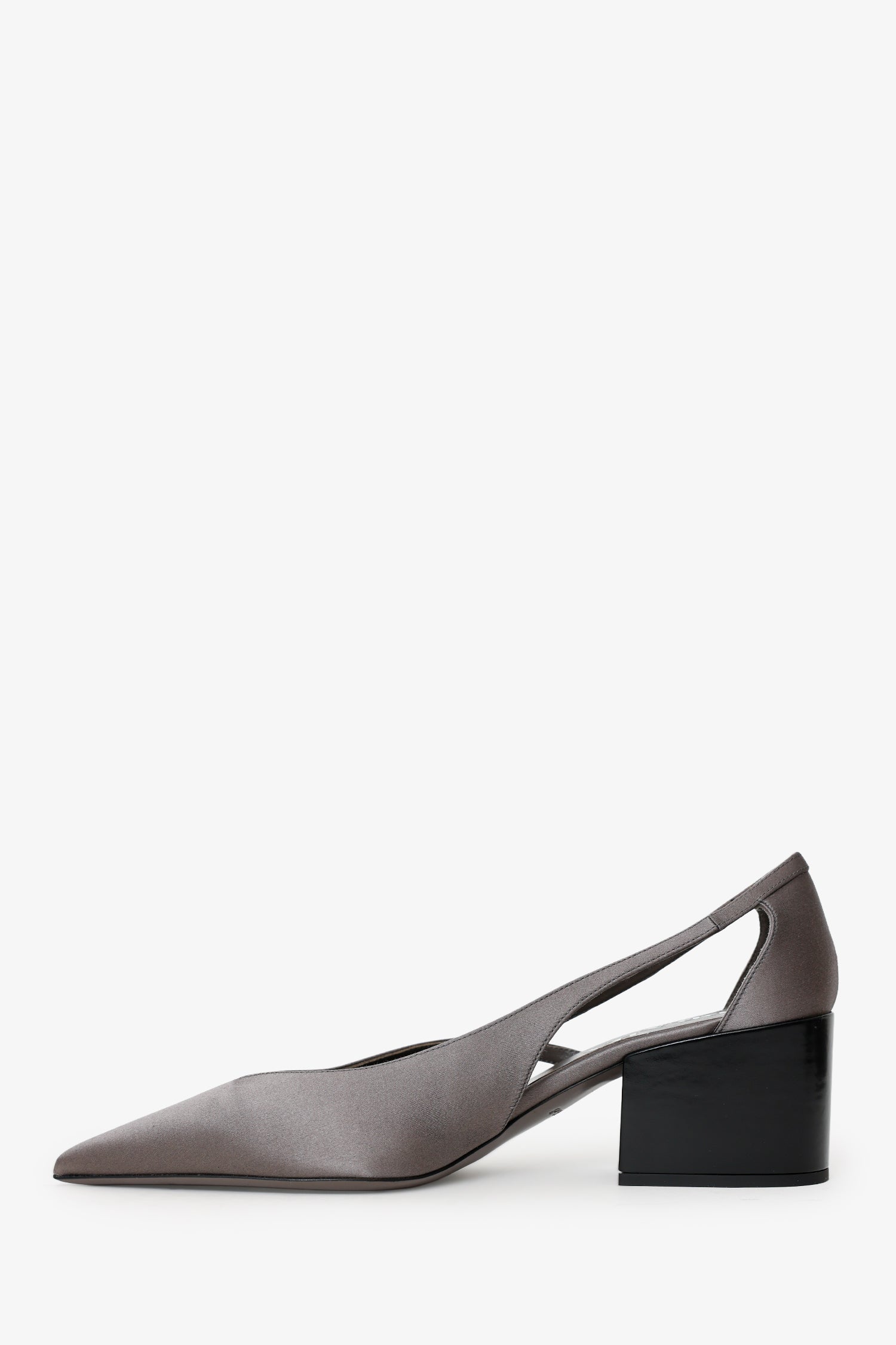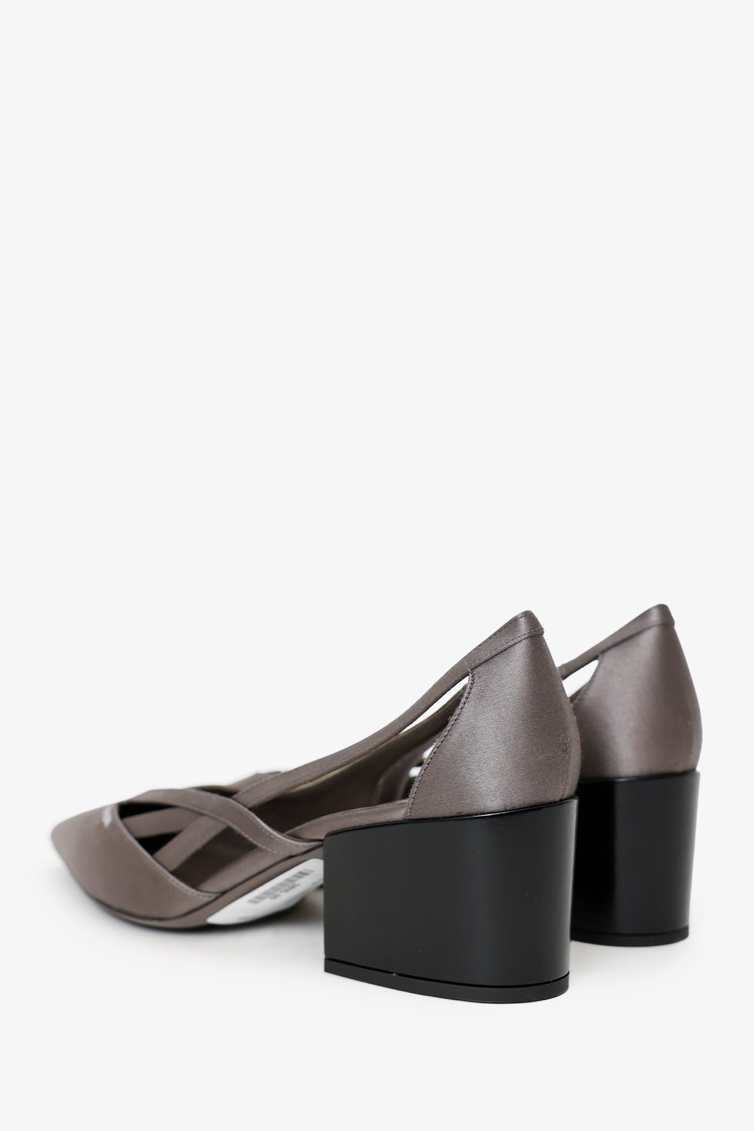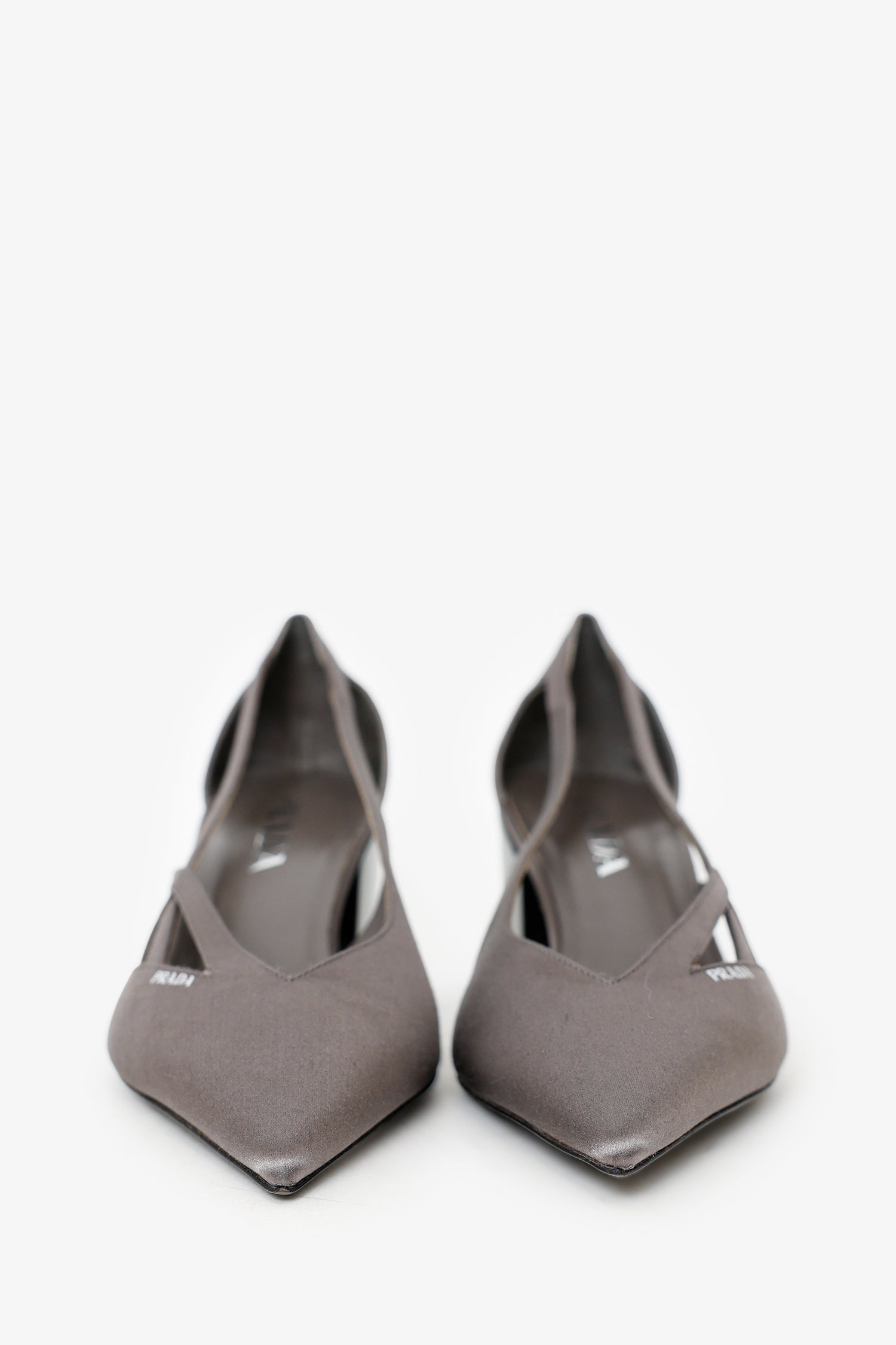 Refresh availabilityPrada Grey Satin Cut Out 55mm Pumps. Pointed toe. Cut-out design. Tonal stitching.