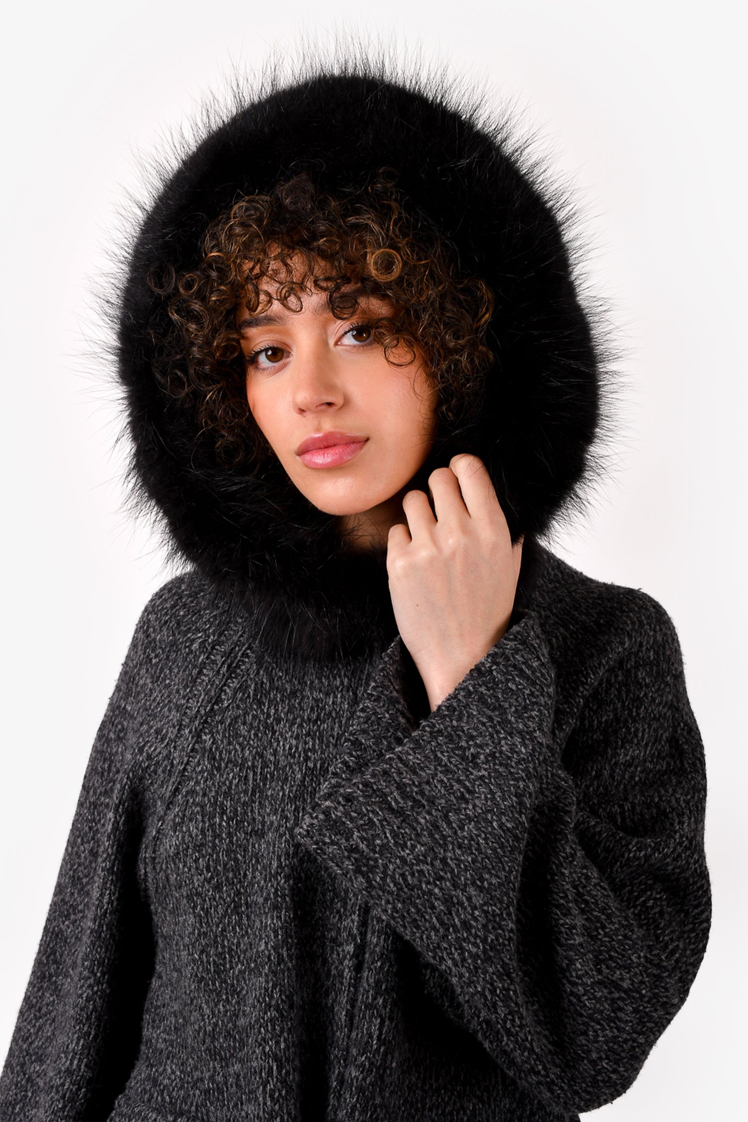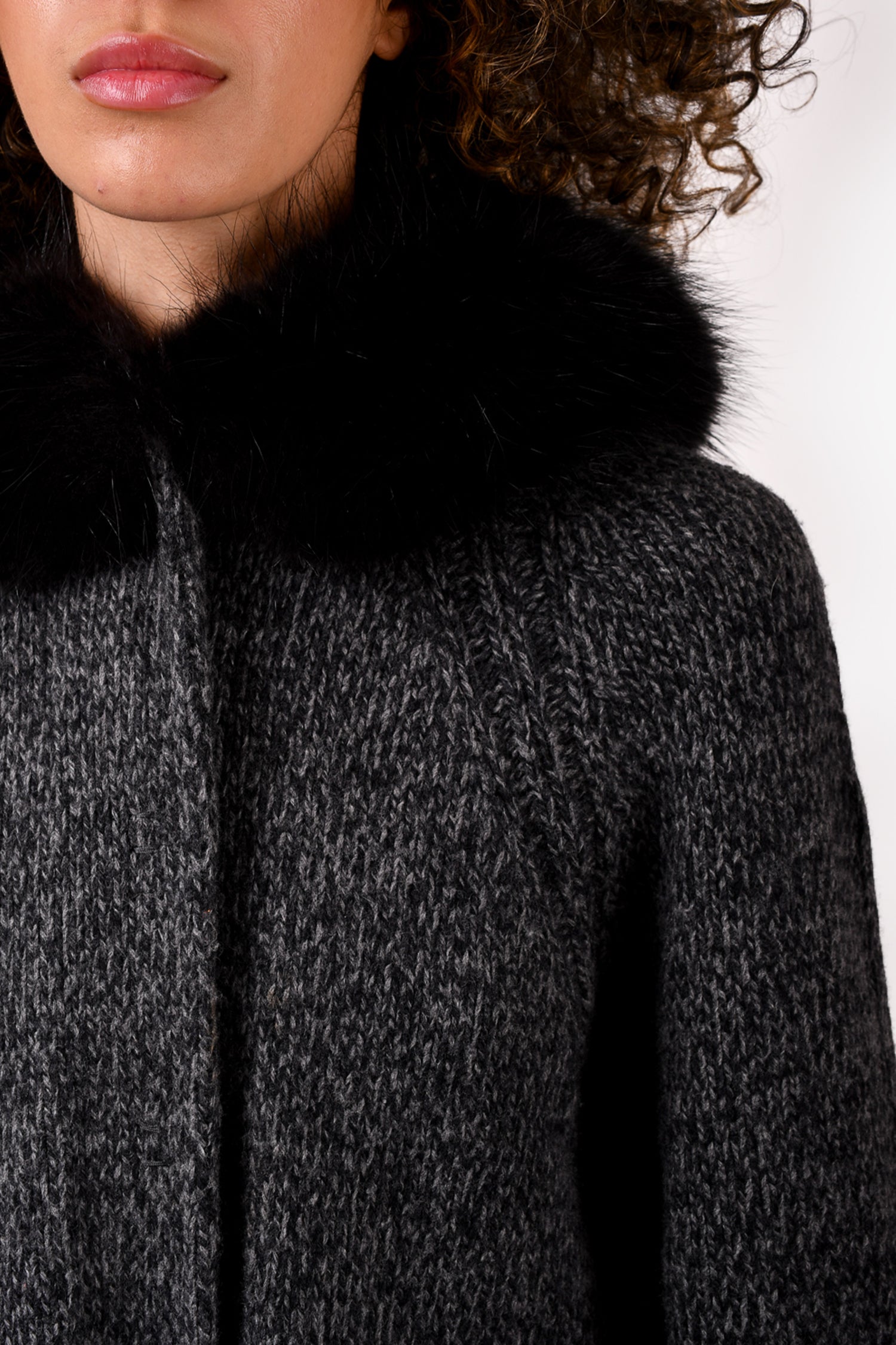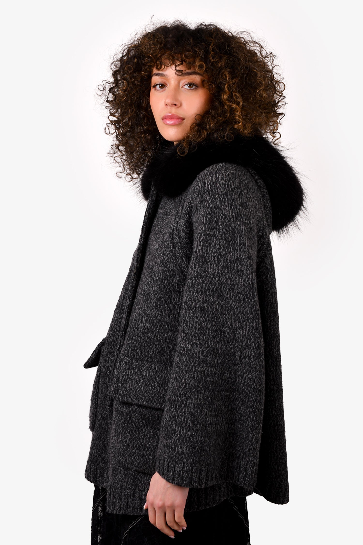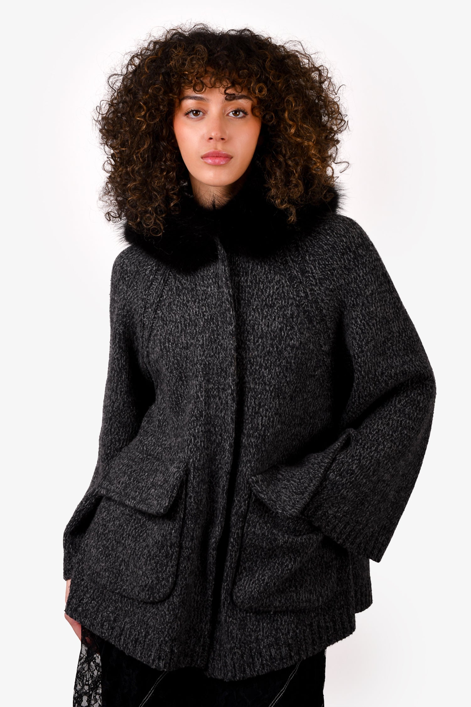 Prada Grey Wool Sweater with Fur Trim Size 36