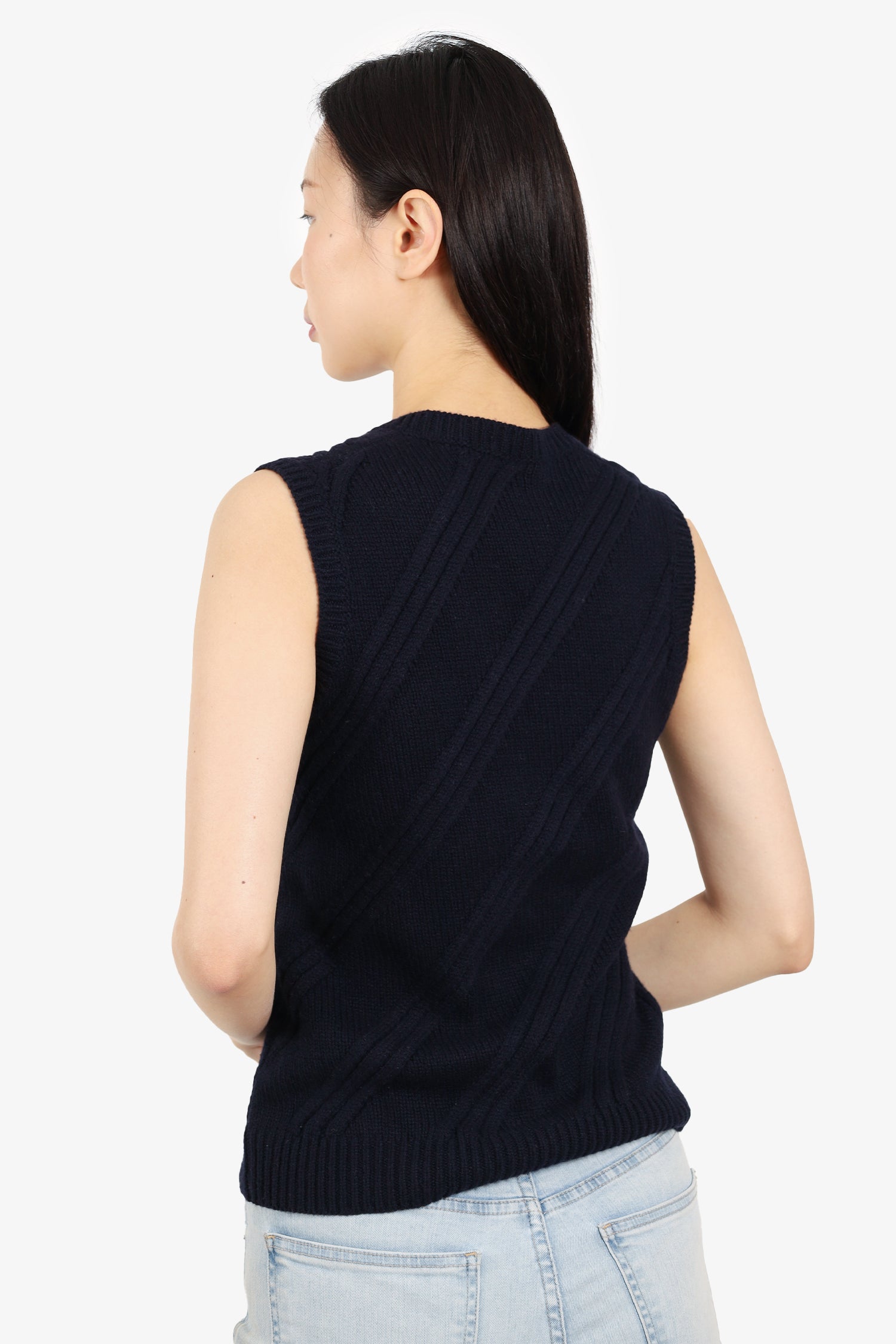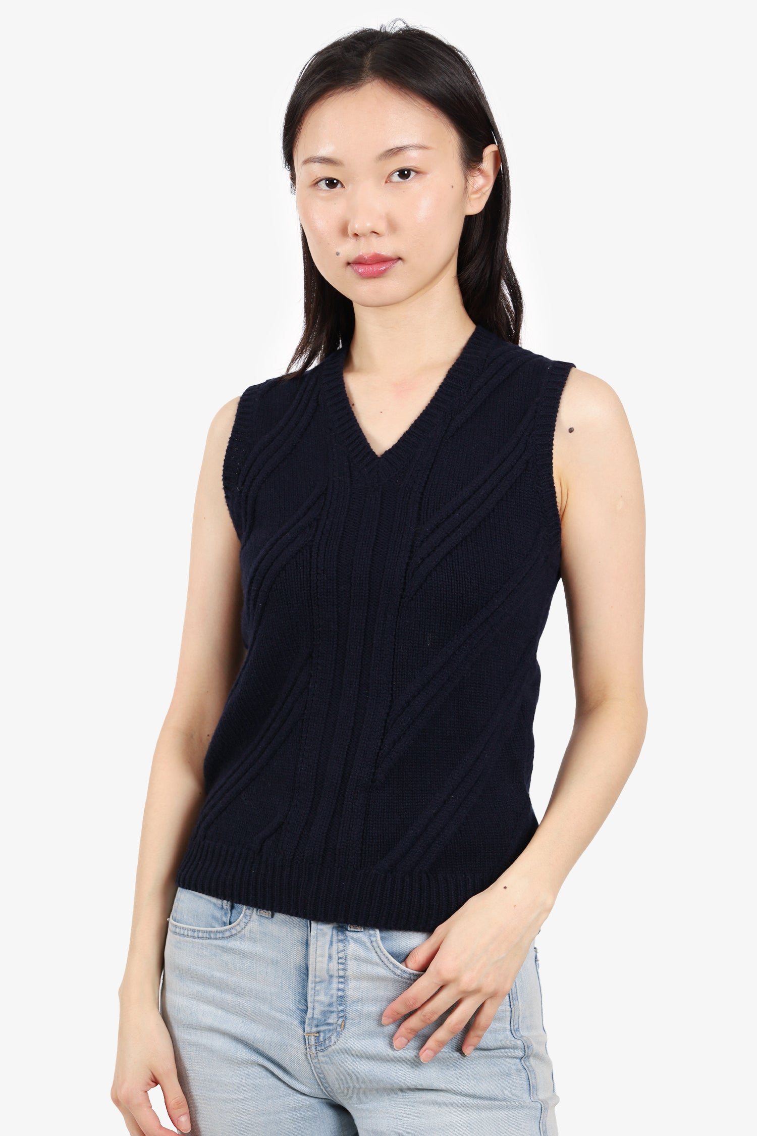 Refresh availabilityPrada Navy Blue Cashmere Vest. V-neckline. Pull-on. Tonal stitching.