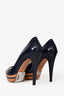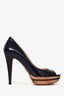 Prada Navy Patent Leather Peep Toe Heels Size 37