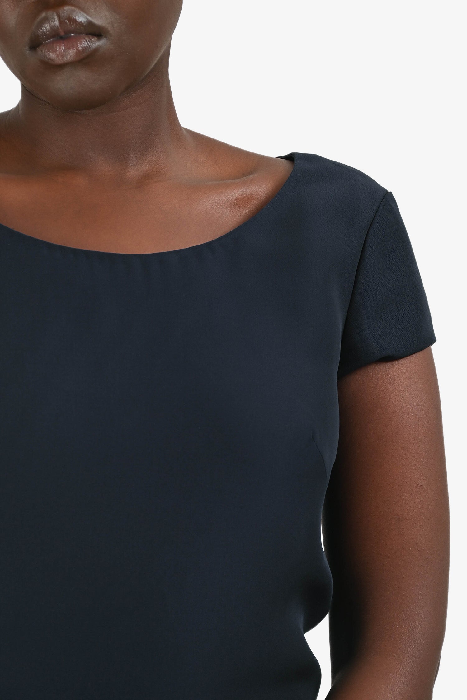Refresh availabilityPrada Navy S/S Midi Dress. Lined. Tonal hidden zipper in the back. Tonal stitching.