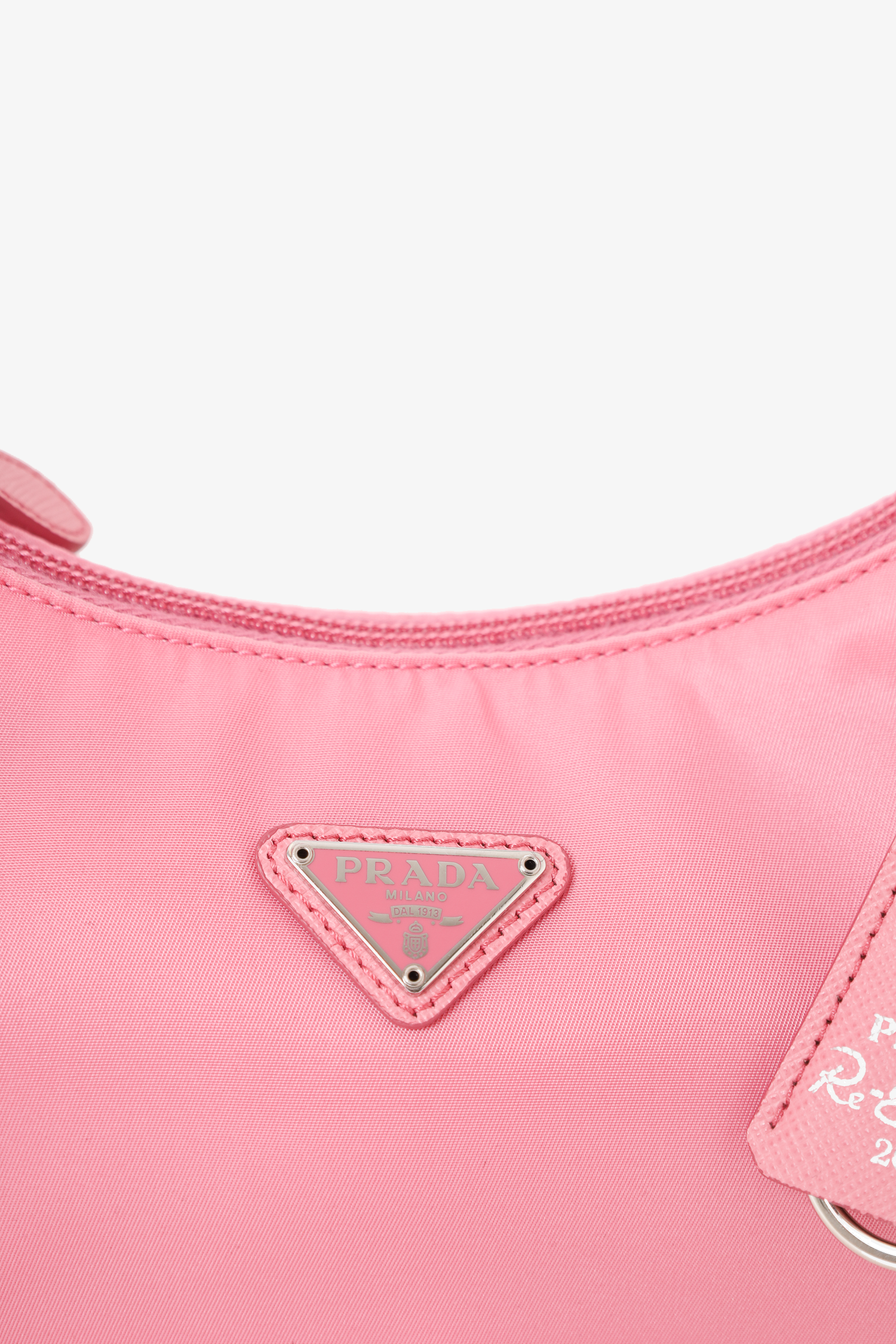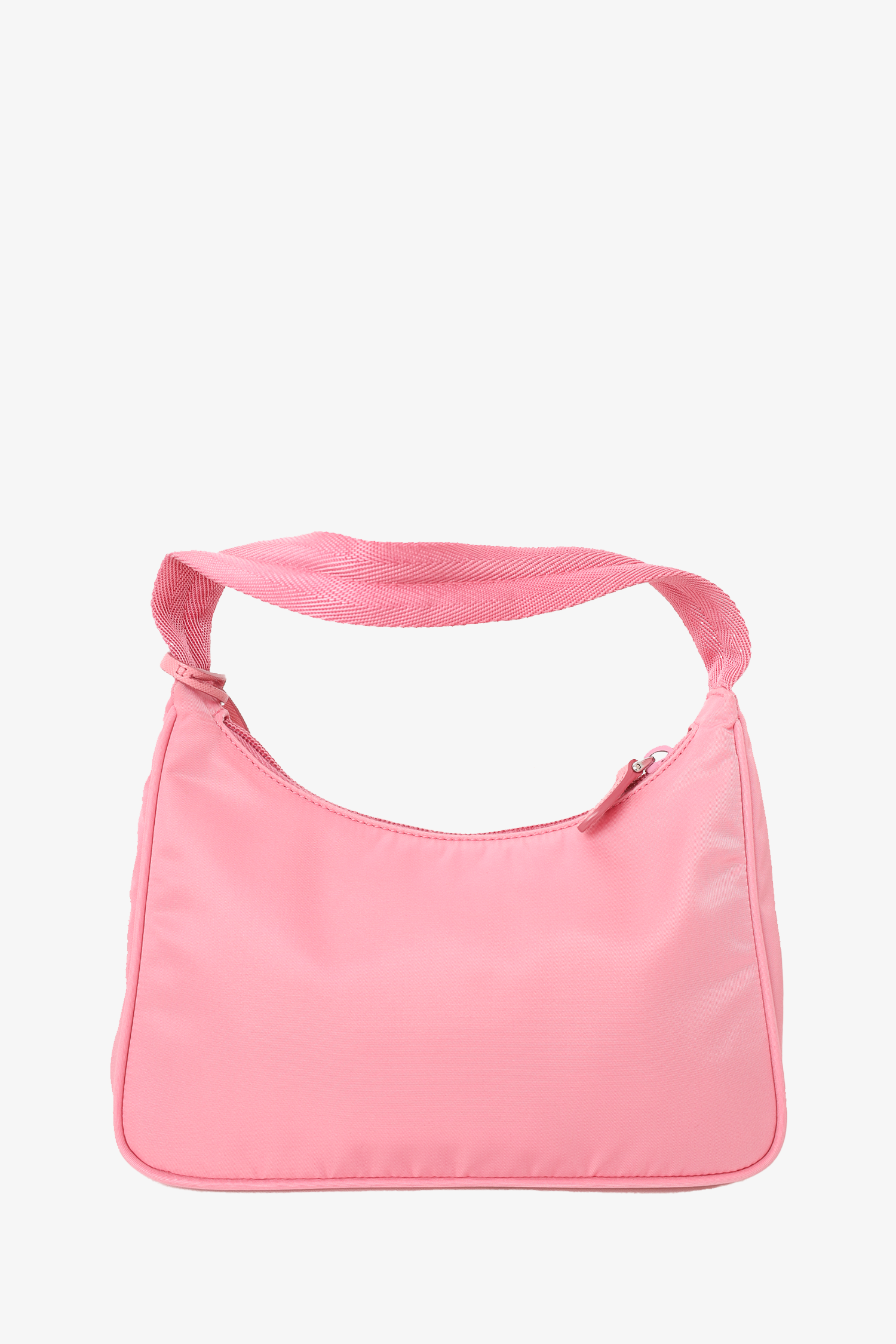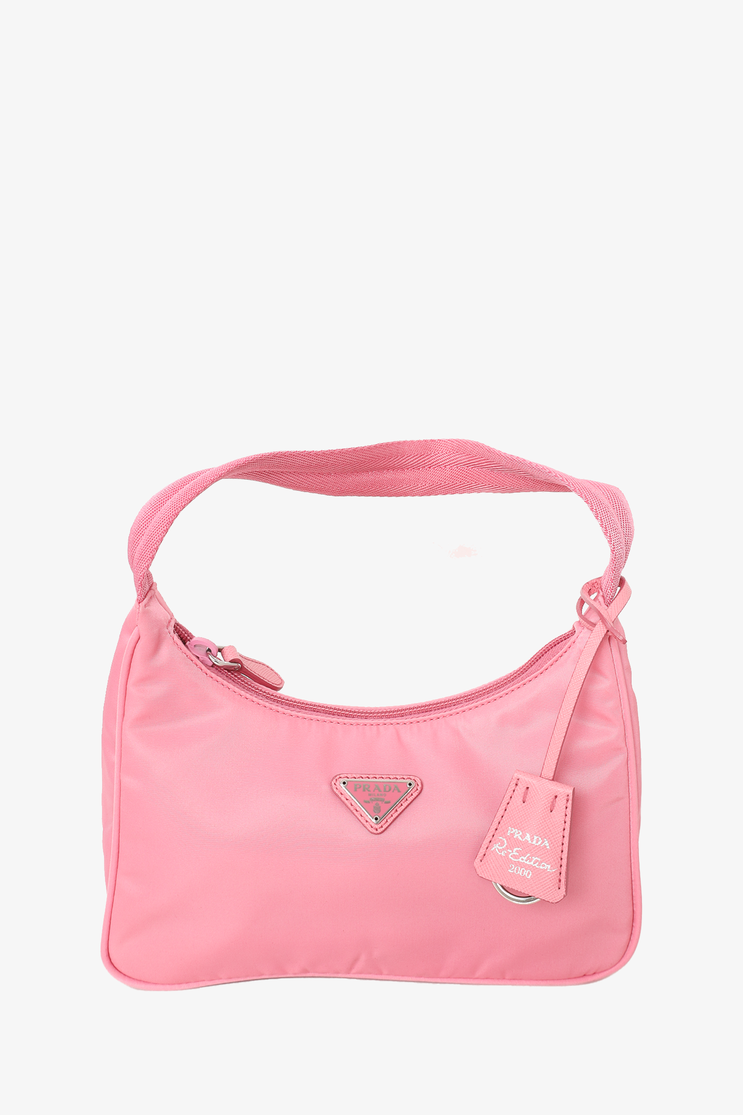 Refresh availabilityPrada Pink Re-Nylon Mini Re-Edition 2000 Hobo Bag. Top zip closure. Open compartment. Top handle. Tonal stitching.