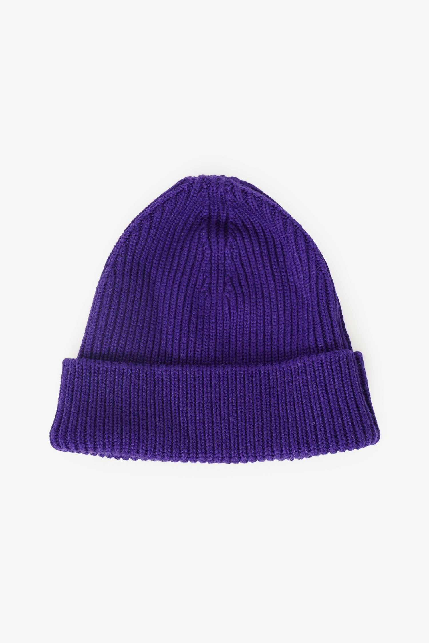 Refresh availabilityPrada Purple Wool Beanie Logo Patch. Ribbed. Tonal stitching.