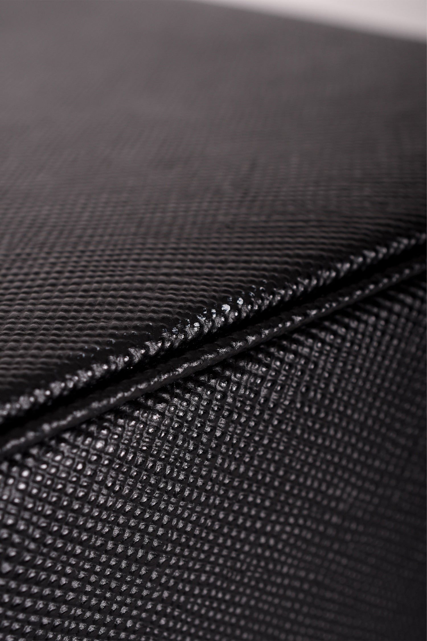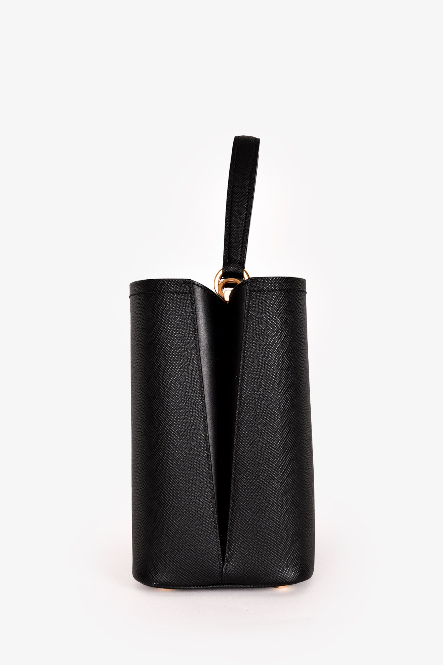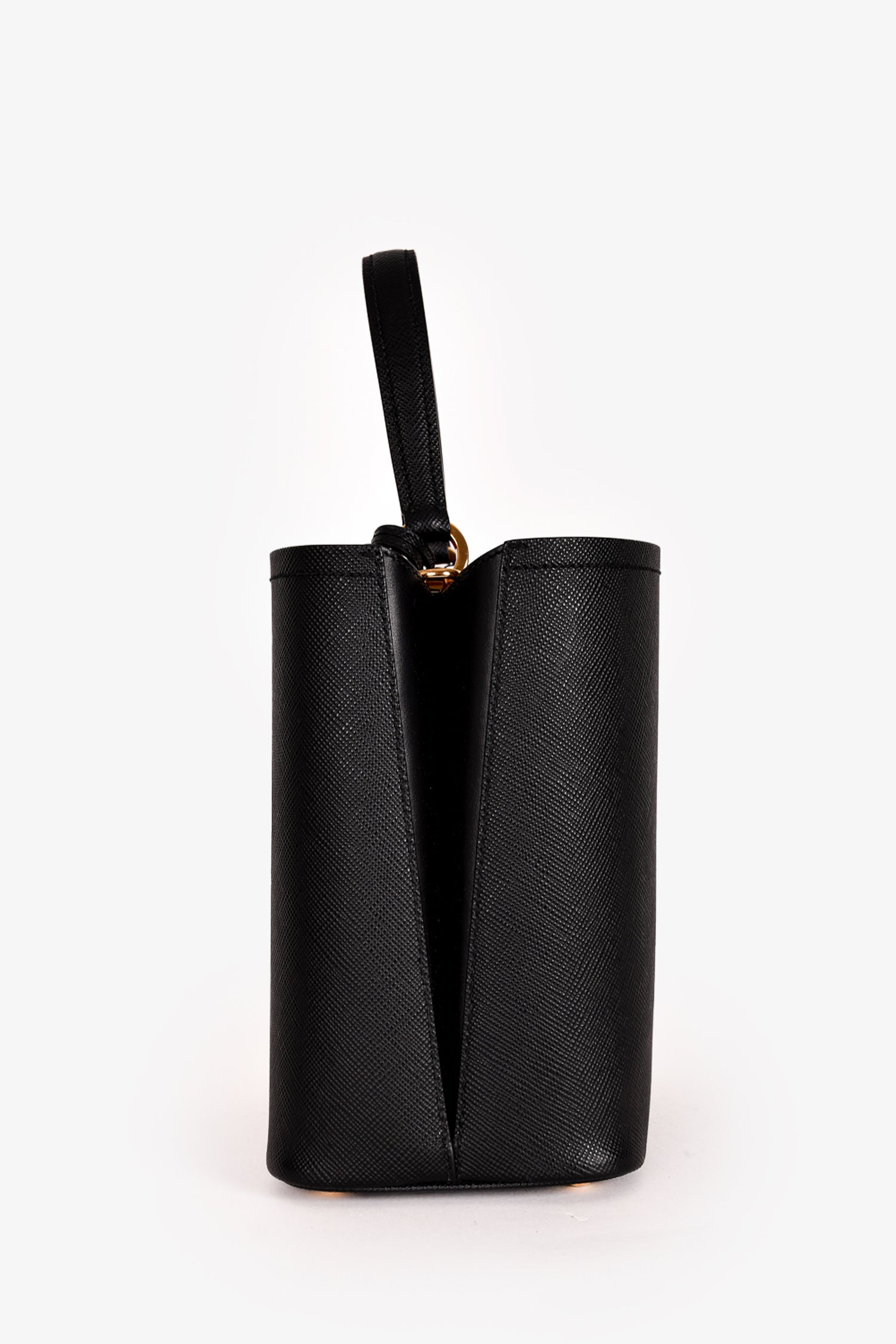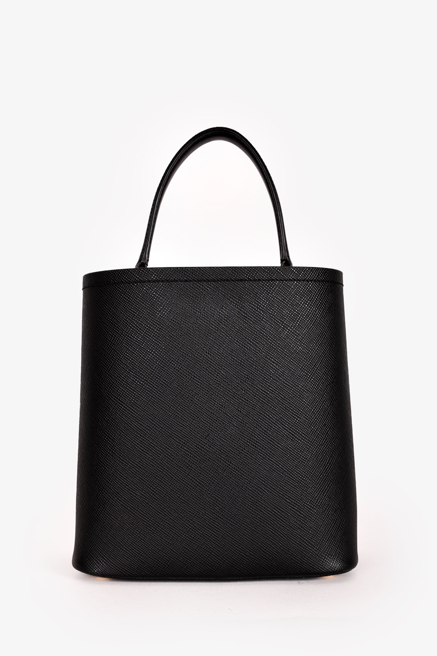 Refresh availabilityPrada Saffiano Panier Medium Bag with Strap. Top handle. Interior magnetic button closure. Red leather interior. 2 interior compartments; separated by a divider. Removable and adjustable strap. Detachable luggage tag. Gold-tone hardware. Tonal stitching.