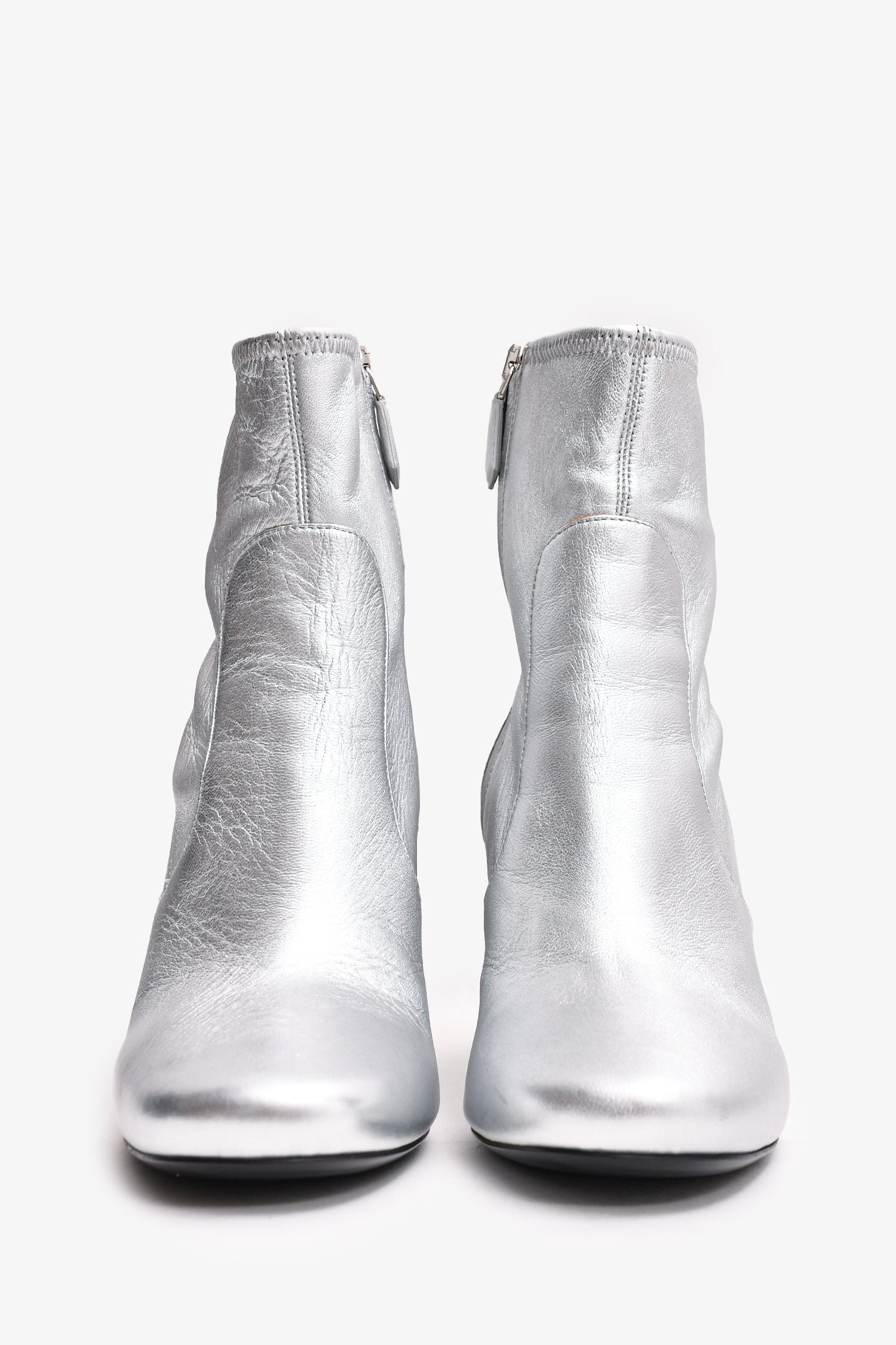 Prada Silver Metallic Square Toed Ankle Boots Size 38.5