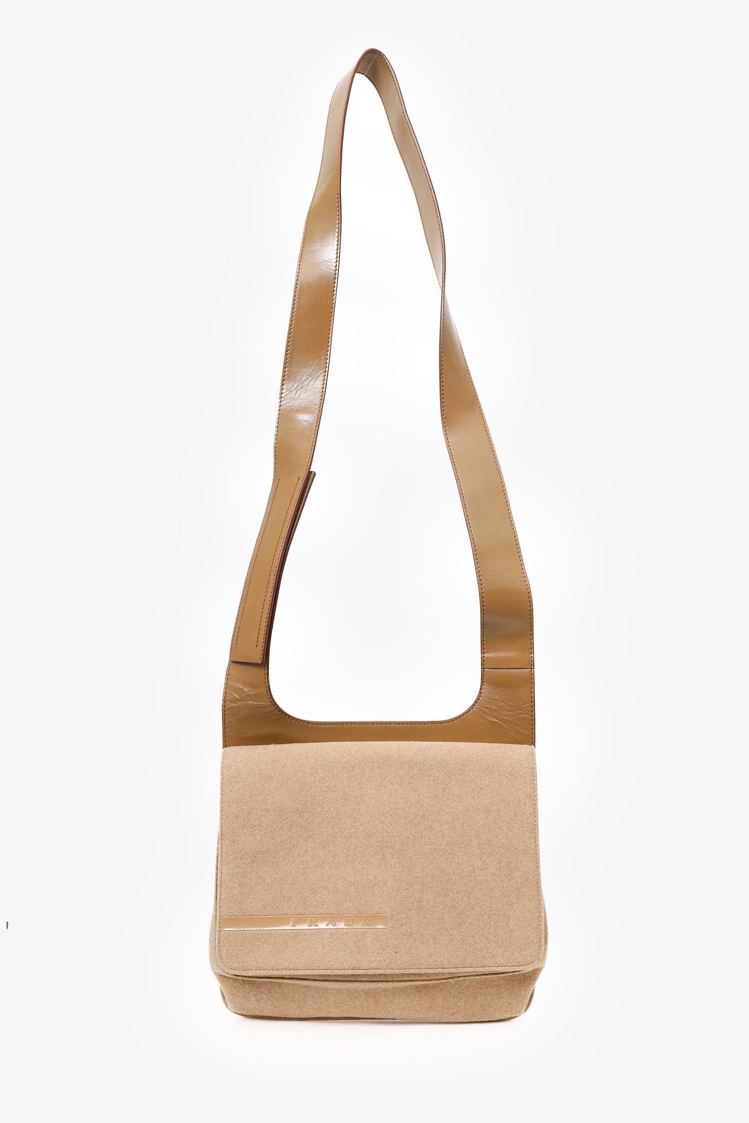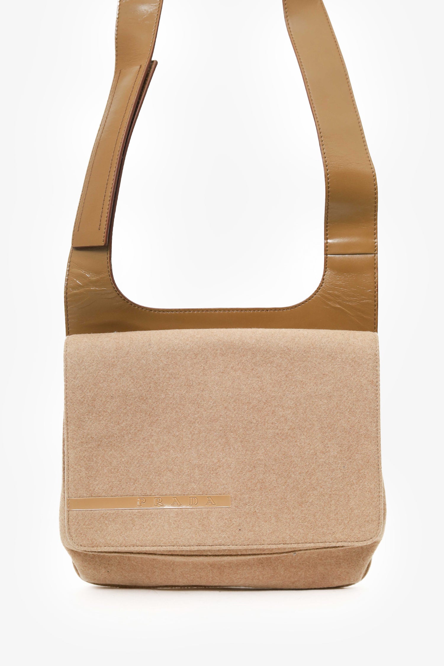Refresh availabilityPrada Sport Beige Wool Flap Shoulder Bag. Fold-over flap velcro closure. Interior wall slip pocket. Tonal stitching.