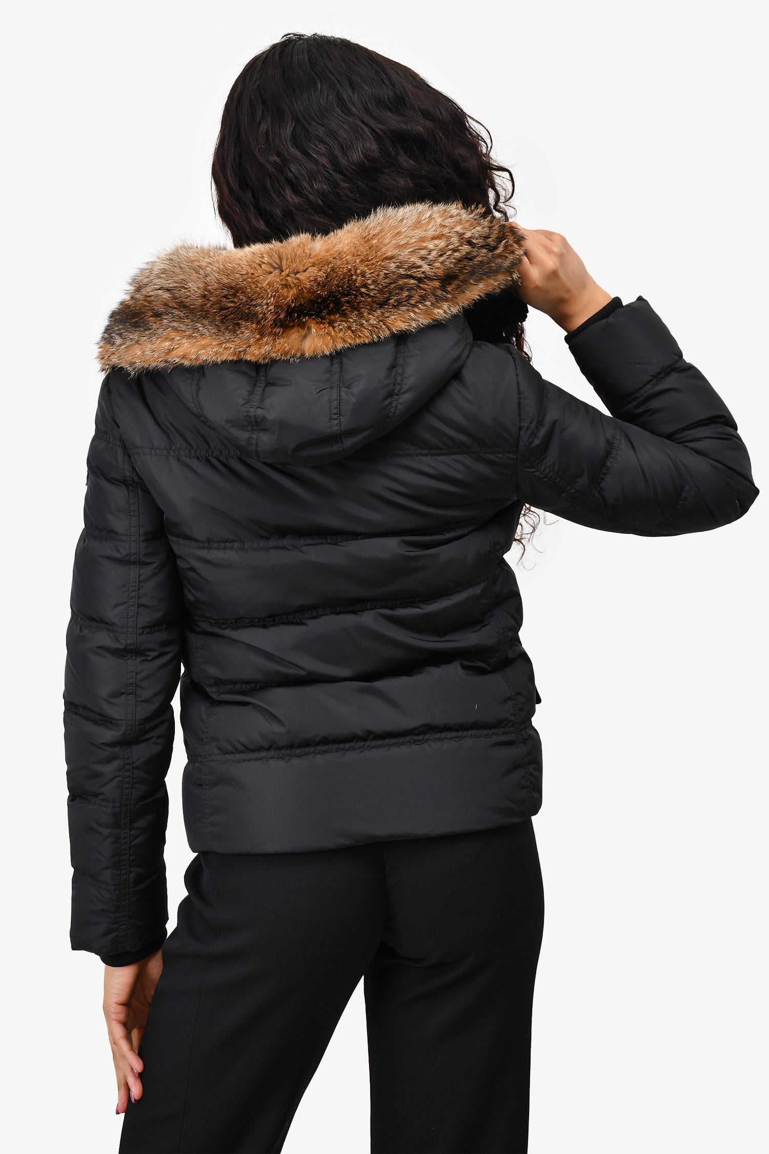 Prada Sport 2013 Black Fur Hooded Puffer Jacket Size 40