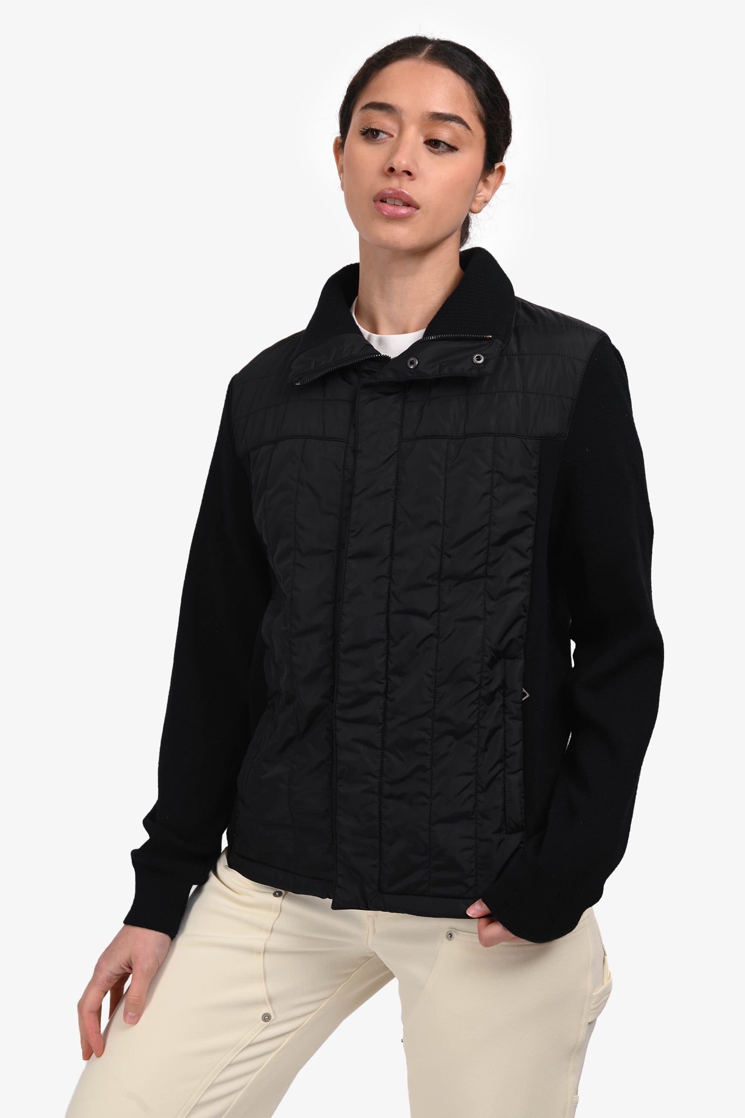 Prada Sport Black Nylon/Knit Lightweight Puffer Jacket Size 48