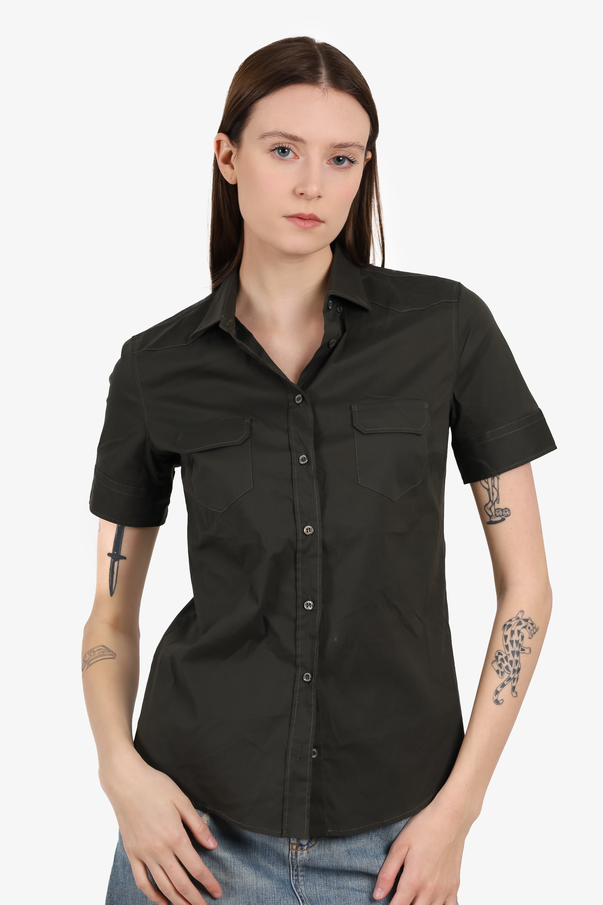 Prada Sport Green Short-sleeve Utility Button-Down Shirt Size 42