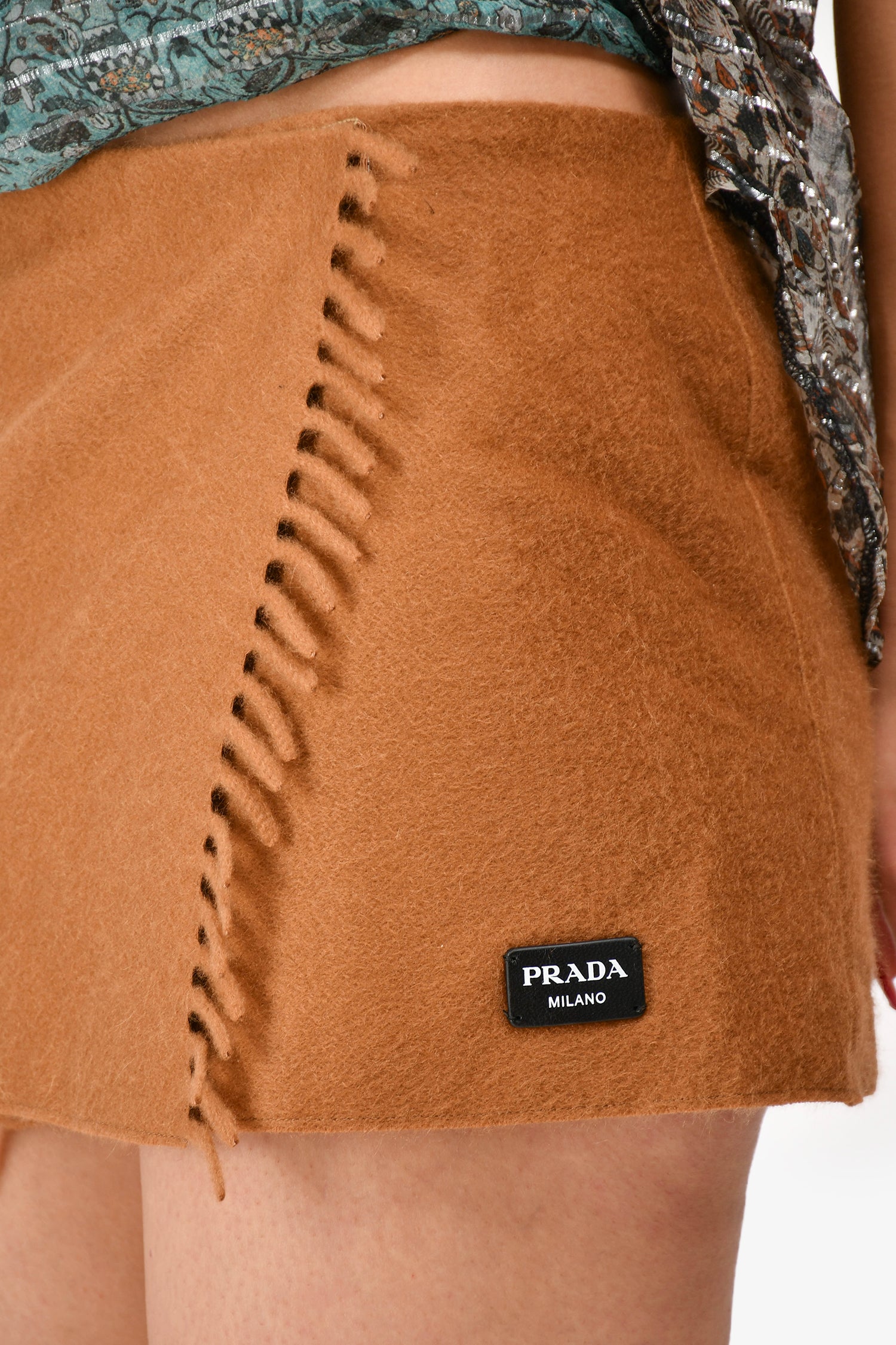 Prada Tan Cashmere Wrap Mini Skirt Size 40