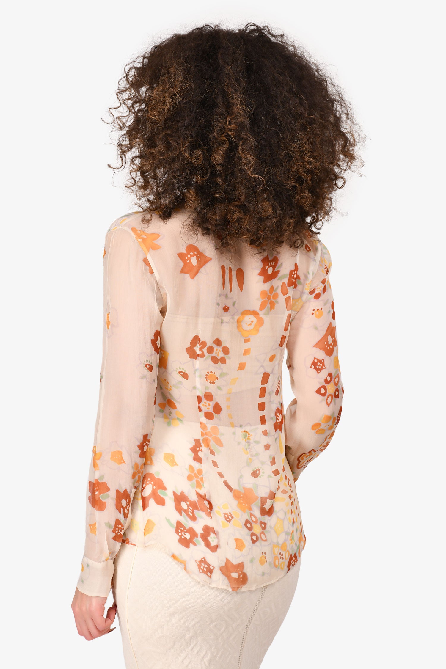 Prada Vintage Cream/Burnt Orange Floral Sheer Silk Button Down Size 42