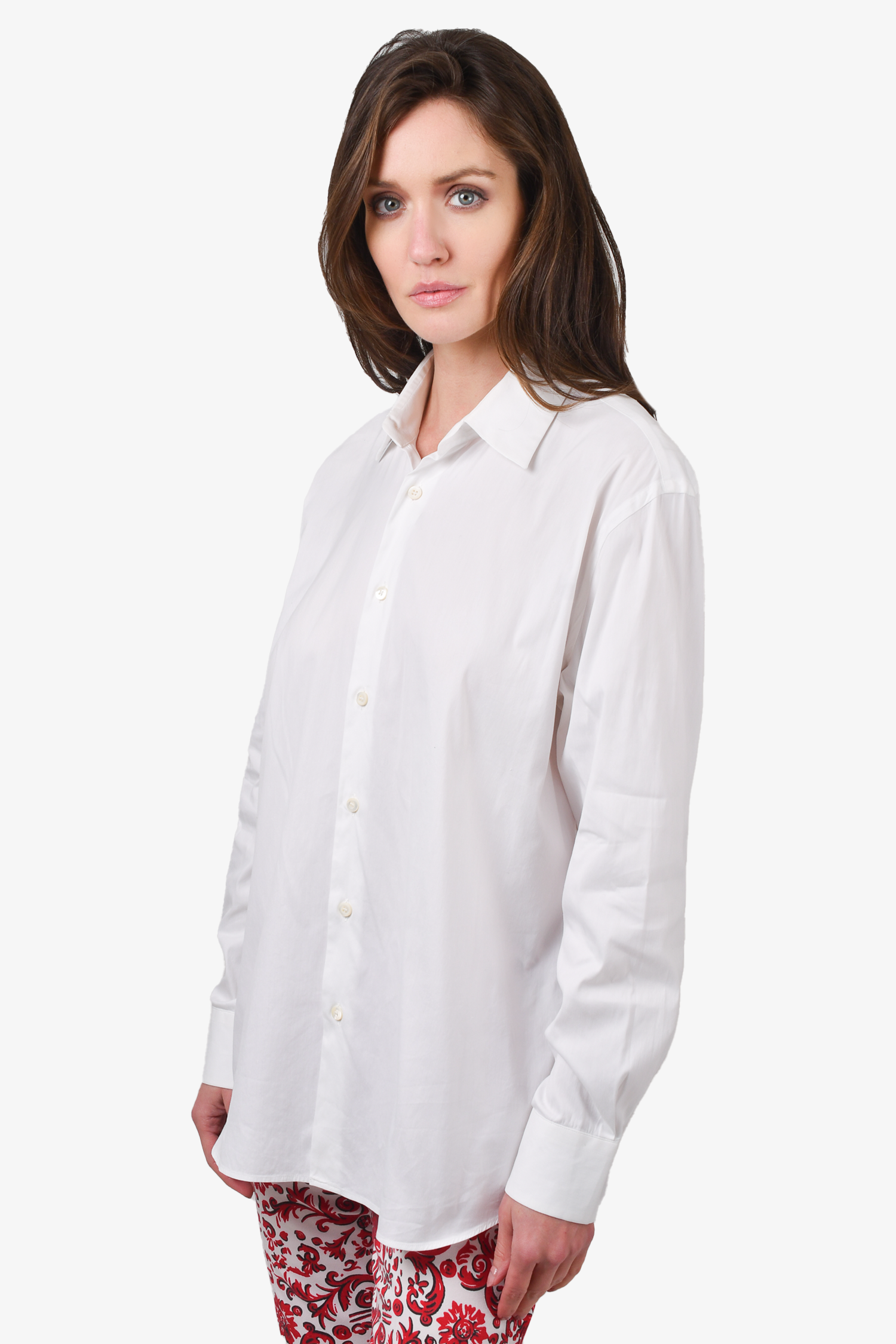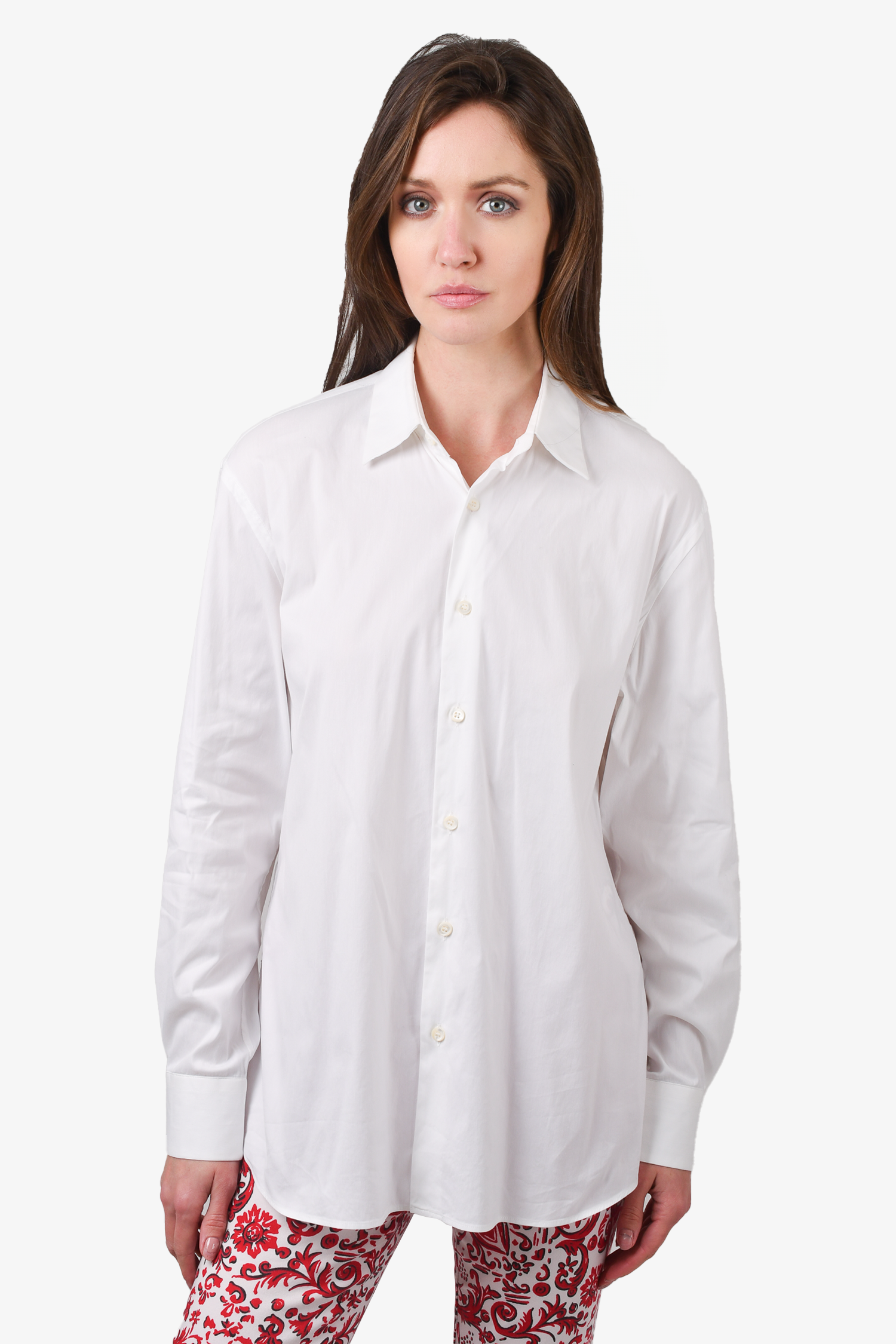 Refresh availabilityPrada White Cotton Poplin Dress Shirt. Front button-up. Unlined. Tonal stitching.