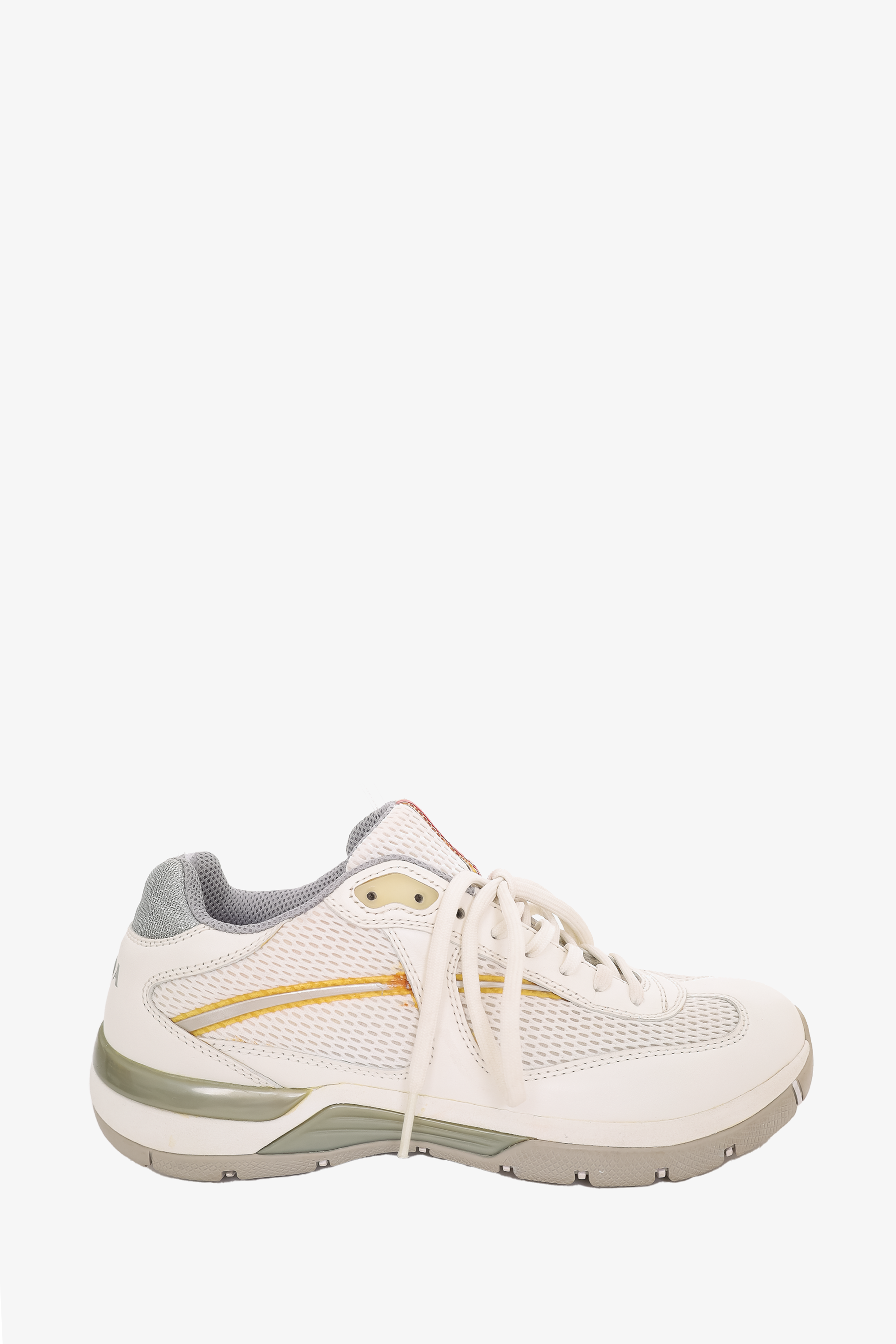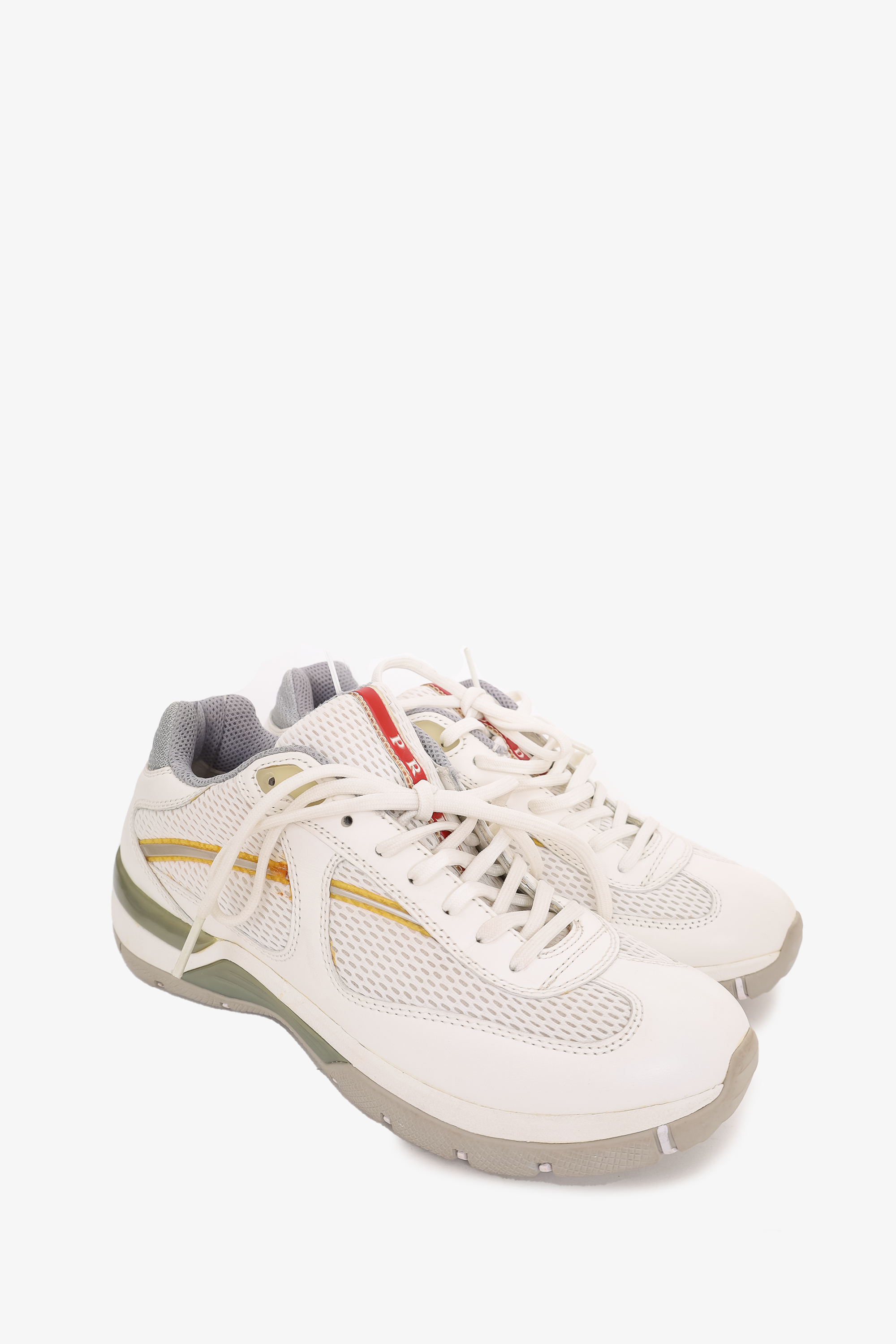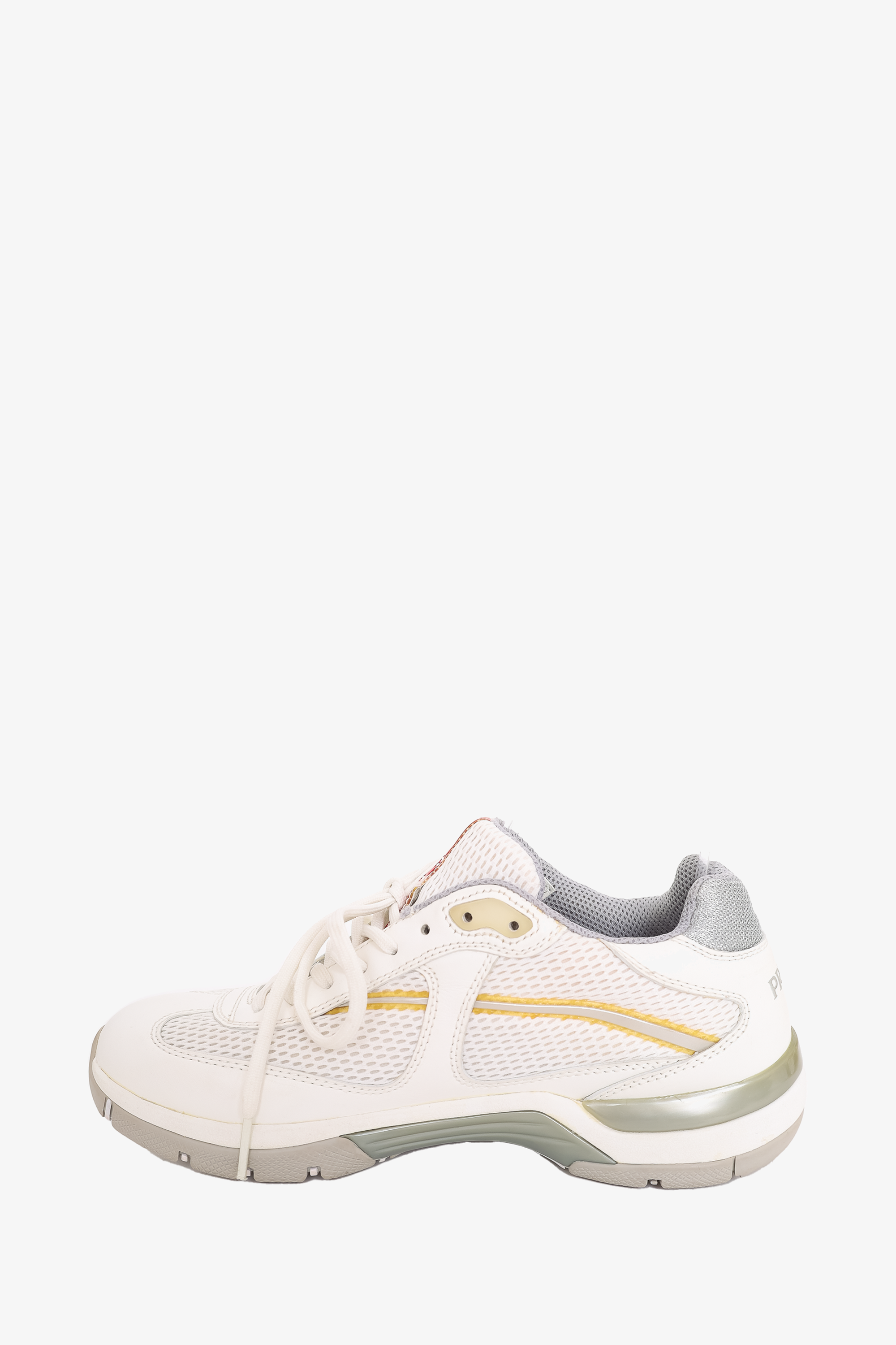 Refresh availabilityPrada White Leather/Mesh Sneakers. Pull-on. Tie-up. Round toe. Tonal stitching.